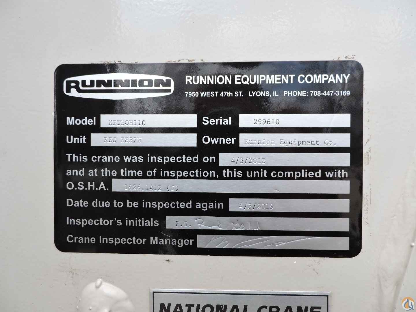 National Crane NBT30H equipped as follows: