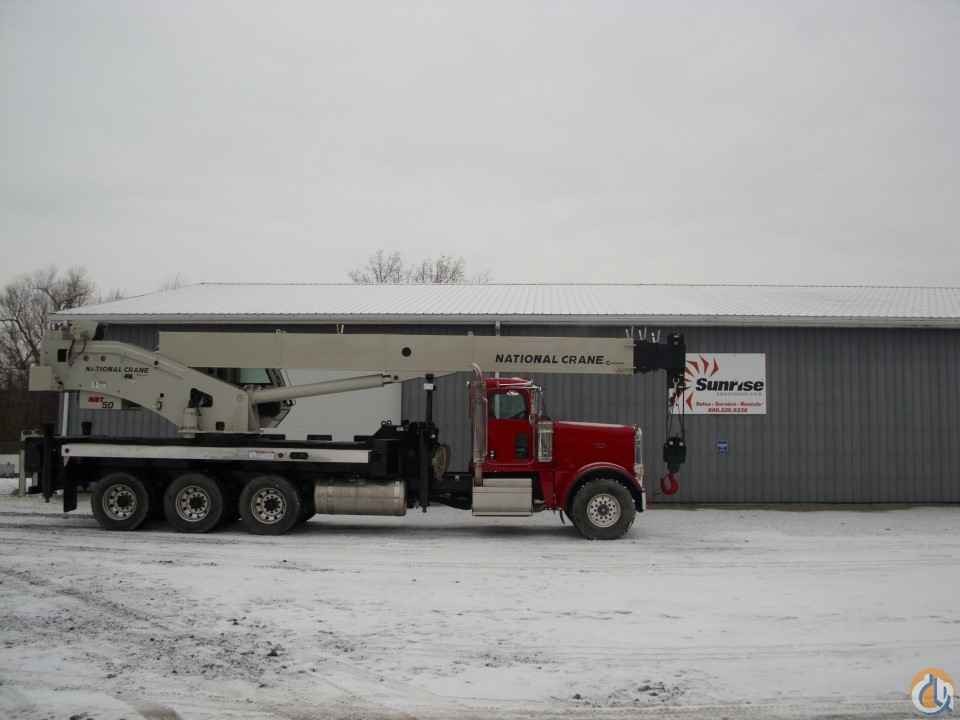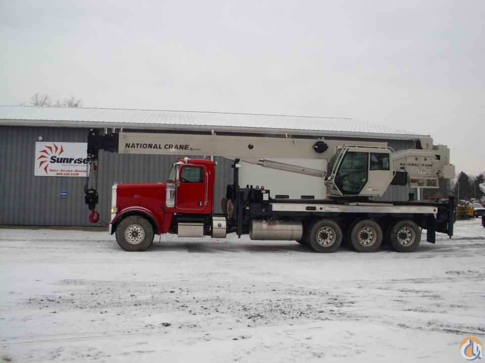 A 50 Ton National crane mounted on a 2013 Peterbilt. It is currently OHSA certified and job ready. This boom truck has under 10,000 miles and under 1,334 engine hours! The winch has a remote control. The crane has only 904 hours! This great looking and great working unit will not last long! Auxiliary winch and jib extension ranging from 26'-54' available upon request at an additional price!
