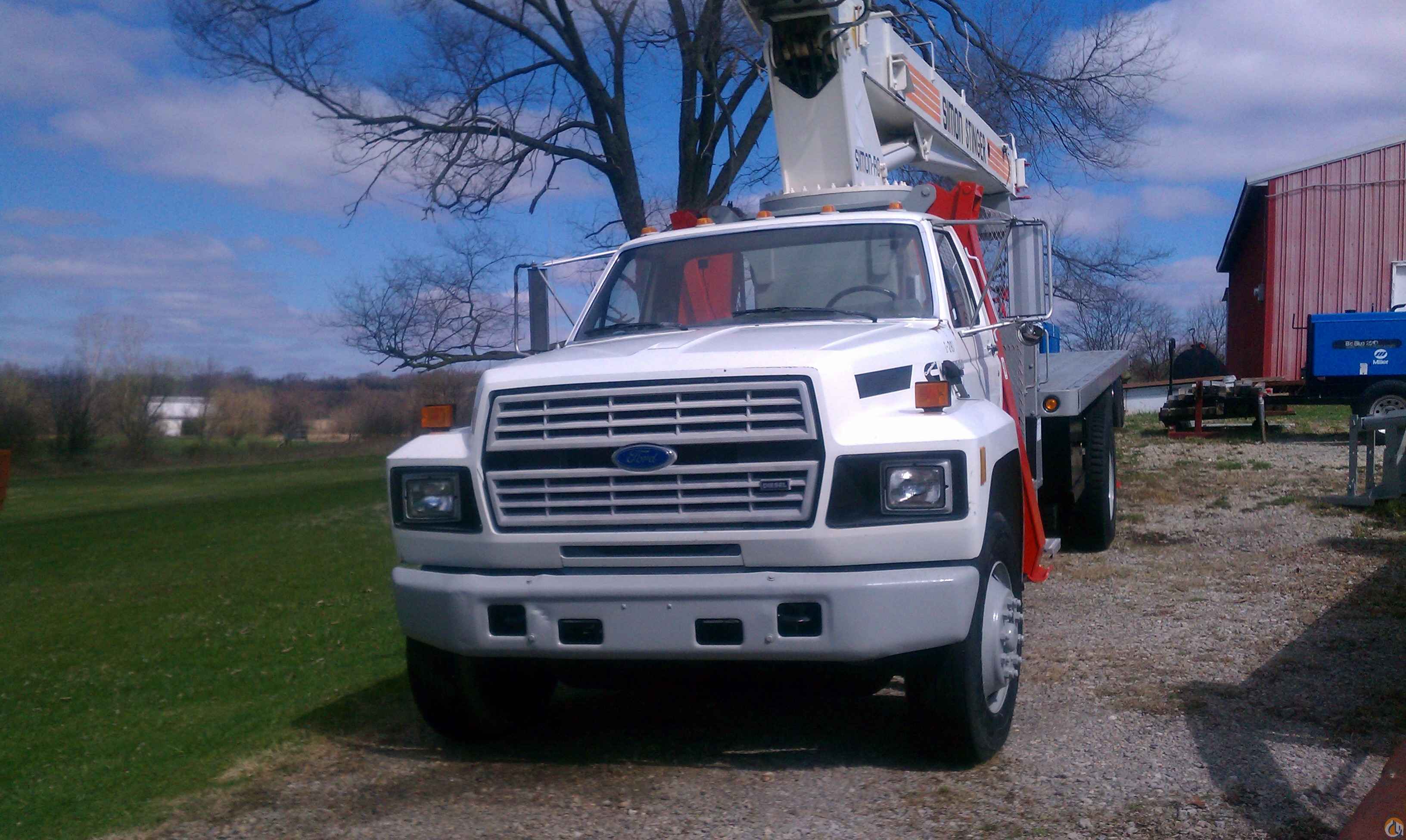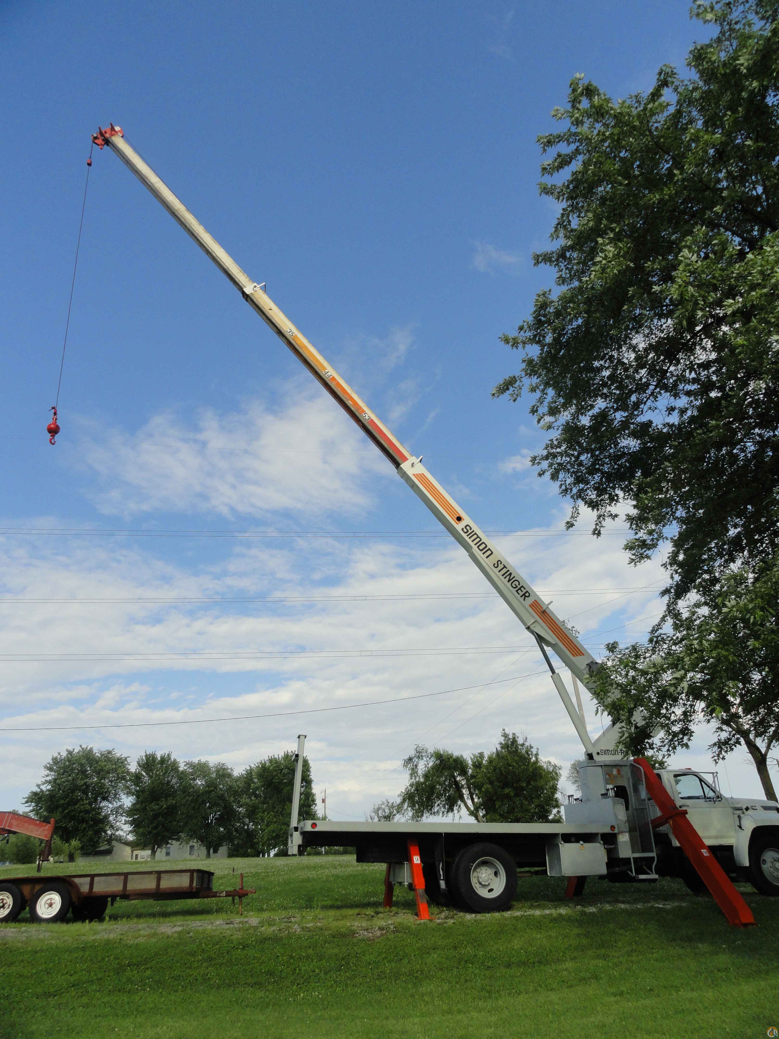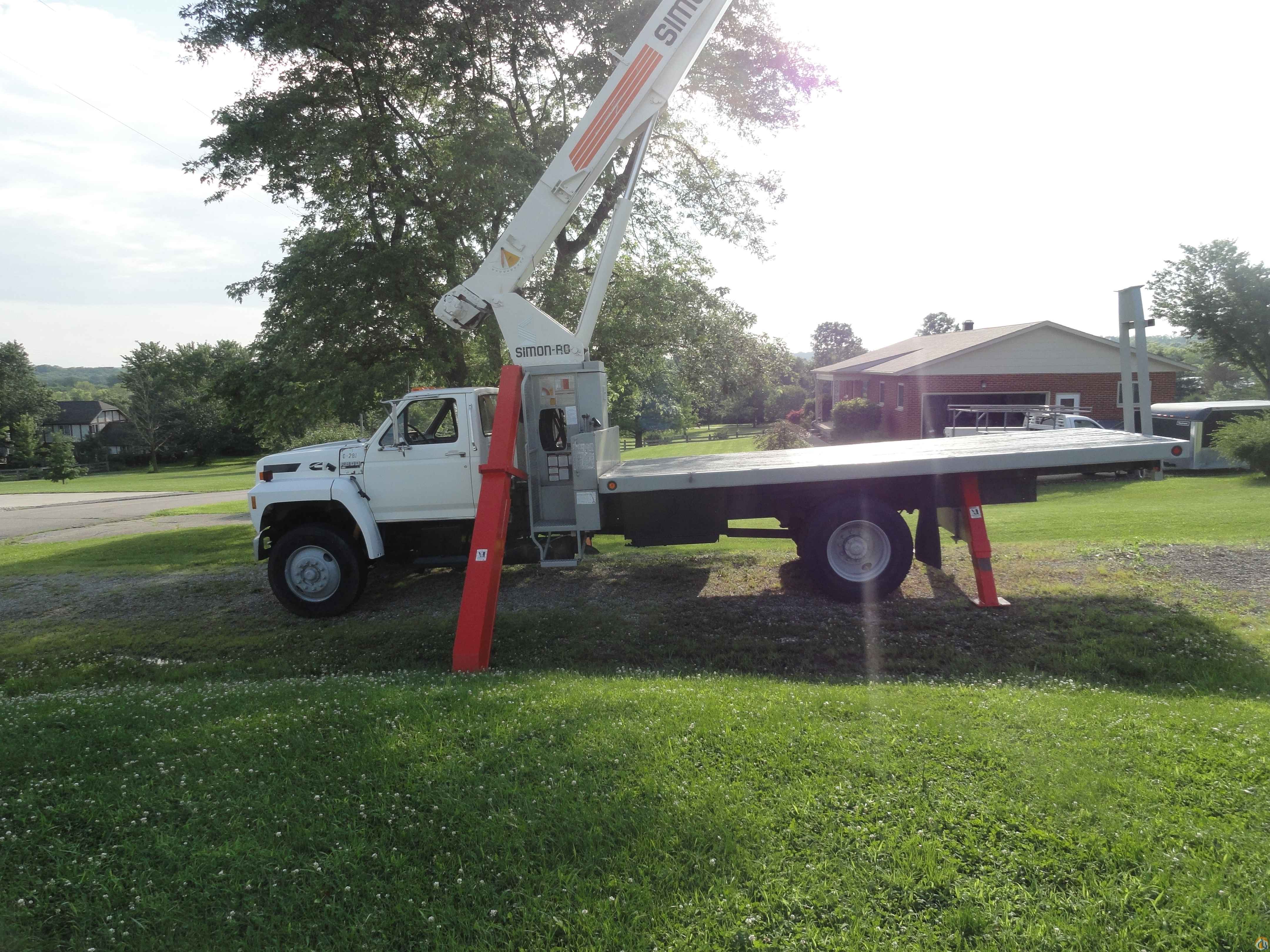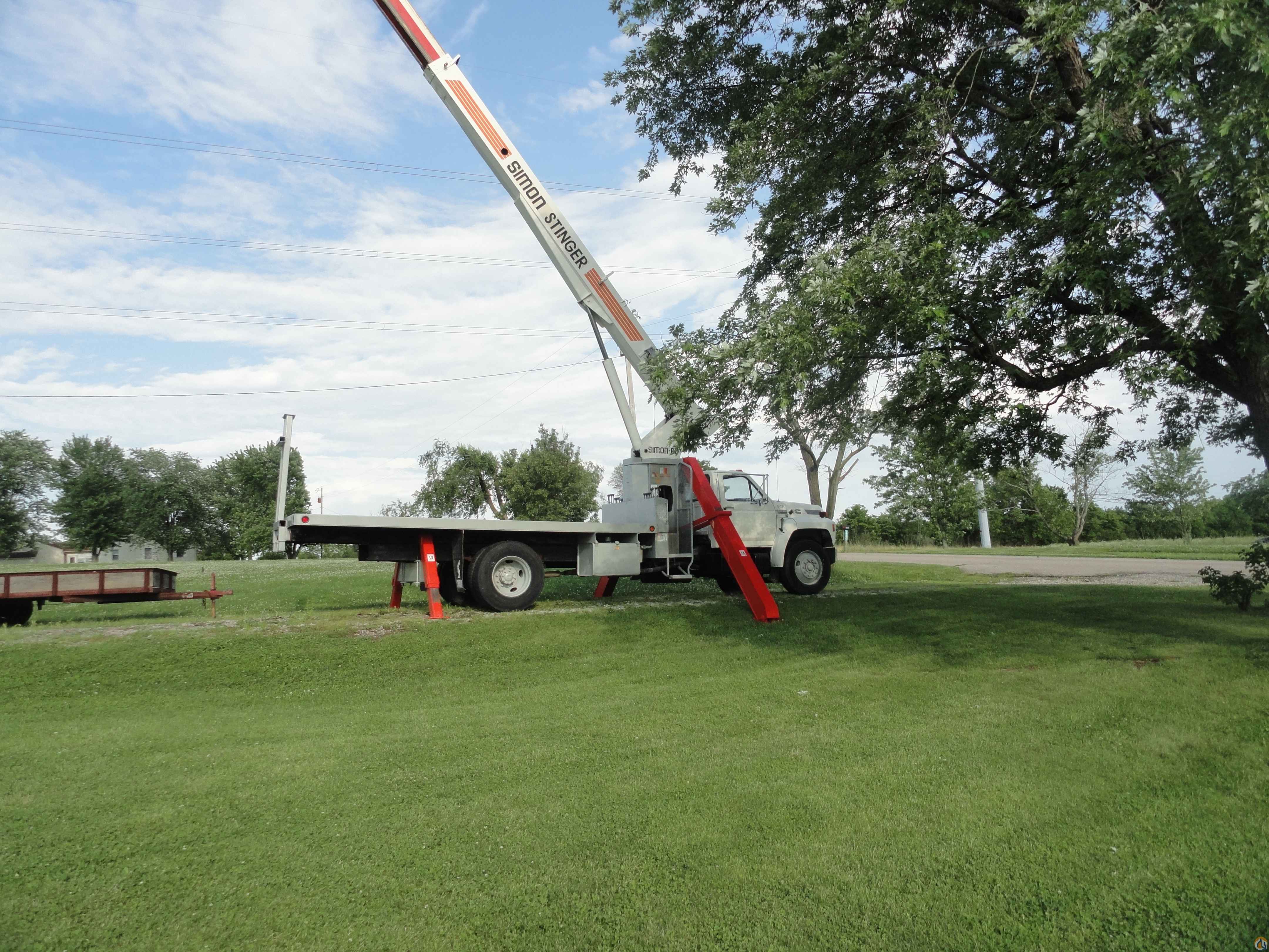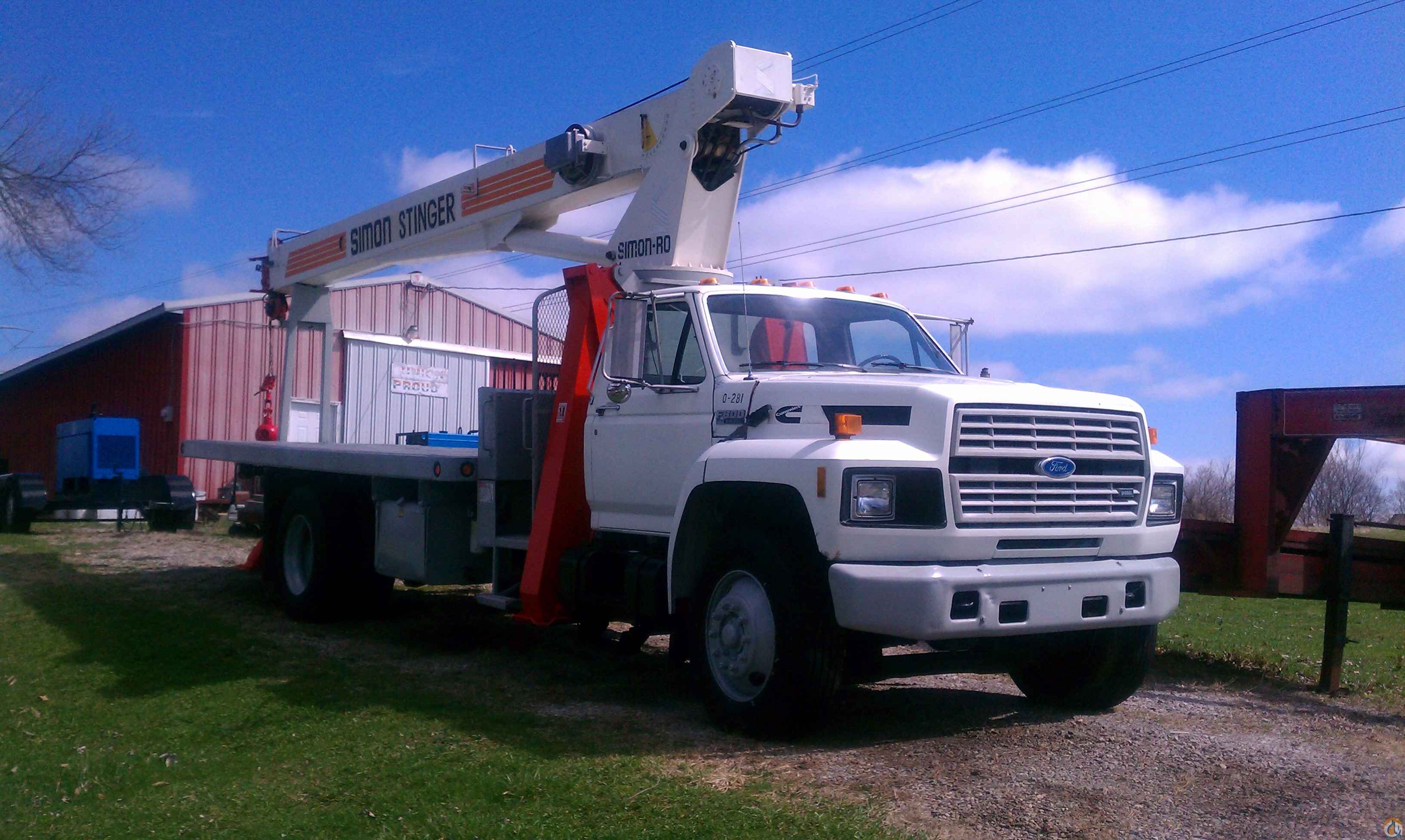 1994 F-800 Ford Boom Truck. 15 ton Simon Stinger. Model # TC-2863. Cummins 6 cylinder diesel - 6 speed trans. - single axle - 63'0 boom height - 18'0 flatbed. 22.5 wheels/tires - underbody toolbox - 178,000 miles. 2nd owner, bought in 1996. Very good condition. $27,400
