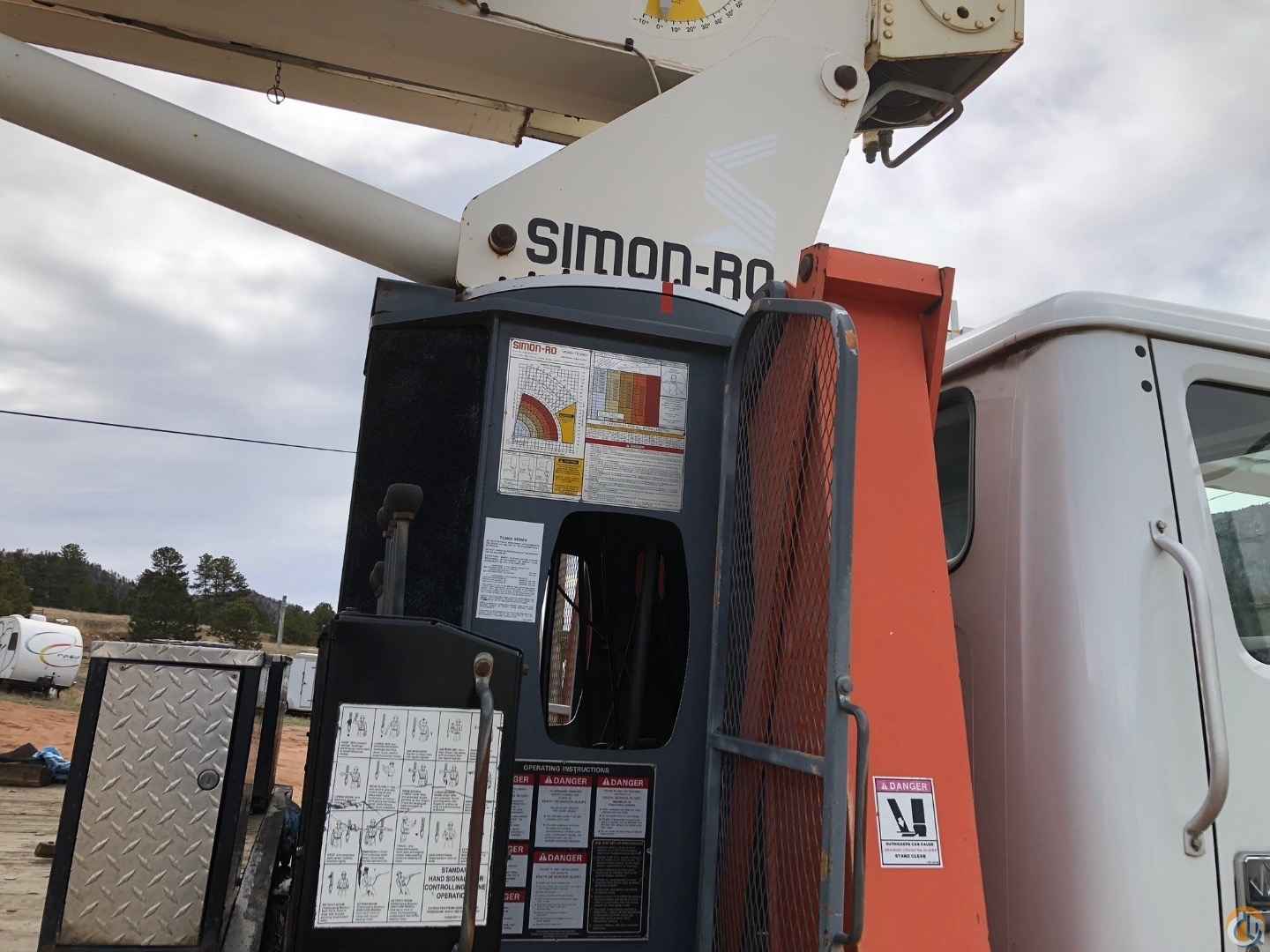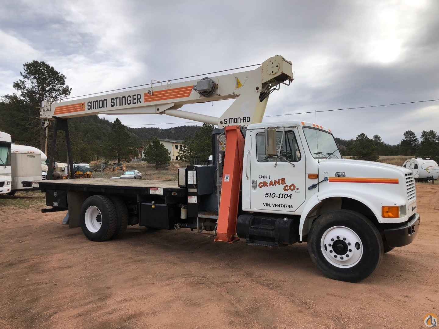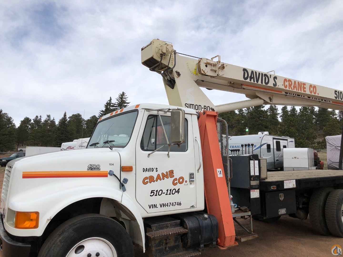1997 Simon RO TC 2863. 14 ton 63 ft boom with jib and stinger, 24/40 ft. Mounted on 1997 International 4700. DT 466E engine, International 6 Plus six speed with low transmission. Very good condition and very clean. 7800 hrs. 65715 miles