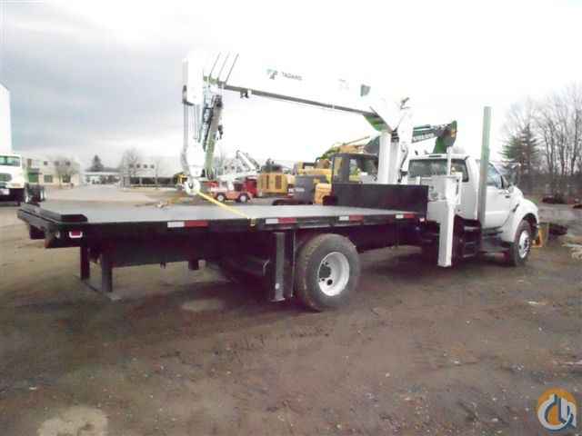 Radio Remote, 52' 5-Section Boom, 360 Degree continuous rotation, on 2011 Ford F750, 22" Wheels, Fuller 6-speed transmission, ISB Cummins 240HP Engine, 33,000 GVW, 18' Wood Deck, Air Brakes