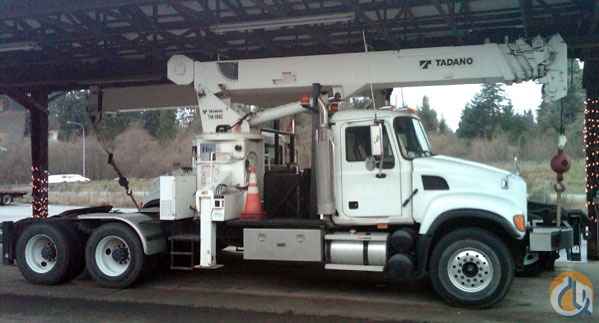 Location...Wisconsin. 2006 Mack Granite Series Chassis with 2005 Tadano TM-1882 Available Immediately. 2005 Tadano 1882TM 6 section, fully hydraulic telescoping boom, 82' main boom length, 92' tip height, Virtually No Front Overhang, Continuous Rotation, Dual side, operator control platforms, RADIO, REMOTES — in addition to manual crane, controls, Single front Outrigger, Four out and down outriggers, Crane operates at full span, mid span and next to truck outrigger positions LMI (computer) overload protection system, Anti-two block system, Crane has triple pump system, Faster than competing cranes, Crane has counter weight added to truck frame to improve stability, Tool Box Mounted on 2006 Mack Granite Series Chassis with MACK CV7-DS ~350 hp diesel engine, 8 speed transmission, Dual Locking Differentials, Approx. 247" Wheelbase for maneuverability,20K# front axle GVWR, 44K# rear axle GVWR, Less than 65,000 miles , Just over 5,000 engine hours. Available Immediately. Please call Megan at 877-352-7263 for more info and photos and see our website at www.cranesandbuckets.com