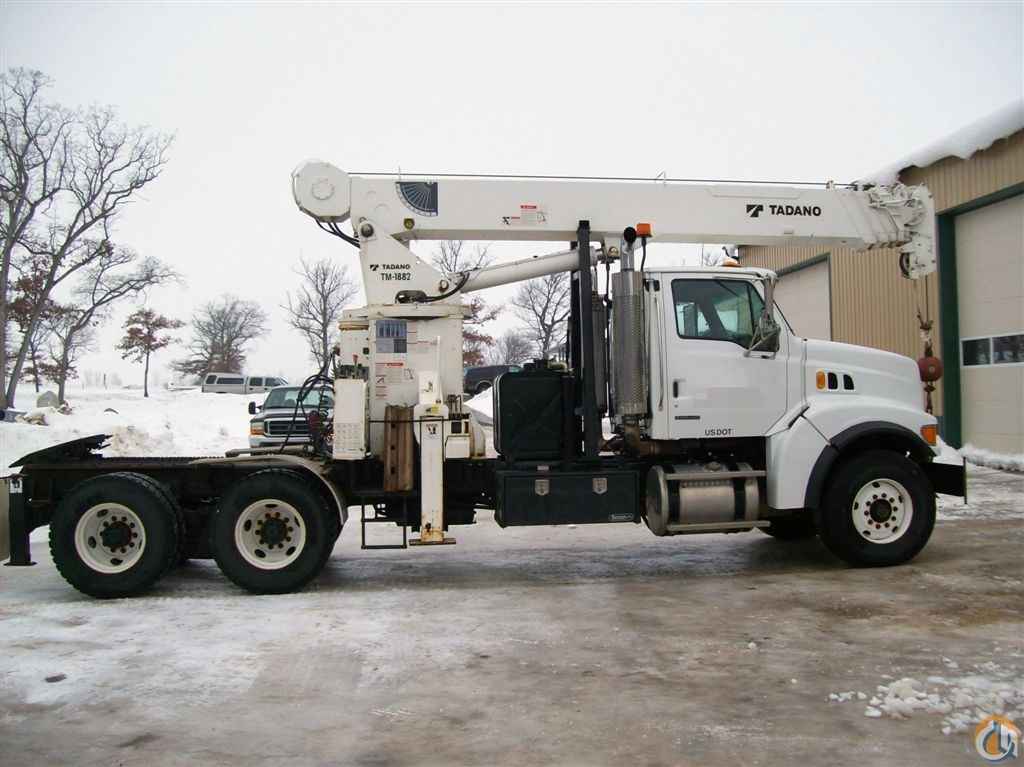 <p style="text-align: justify;"><span style="font-size: medium;"><strong>BARELY USED!</strong> <strong>2005 Tadano 1882TM Tractor Mounted Crane with 82’ – 92’ of main boom (without jib) mounted on 2006 Sterling with 5th wheel for pulling a trailer.</strong></span></p> <p style="text-align: justify;"> </p> <p class="MsoNormal" style="margin: 0in 0in 0pt; text-align: justify;"><span style="font-size: medium;">2005 Tadano 1882TM</span></p> <p class="MsoNormal" style="margin: 0in 0in 0pt; text-align: justify;"><span style="font-size: medium;">18.4’ – 82.3’ six section, fully hydraulic telescoping boom</span></p> <p class="MsoNormal" style="margin: 0in 0in 0pt; text-align: justify;"><span style="font-size: medium;">82’ main boom length, 92’ tip height</span></p> <p class="MsoNormal" style="margin: 0in 0in 0pt; text-align: justify;"><span style="font-size: medium;">Virtually No Front Overhang</span></p> <p class="MsoNormal" style="margin: 0in 0in 0pt; text-align: justify;"><span style="font-size: medium;">Dual side operator control platforms</span></p> <p class="MsoNormal" style="margin: 0in 0in 0pt; text-align: justify;"><span style="font-size: medium;">Single front Outrigger</span></p> <p class="MsoNormal" style="margin: 0in 0in 0pt; text-align: justify;"><span style="font-size: medium;">Four out and down outriggers</span></p> <p class="MsoNormal" style="margin: 0in 0in 0pt; text-align: justify;"><span style="font-size: medium;">Crane operates at full span, mid span and next to truck outrigger positions</span></p> <p class="MsoNormal" style="margin: 0in 0in 0pt; text-align: justify;"><span style="font-size: medium;">LMI (Load Moment Alert) overload protection system</span></p> <p class="MsoNormal" style="margin: 0in 0in 0pt; text-align: justify;"><span style="font-size: medium;">Anti-two block system with lockouts </span></p> <p class="MsoNormal" style="margin: 0in 0in 0pt; text-align: justify;"><span style="font-size: medium;">Crane has triple pump system</span></p> <p class="MsoNormal" style="margin: 0in 0in 0pt; text-align: justify;"><span style="font-size: medium;">Performance Planetary Winch with 9/16” diameter wire rope</span></p> <p class="MsoNormal" style="margin: 0in 0in 0pt; text-align: justify;"><span style="font-size: medium;">Downhaul weight and hook</span></p> <p class="MsoNormal" style="margin: 0in 0in 0pt; text-align: justify;"><span style="font-size: medium;">Boom Rest</span></p> <p class="MsoNormal" style="margin: 0in 0in 0pt; text-align: justify;"><span style="font-size: medium;">Faster than competing cranes</span></p> <p class="MsoNormal" style="margin: 0in 0in 0pt; text-align: justify;"><span style="font-size: medium;">Tool Box</span></p> <p class="MsoNormal" style="margin: 0in 0in 0pt; text-align: justify;"><span style="font-size: medium;">Mounted on:</span></p> <p class="MsoNormal" style="margin: 0in 0in 0pt; text-align: justify;"><span style="font-size: medium;">2006 Sterling L9500 Series Chassis</span></p> <p class="MsoNormal" style="margin: 0in 0in 0pt; text-align: justify;"><span style="font-size: medium;">CAT C13, 410 hp diesel engine with only ~29,500 miles!</span></p> <p class="MsoNormal" style="margin: 0in 0in 0pt; text-align: justify;"><span style="font-size: medium;">Roadranger RT/RTO-8LL transmission</span></p> <p class="MsoNormal" style="margin: 0in 0in 0pt; text-align: justify;"><span style="font-size: medium;">Locking Differentials </span></p> <p class="MsoNormal" style="margin: 0in 0in 0pt; text-align: justify;"><span style="font-size: medium;">20K# front axle GVWR</span></p> <p class="MsoNormal" style="margin: 0in 0in 0pt; text-align: justify;"><span style="font-size: medium;">40K# rear axle GVWR </span></p> <p class="MsoNormal" style="margin: 0in 0in 0pt; text-align: justify;"><span style="font-size: medium;">Front Tires are 425/65R22.5</span></p> <p class="MsoNormal" style="margin: 0in 0in 0pt; text-align: justify;"><span style="font-size: medium;">Rear Tires are 11R22.5</span></p> <p class="MsoNormal" style="margin: 0in 0in 0pt; text-align: justify;"><span style="font-size: medium;">Less than 30,000 miles </span></p> <p class="MsoNormal" style="margin: 0in 0in 0pt; text-align: justify;"><span style="font-size: medium;">Less than 2,000 engine hours</span></p> <p class="MsoNormal" style="margin: 0in 0in 0pt; text-align: justify;"><span style="font-size: medium;">Available Immediately</span></p> <p class="MsoNormal" style="margin: 0in 0in 0pt; text-align: justify;"> </p> <p class="MsoNormal" style="margin: 0in 0in 0pt; text-align: justify;"><span style="font-size: medium;"> </span></p> <p class="MsoNormal" style="margin: 0in 0in 0pt; text-align: justify;"><span style="font-size: medium;"><strong>Asking Price:</strong> <strong>$145</strong><strong>,500 obo </strong></span></p> <p class="MsoNormal" style="margin: 0in 0in 0pt; text-align: justify;"> </p> <p class="MsoNormal" style="margin: 0in 0in 0pt; text-align: justify;"><span style="font-size: medium;"> </span></p> <p class="MsoNormal" style="margin: 0in 0in 0pt; text-align: justify;"><span style="font-size: medium;">Please call Megan at 877-352-7263 or 262-970-5963 for more information and photos and see our website at <a href="http://www.cranesandbuckets.com">www.cranesandbuckets.com</a> Thank you.</span></p> <p class="MsoNormal" style="margin: 0in 0in 0pt; text-align: justify;"><span style="font-size: medium;">Thank you. - Megan</span></p> <p class="MsoNormal" style="margin: 0in 0in 0pt; text-align: justify;"> </p> <p class="MsoNormal" style="margin: 0in 0in 0pt; text-align: justify;"><span style="font-size: medium;"> </span></p> <p class="MsoNormal" style="margin: 0in 0in 0pt; text-align: justify;"><span style="font-size: medium;"><strong>Terms:</strong> All units are quoted “as is”, “where is”, subject to availability and prior sale. Specifications are subject to error and confirmation.</span></p> <p class="MsoNormal" style="margin: 0in 0in 0pt; text-align: justify;"> </p