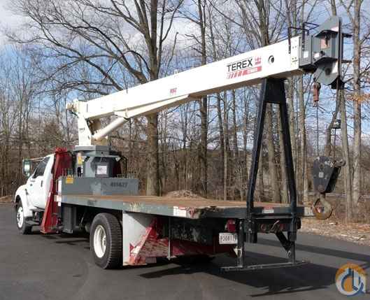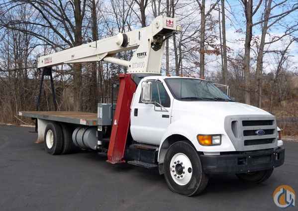 Location..Pennsylvania. S/N..0304BT34700100. 2004 FORD F 750; CAT 3126 (210 Hp) 6 CYLINDER DIESEL; 7 SPEED TRANSMISSION; P/S; AIR BRAKES; A/C; 11R22.5 TIRES; 33,000 Lb GVW ( 12,000 Lb FRONT, 21,000 Lb REAR); TEREX 17 TON CRANE MODEL BT3470; 80' HOOK HEIGHT; 3 SECTION HYDRAULIC BOOM; LMI SYSTEM; ANTI TWO BLOCK SYSTEM; 2 SPEED WINCH; SINGLE SHEAVE HOOK BLOCK; 20' STEEL FLAT BED.