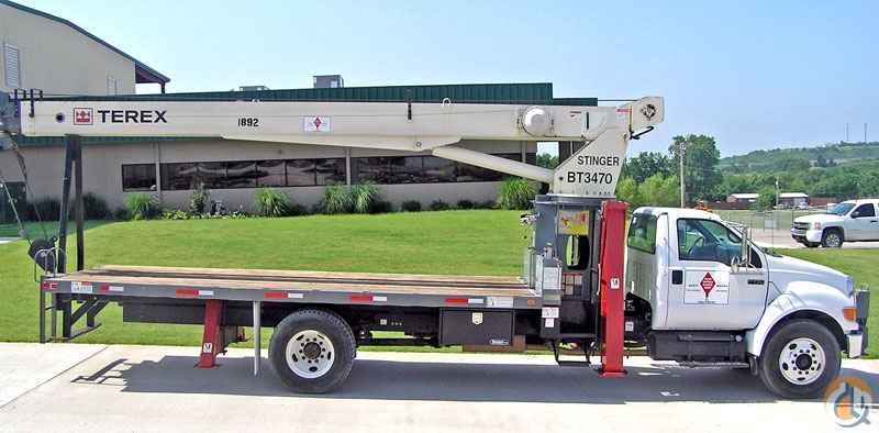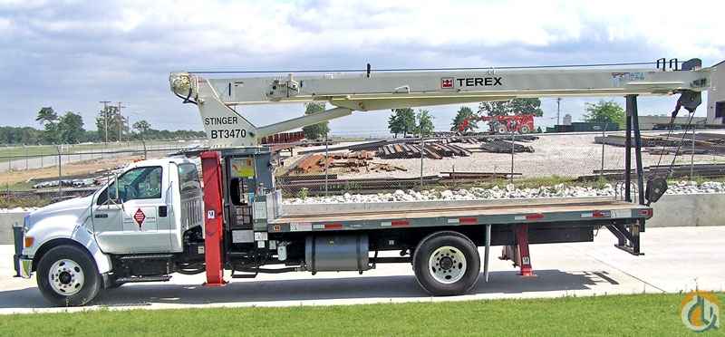 <p><strong>Location: Tulsa, Oklahoma: 2007 Terex BT3470, 17 ton capacity boom truck comes complete with standard options including: </strong>• 34,000 lbs (17 tons) Max. Lifting capacity-70” boom• Load moment indicator-Greer 586• Hot shift power take-off• Three section hydraulic pump• Rear bumper• Two piece 40’-telescopic side stow jib• 20’ Wood flatbed• Two-part load block (1sheave) 17.5 ton• Two speed winch motor• 9/16” spin resistant cable• Air Conditioning• Auxiliary sheave• 9/16” spin resistant cable• Winch drum tensioner• Continuous rotation• Aluminum, two-man self-leveling platform package (includes four function radio remote)• Single front bumper stabilizer (required for 360 degree chart)• Ford F-750 single axle chassis-White (33,00 GVWR-210 hp)</p>