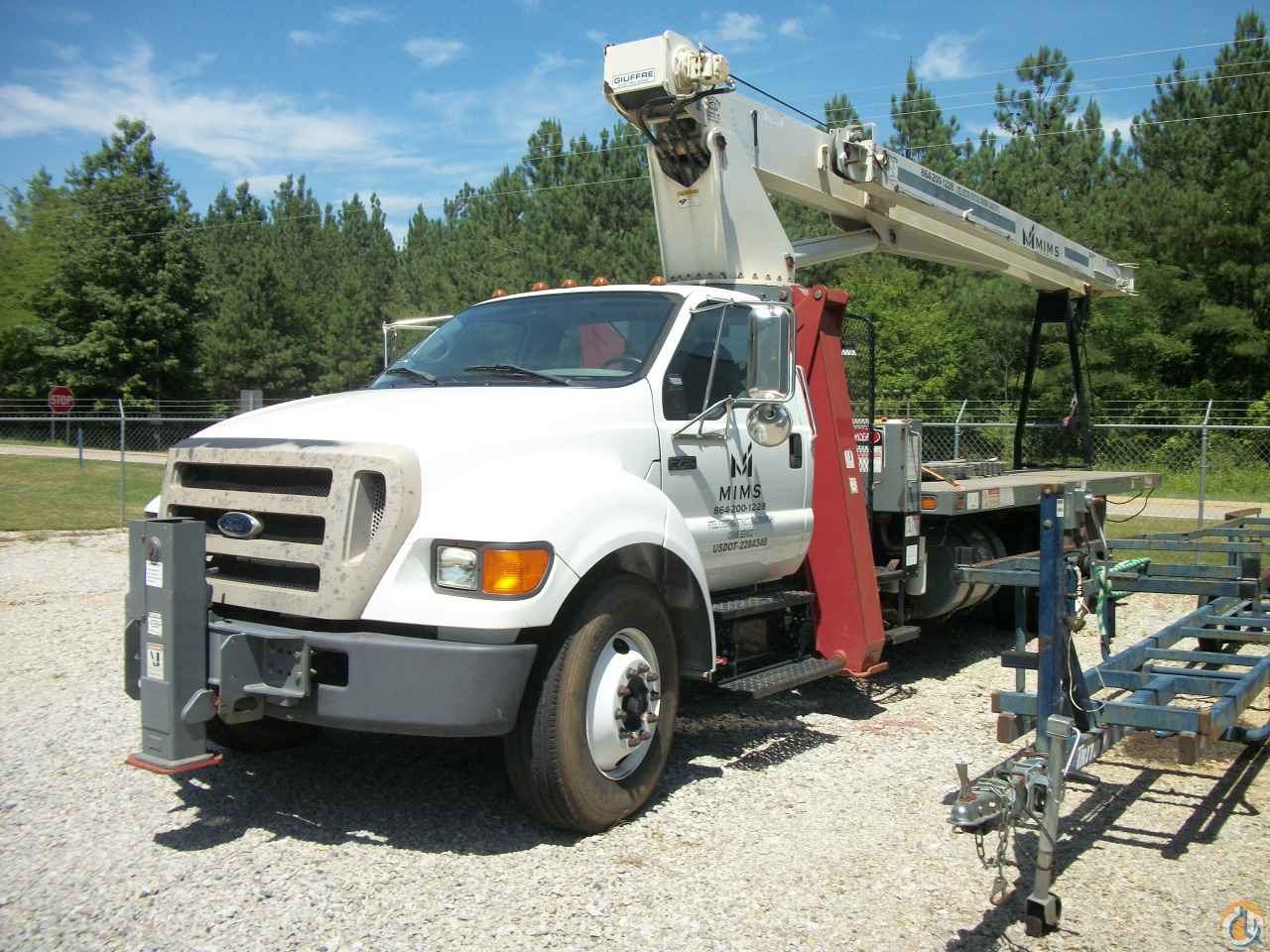 81,000 miles / 4,280hours. Mounted on 2005 Ford F750. 5th outrigger. New 20' bed. 75% tread on tires.