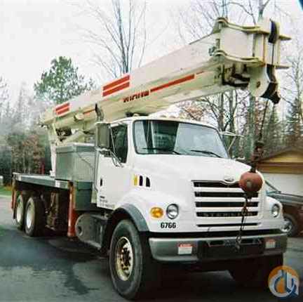 2003 TEREX Model RS-60100 30 ton rear mounted telescopic crane with riding seat controls and homemade crane cab with propane heater, 165 ft. maximum tip height with 55 ft. two stage jib. 100 - 110 ft. fully powered, four section proportional boom. Two-speed winch. Electronic load moment indicator (LMI computer). Anti two-block device keeps hook from being sucked up into sheave. Main and auxiliary hydraulic out & down outriggers, one tool box, 4 part line block and more. Crane is mounted on 2003 Sterling LT7501 Chassis with ~20,000 original miles. Only a change in career makes this unit available. Seller has owned crane since new.