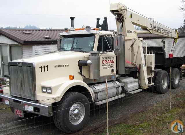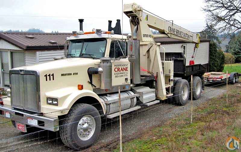 Location...Oregon. S/N...4890391019. 1999 Terex (formerly Simon-Ro) TM3051 Boom Truck, 15-ton capacity, This crane is mounted on a 1996 Western Star Tractor (VIN #2WKPDCCH5TK940742) and comes with a quick-attach 9 ' flatbed AND a 42' flatbed Comet brand semi-flatbed trailer with a 1-year-old deck (trailer fair market $5,000). It also comes with a newer single man basket and a single-sheave crane block as well as a 86 lb. ball. It is wired for electric as well as air brakes for pulling trailers. Cylinders remanufactured (2010) and has a working jib. 61 main, 91' w/ fly out (approx. 78' without fly), 9/16 cable, great overall condition, parade ready! 3406C Cat motor with 230,000, 18.000 front axle, 46,000 rear tandem axle, 18-speed fuller transmission, aluminum wheels, dual fuel tanks, 2-speed winch, Tires in great shape. I have attached some pics.