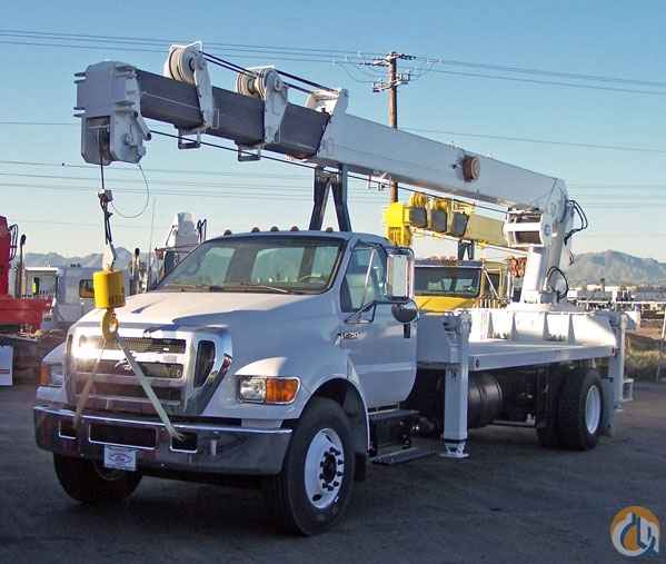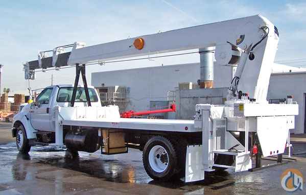 Location...Arizona. NEW UNIC 1582RM rear mount crane mounted on a NEW Ford F-750 XLT truck. The crane is equipped with continuous rotation, 4 out & down outriggers, 92 ft. tip height with main boom (optional 24 ft. jib available for a 116 ft. tip height), 16 ft. HD steel body, hydraulic oil cooler, and a 2-speed winch. The truck is a 33,000# G.V.W., 245 HP Cummins diesel engine, 6-speed transmission, and fully equipped with options. This is a new package with full manufacturers warranty on the crane and truck. Options available: Work baskets, remote controls, and jibs.
