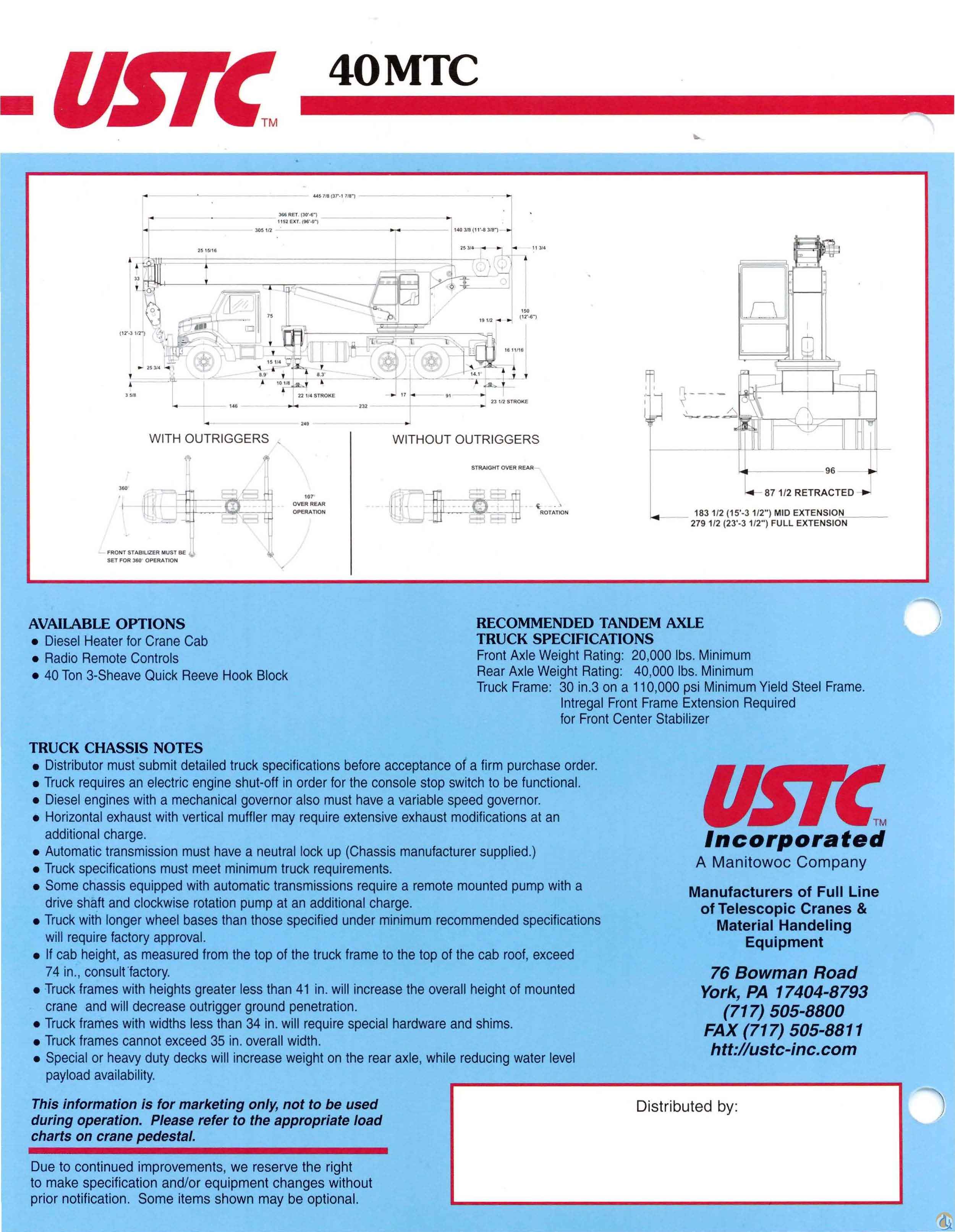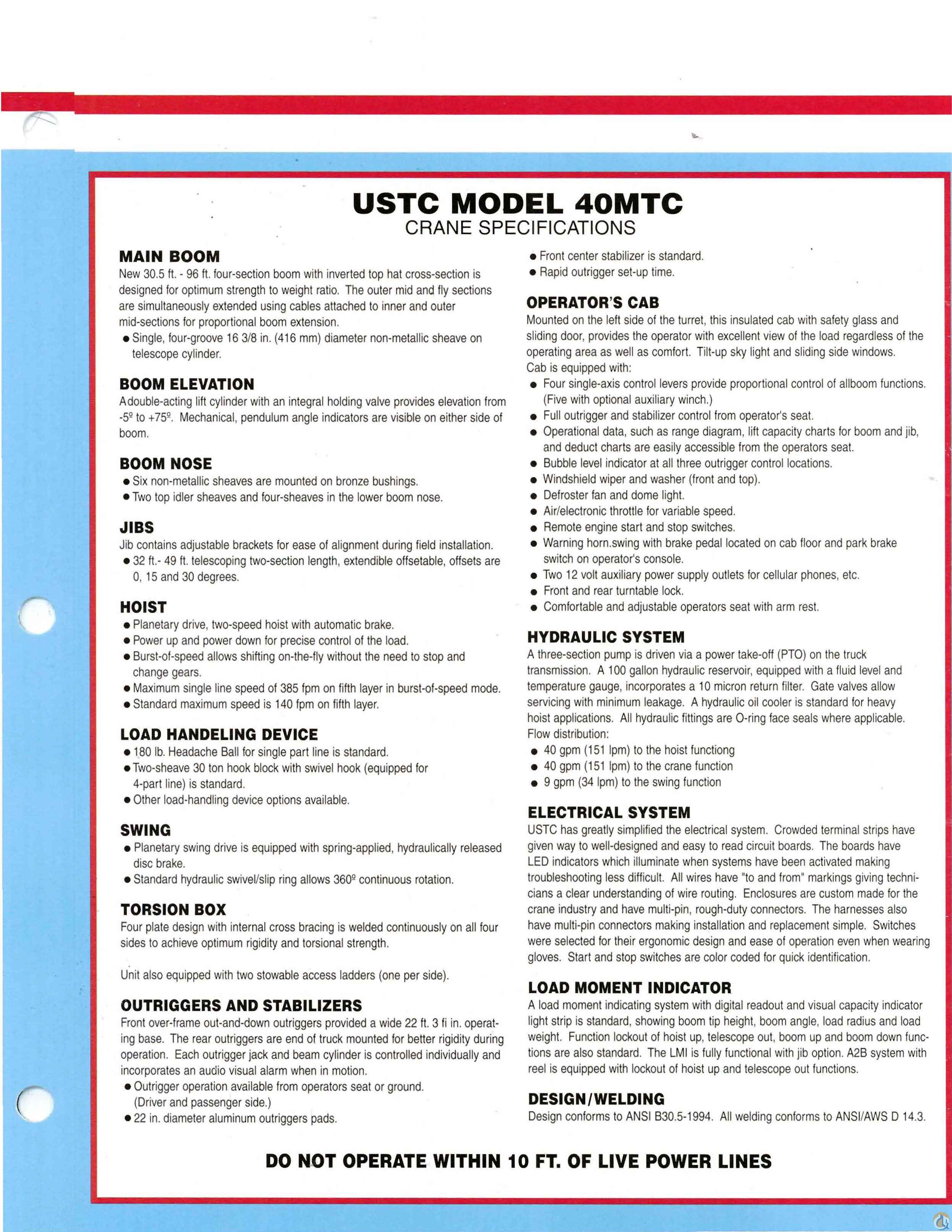 <p style="text-align: justify;"><span style="font-size: medium;">Used 1999 Sterling with 40 ton USTC Taxi King crane. This is the original show truck USTC used to promote their 40MTC Taxi King! This is a heavy picker! This crane will pick 80,000 lbs at a 9 ft. radius!! (View the complete load chart in the picture section). This one has an enclosed operators cab with 150 ft. tip height, dual winches, front buper stabilizer, LMI-Over Load Protection, and a 49 ft. offsettable jib. The truck is a 1999 Sterling with a 60,000 GVW, aluminum wheels, CAT power with an 8LL transmission. Truck and crane have approximately 99,350 miles and 7,555 hours. This is an excellent running crane and ready to work. Some will say this is one of the best cranes ever manufactured!</span></p> <p style="text-align: justify;"> </p> <p style="text-align: justify;"><span style="font-size: medium;">Contact George for more details @ 602-694-0168</span></p> <p style="text-align: justify;"><span style="font-size: medium;"> </span></p> <p style="text-align: center;"><span style="font-size: large;"><strong>SOLD</strong></span></p>