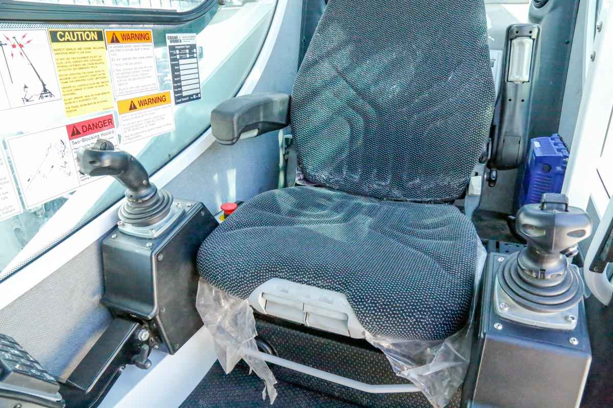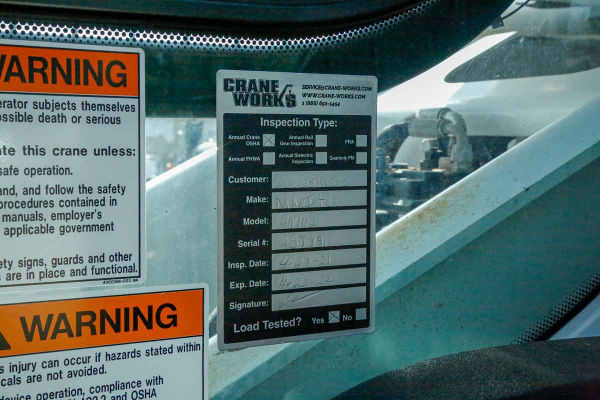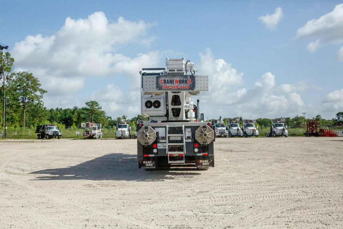 40 Ton Capacity 5-Section 142’ (43,3 m) 2-Section 31’ (9,4 m) to 55’ (16,8 m) Telescopic Jib 204’ (62,1 m) Maximum tip Height with Telescope Jib 152’ (46,3 m) Maximum Main Boom Tip Height Self-Lubricating Boom Slider Pads Wired Anti-Two Block System – Audible warning and shutoff functions prevent hook form contacting boom point. Switch is potted to ensure reliability. wo Speed Planetary Grooved Drum Hoist With Negative Draft Flange and Rope Tensioner Auxiliary Hoist Option Hoist Drum Rotation Indicator Third Wrap Limiter under the Hoist Drum Rotation Indictor Deluxe Cab with heater, air conditioning, heated cloth seat, 8 seat adjustments, top hinged hatch, rear pop out window, with guard. Front and top windshield wipers, 12 Volt DC outlet, USB ports and engine monitoring system. PLC crane controller, CANBUS communication, J1939 truck engine communication, electric hand and foot throttle, twin dual axis joysticks, electric/hydraulic valve actuation, electronic sensor monitoring. Free Swing-No-Free Swing Gear Switch Continuous Rotation 360º Work Area ROCSolid Outriggers feature Radio Remote Outrigger Controls, Audible Outrigger Motion Alarm Retracted, Intermediate And Fully Extended Outrigger Load Charts Load Chart On Tires Over The Rear Wired LMI with crane function cut-offs for overload protection, graphical display, event recorder, WADS – Work Area Definition System Back-up Alarm – supplied on factory-mounted cranes, electronic audible motion alarm activated when truck transmission is in reverse gear. Externally Wired Anti-Two Block System Rugged, Weatherproof, Automotive Style Electrical System Hydraulic Oil Cooler Clamp-On Mounting Design Meets ANSI B30.5 Recommendations Manitex UPTime Comprehensive Support