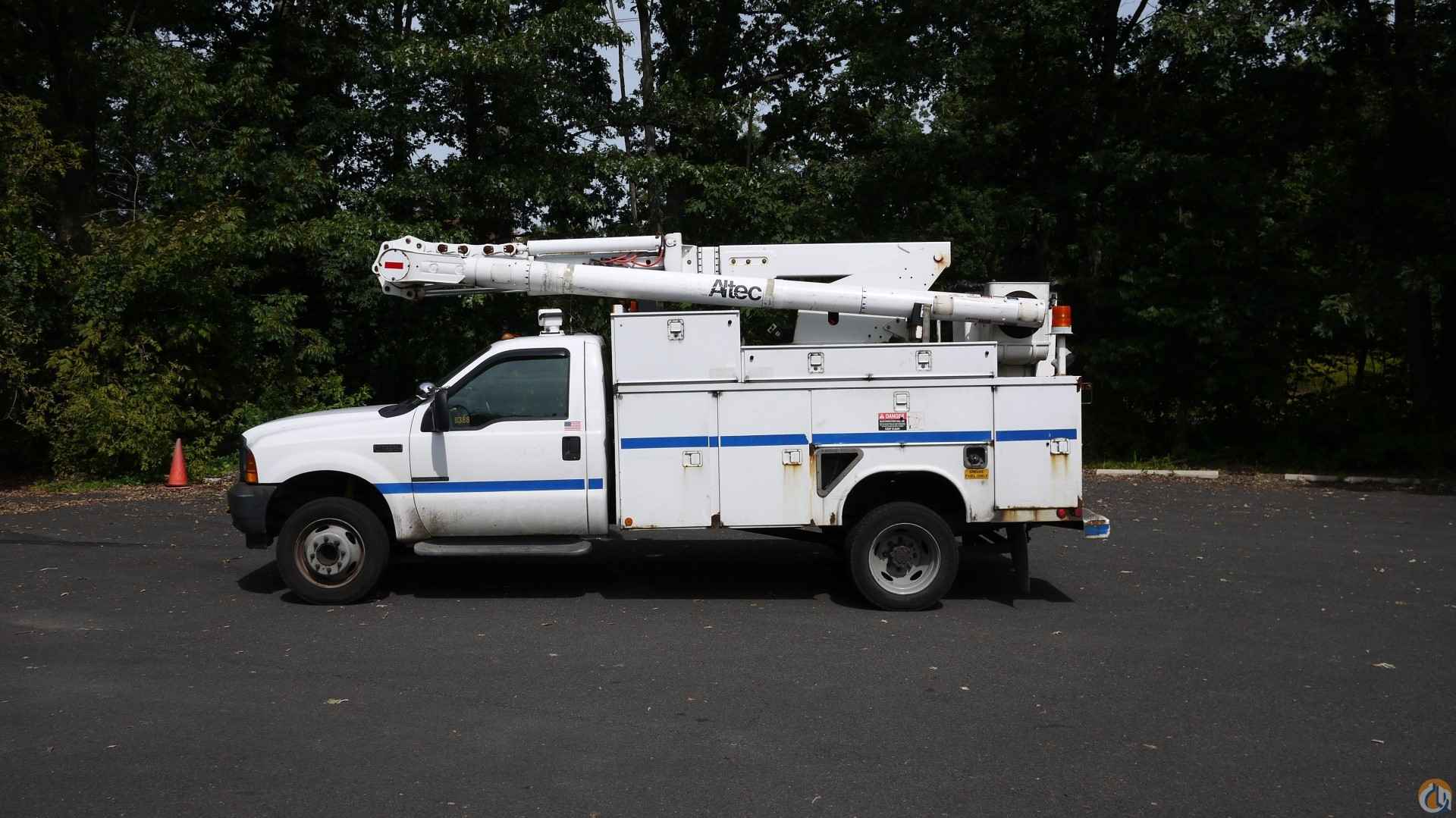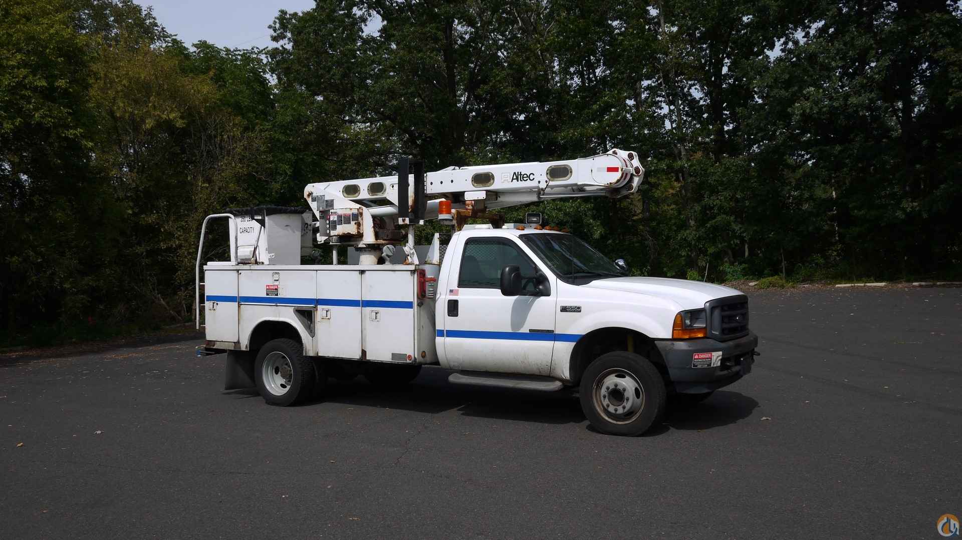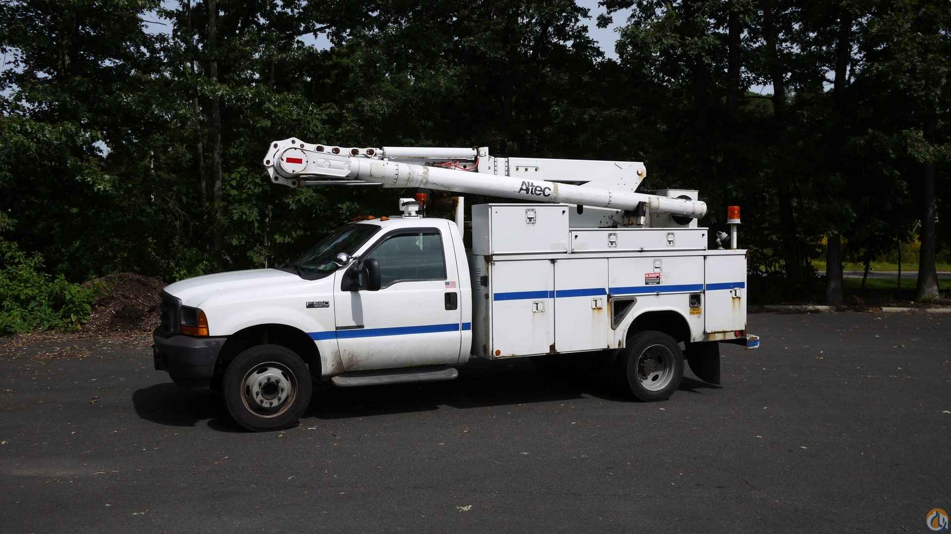 2001 FORD F550 S/DUTY • 7.3L 8 CYL DIESEL (250 HP); • AUTO TRANS W/ O/D; • POWER STEERING; • POWER BRAKES; • AIR CONDITIONING; • TIRES: 225/70R19.5; • 19K GVW. ALTEC L36A BUCKET • 11' UTILITY BODY; • 36' TO BOTTOM OF BUCKET; • JOYSTICK CONTROLS; • 12V EM POWER. SOLD