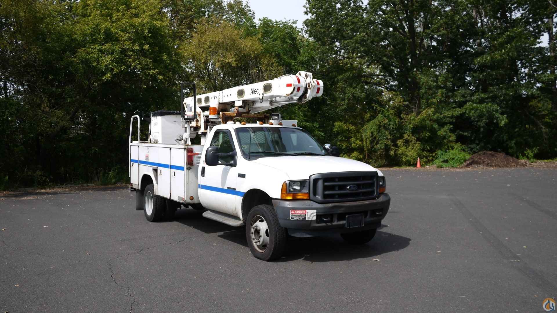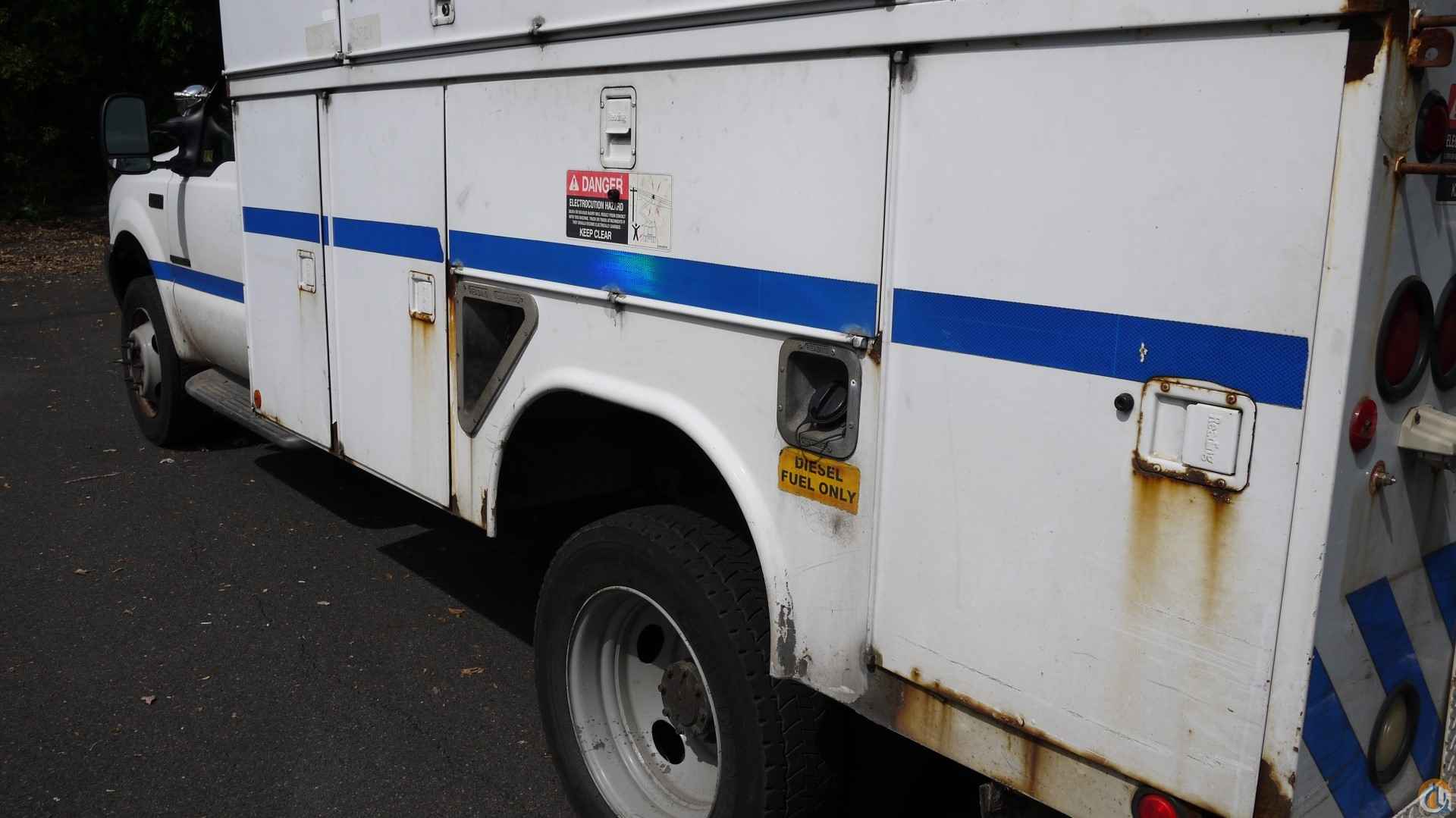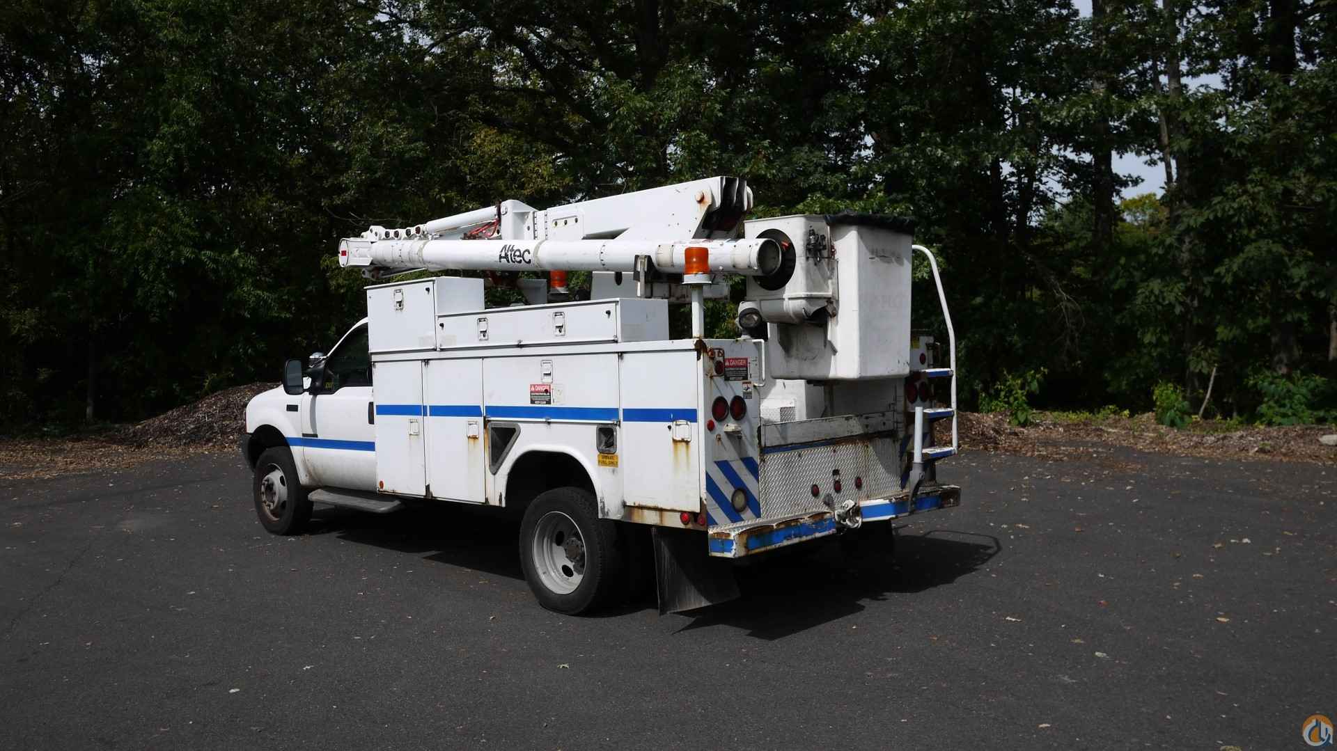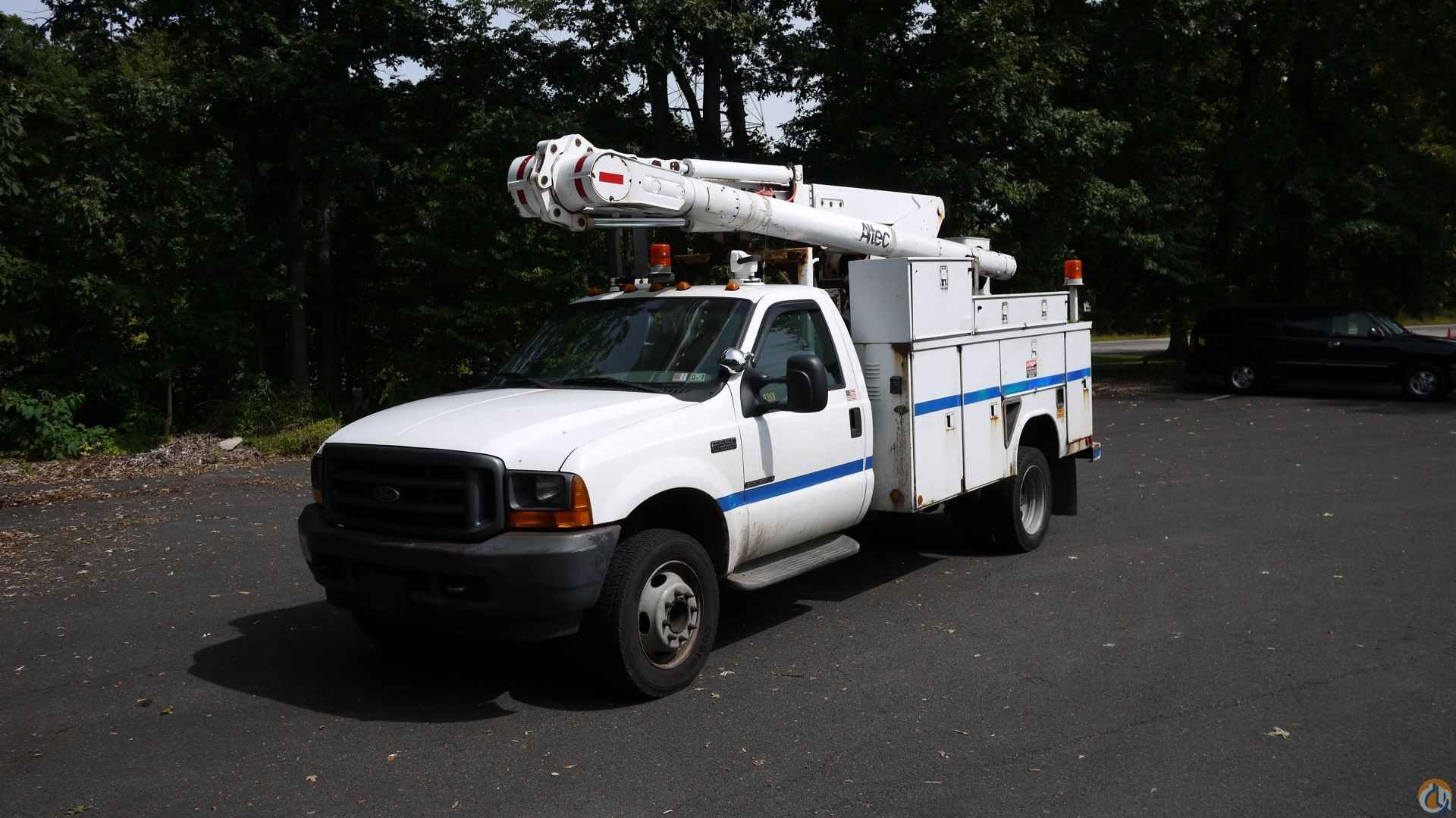 2001 FORD F550 S/DUTY • 7.3L 8 CYL DIESEL (250 HP); • AUTO TRANS W/ O/D; • POWER STEERING; • POWER BRAKES; • AIR CONDITIONING; • TIRES: 225/70R19.5; • 19K GVW. ALTEC L36A BUCKET • 11' UTILITY BODY; • 36' TO BOTTOM OF BUCKET; • JOYSTICK CONTROLS; • 12V EM POWER. SOLD