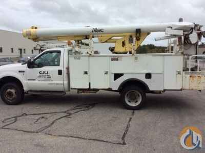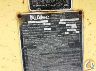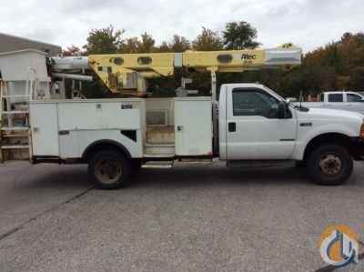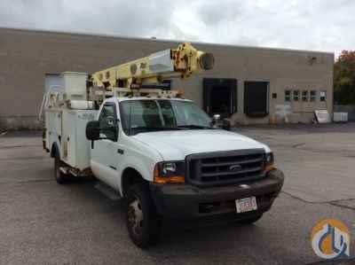 Altec L37M, 42 ft, Over-Center Material Handling Bucket Truck s/n 0900CW0273, with single-man bucket & 2 hyd outriggers, center mounted on 2001 Ford F550 Utility Truck, 7.3L diesel, Auto, A/C - More Information on this Equipment