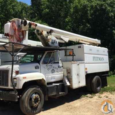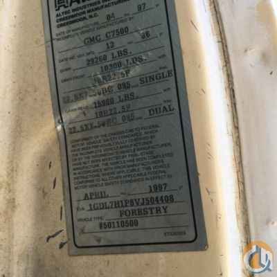 Altec LRIV-50, 55 ft, Over-Center Bucket Truck s/n 0497-BP0542, with single-man bucket, mounted behind cab on 1997 GMC C7500 Chipper Dump Truck, 8-cyl 5-spd, with 11' body, (Exempt from Odometer Disclosure - Reads 122,229 miles (unverified)) (Engine Tap) - More Information on this Equipment