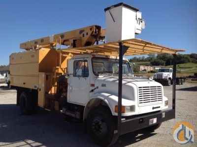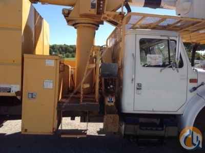 Altec LRV-55, 60 ft, Over-Center Bucket Truck s/n 0700CV0599, with single-man bucket, mounted behind cab on 2001 International 4700 Chipper Dump Truck, DT466 7-spd, A/C, with 11' body - More Information on this Equipment
