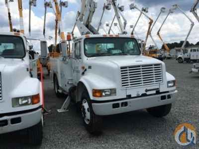 Altec TA41-MH, 46 ft, Articulating & Telescopic Material Handling Bucket Truck s/n 0500-CL0420, with single-man bucket, mounted behind cab on 2000 International 4700 Utility Truck, DT466 diesel, Auto, A/C, (Exempt from Odometer Disclosure - Reads 154,693 miles (unverified)) (Manuals provided in cab) - More Information on this Equipment