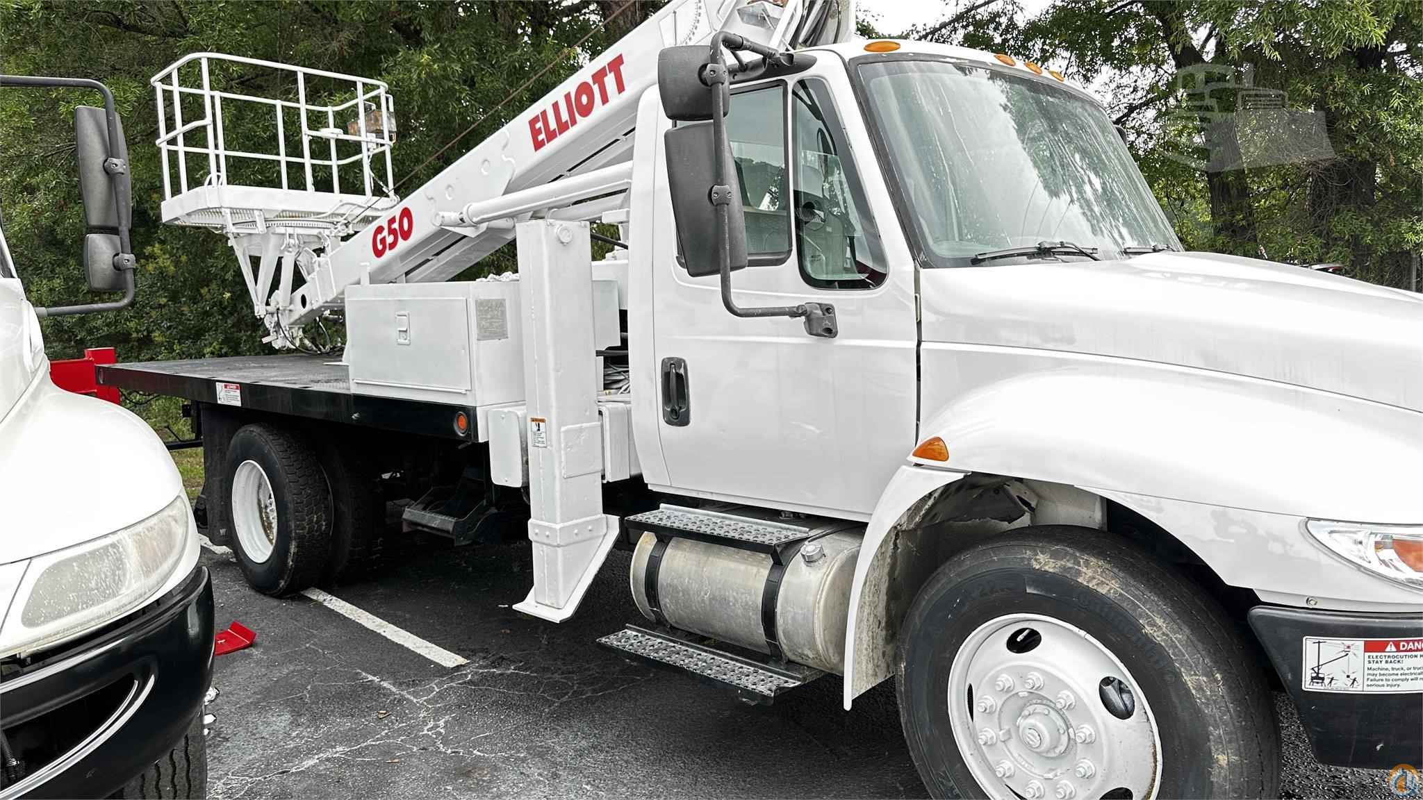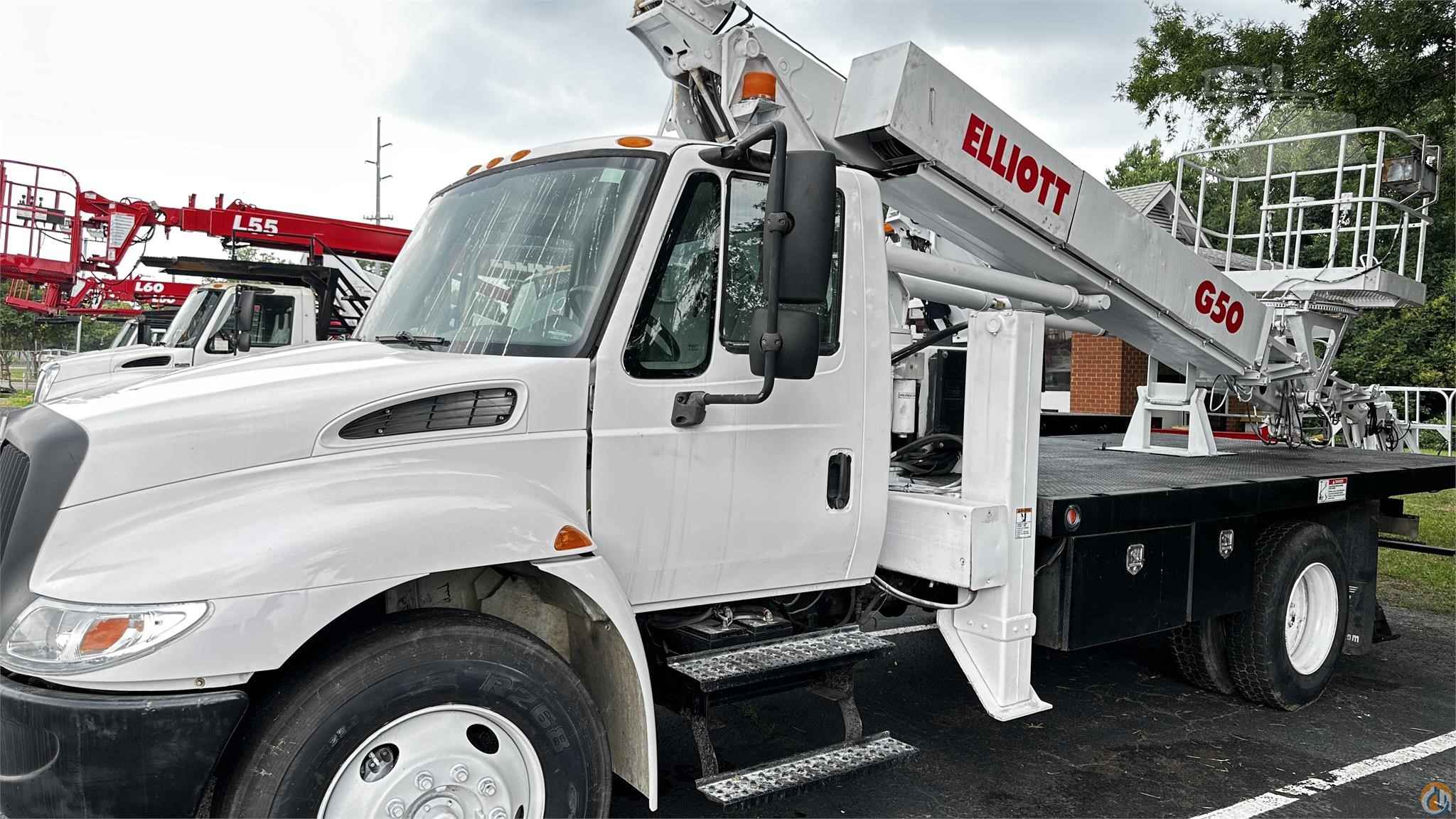 2004 International 4300 with Elliott G50 Under CDL 240,000 Miles Air Conditioning Remote Engine Start and Stop Remote engine Rev Up and Down Hydraulic outriggers 55 Ft Working Height Main Winch 5900 LB Lift Capacity Call