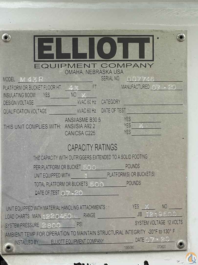2020 ELLIOTT HI-REACH MODEL M43R MOUNTED ON A 2019 DODGE 5500 19,500 TRUCK WITH AUTOMATIC TRANSMISSION TO BE EQUIPPED WITH THE FOLLOWING OPTIONAL EQUIPMENT: