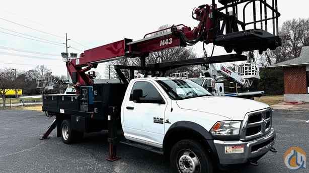 2015 Ram 5500 with Elliott M43 Cummins Diesel Allison Automatic 150,490 Miles Air conditioning Elliott M43 Working Height 48 Ft Welding Leads to Basket Miller Welder 2 Man Rotating Basket JIB Winch in Basket 10 Ft Bulb Holder Sign Forks