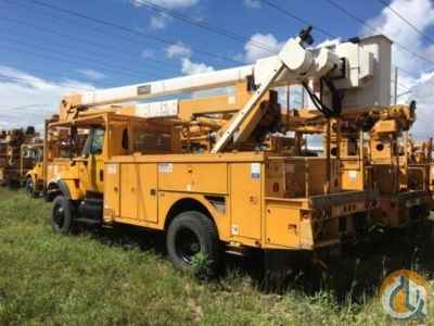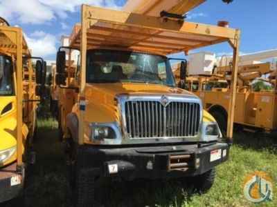 HiRanger 5TC-55MH, 60 ft, Material Handling Bucket Truck s/n 2030822449, with two-man bucket, rear mounted on 2004 International 7300 4x4 Utility Truck, DT466 diesel, 6-spd, A/C, with front winch, (Exempt from Odometer Disclosure - Reads 114,705 miles) - More Information on this Equipment
