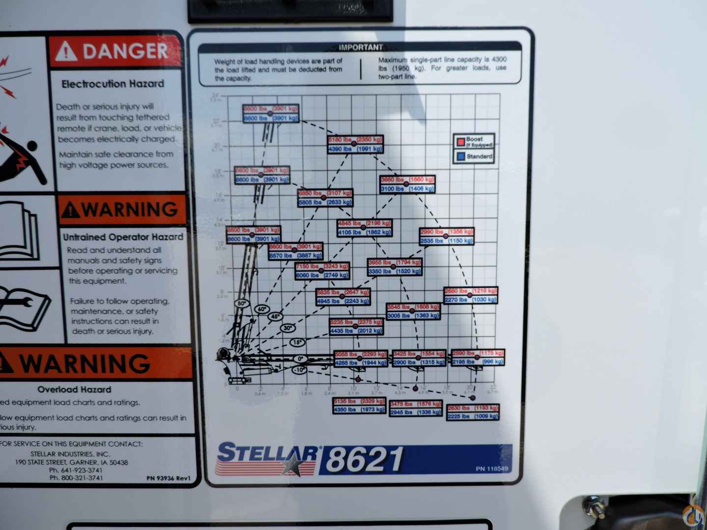 Stellar 8621 telescopic crane equipped as follows: