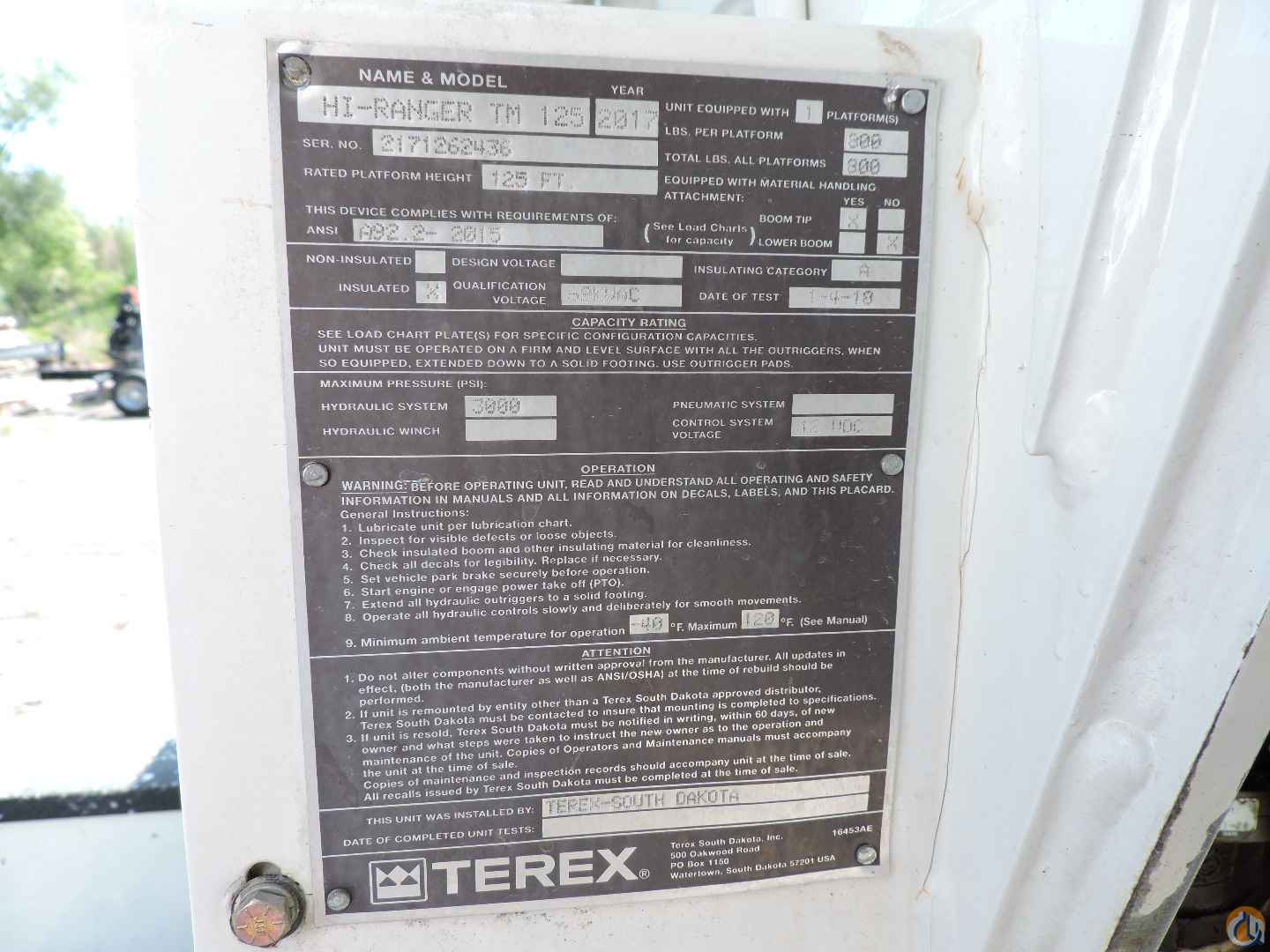 2017 Terex TM-125 equipped as follows: