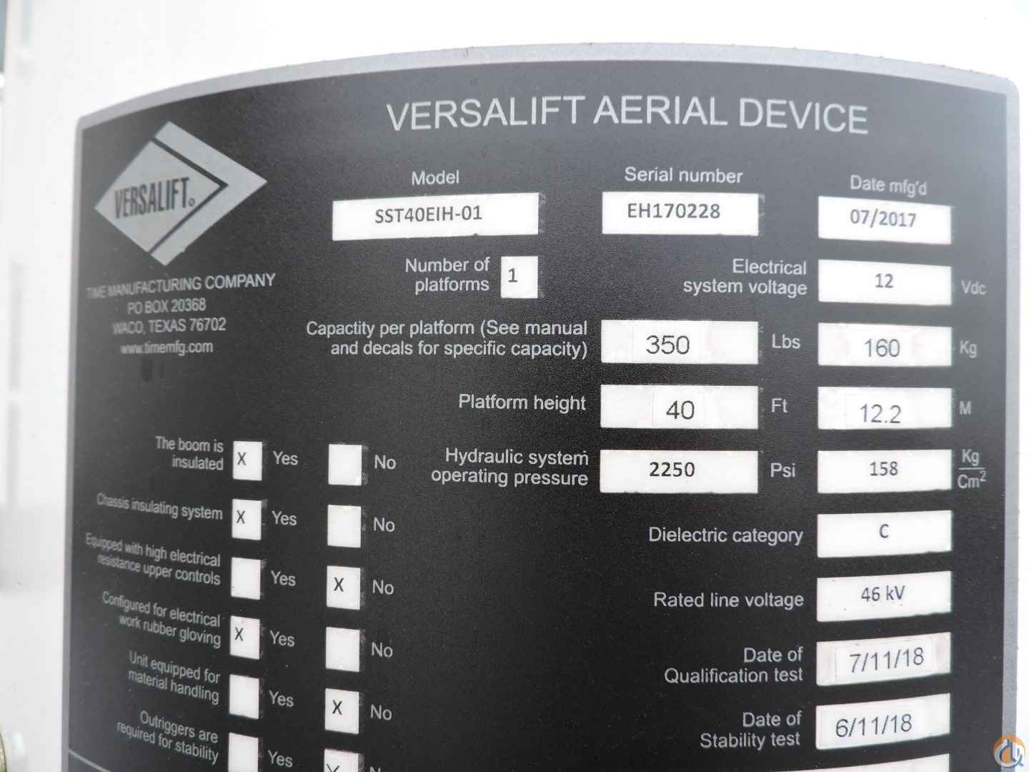 Versalift SST-40 EIH equipped as follows: