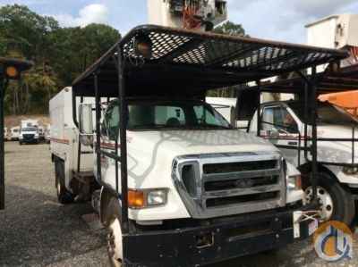 Versalift VO255, 60 ft, Over-Center Bucket Truck s/n HT050006, with single-man bucket & 2 hyd outriggers, mounted behind cab on 2006 Ford F750 Chipper Dump Truck, Cat C7 Acert diesel, 6-spd, with 10' body, (Exempt from Odometer Disclosure - Reads 60,142 miles) (bad boom insulator, lower boom insert, missing upper ID plate) - More Information on this Equipment