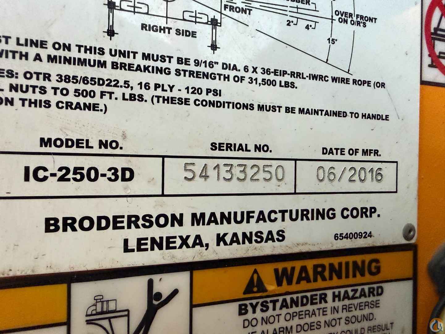 2016 Broderson IC250-3D, 18 ton carry deck, 50' + 20', Cummins, block, ball, A/C, 4 wheel drive and steer