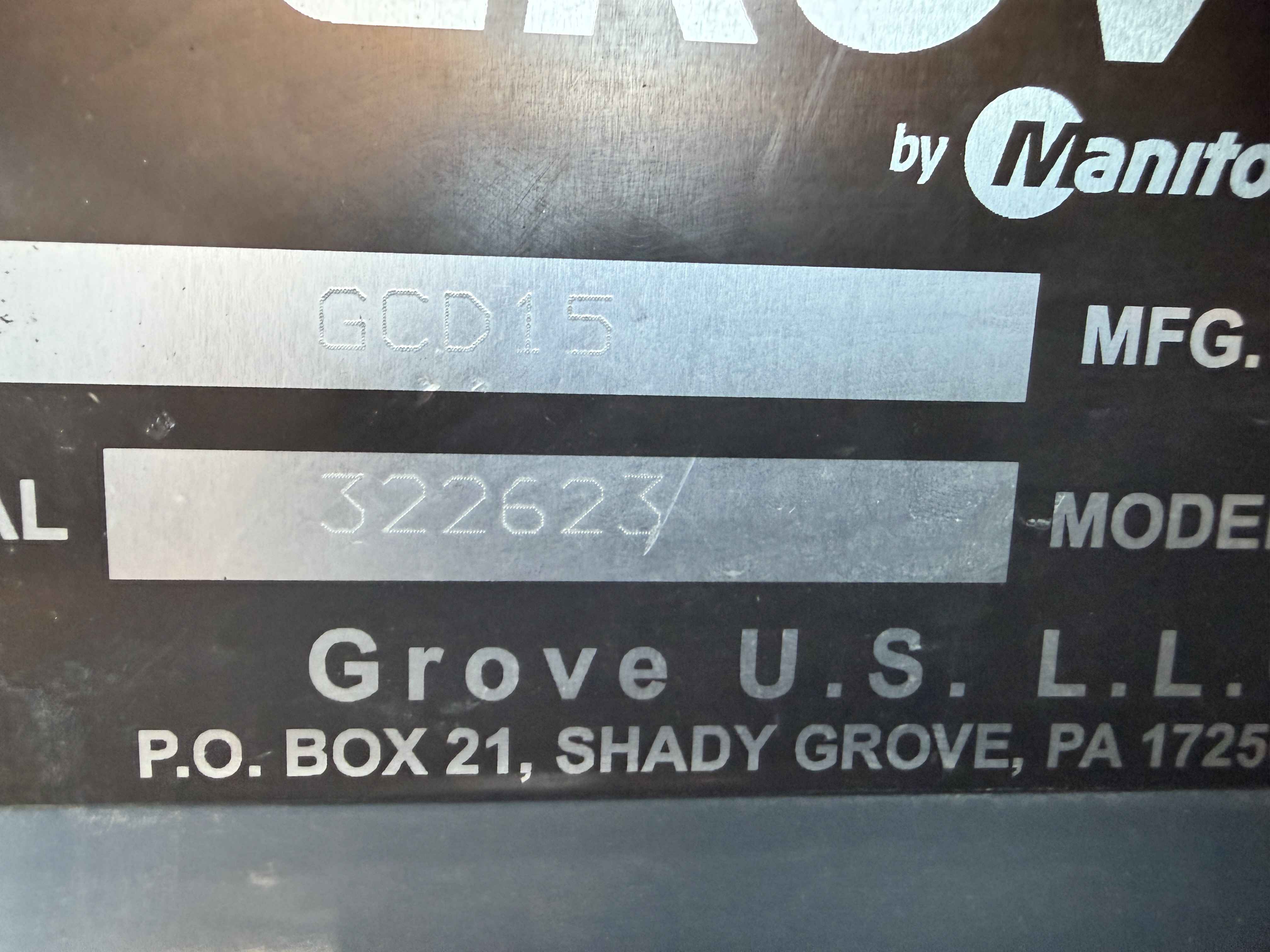 2019 Grove GCD15, 15 ton carry deck, 50' + 15', Cummins w/ 2,130 hrs, single owner, fleet crane, available for immediate inspection
