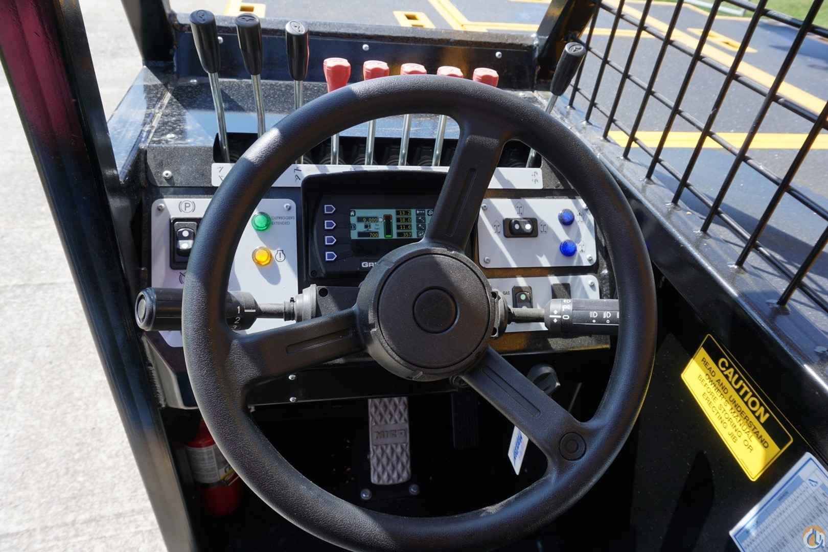 Tachometer, Check engine light, Engine Stop Light, Outrigger position indicator, wheels centered indicator