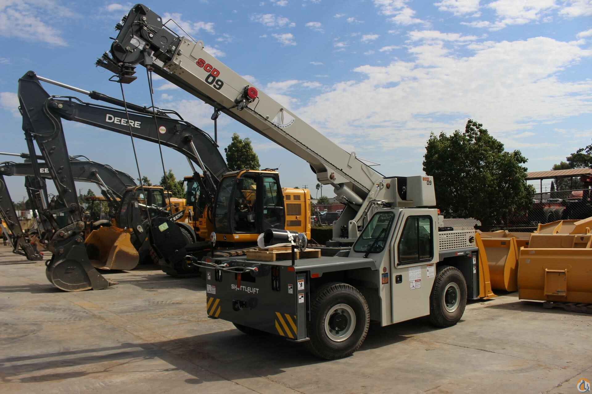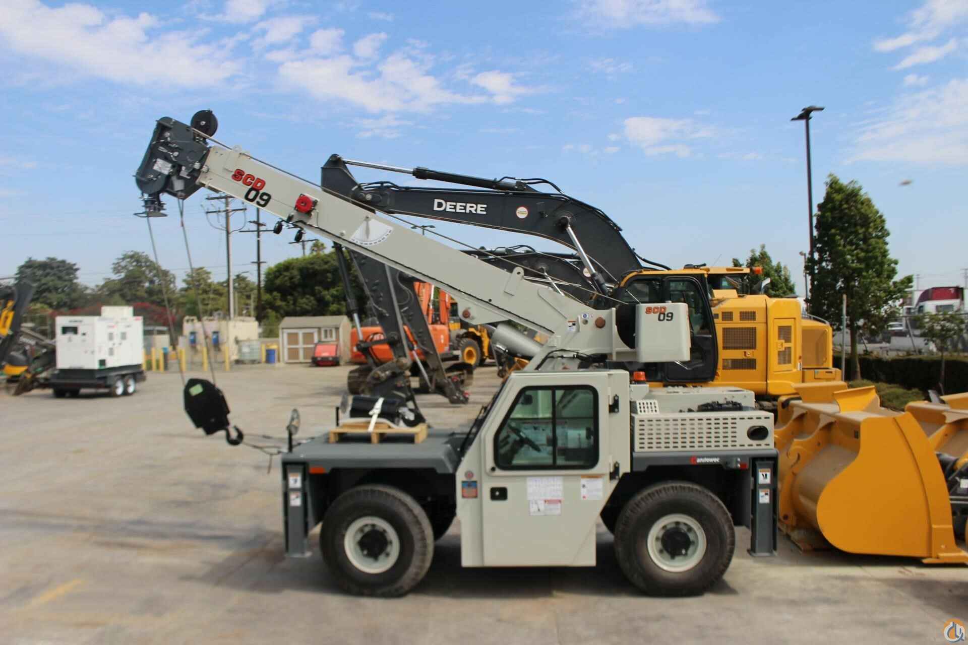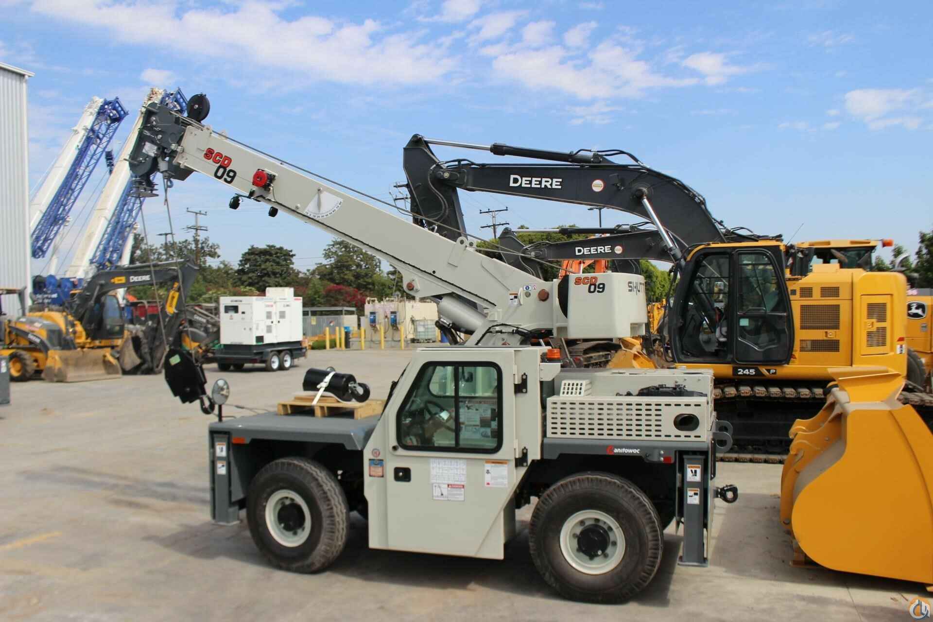 • SCD 09 9 ton capacity with 33’ 2” in three section fullpower boom• Cummins QSF 2.8 L (Tier IV) 4-cylinder turbo charged water cooled diesel: 74 HP, includes Cummins catalyst hour meter, cold start aid (grid heather), 120v engine block heater, and air filter service indicator. Engine shut down feature, Meets EPA emissions. Requires maximum 15 ppm “Ultra Low Sulfur Diesel.” Required for USA and Canada.• Front & rear 5 ton Pintle hitch, dual rearview mirrors, headlight & taillight grilles• Amber Strobe light and boom mounted work lights• Enclosed compartment with front, side & rear window glass, windshield wiper & washer, 2-piecedoors with sliding and swing out window, heater & defroster, and cab dome light• 2-Wheel steer, 4-Wheel steer, and Crab steer w/Electronic Self Alignment• Outrigger position monitoring system• 12 ft. Offsettable Swing Away Jib Boom Extension. Stows on side of base boom when not in use and swings into position. Includes bottom swivel hook block for single part usage.