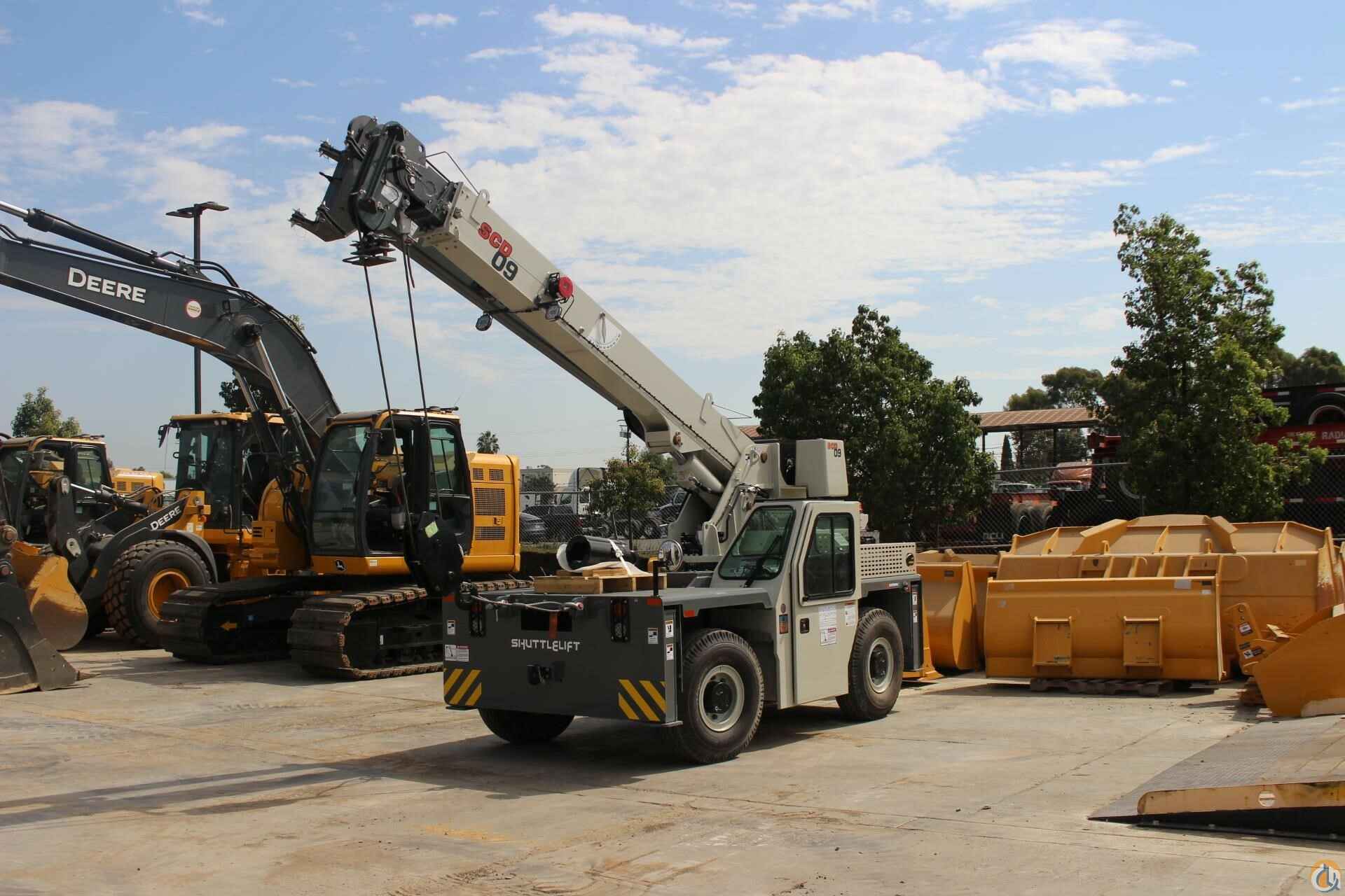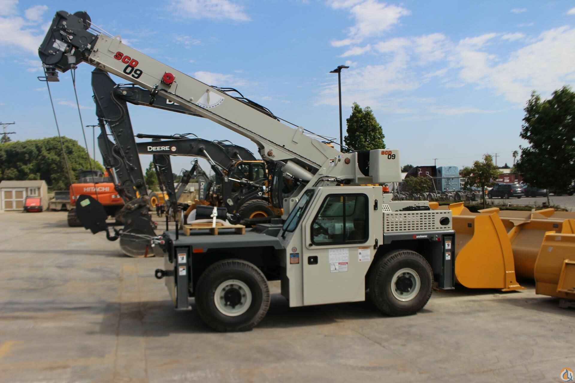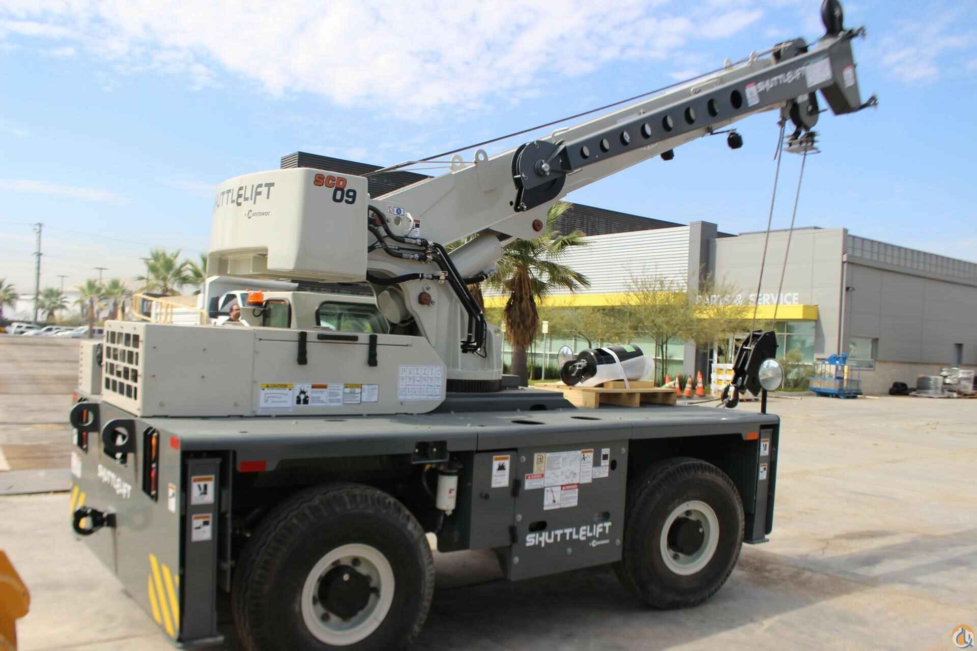 • SCD 09 9 ton capacity with 33’ 2” in three section fullpower boom• Cummins QSF 2.8 L (Tier IV) 4-cylinder turbo charged water cooled diesel: 74 HP, includes Cummins catalyst hour meter, cold start aid (grid heather), 120v engine block heater, and air filter service indicator. Engine shut down feature, Meets EPA emissions. Requires maximum 15 ppm “Ultra Low Sulfur Diesel.” Required for USA and Canada.• Front & rear 5 ton Pintle hitch, dual rearview mirrors, headlight & taillight grilles• Amber Strobe light and boom mounted work lights• Enclosed compartment with front, side & rear window glass, windshield wiper & washer, 2-piecedoors with sliding and swing out window, heater & defroster, and cab dome light• 2-Wheel steer, 4-Wheel steer, and Crab steer w/Electronic Self Alignment• Outrigger position monitoring system• 12 ft. Offsettable Swing Away Jib Boom Extension. Stows on side of base boom when not in use and swings into position. Includes bottom swivel hook block for single part usage.