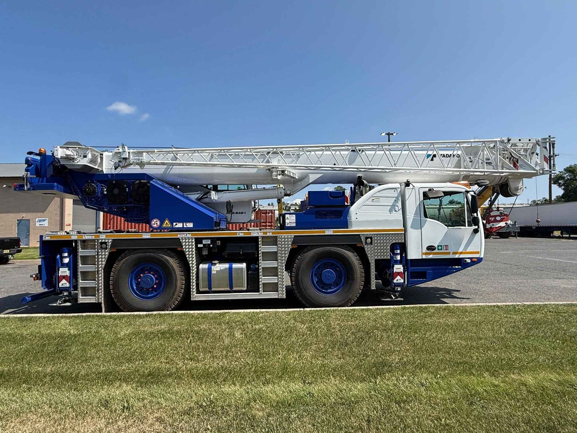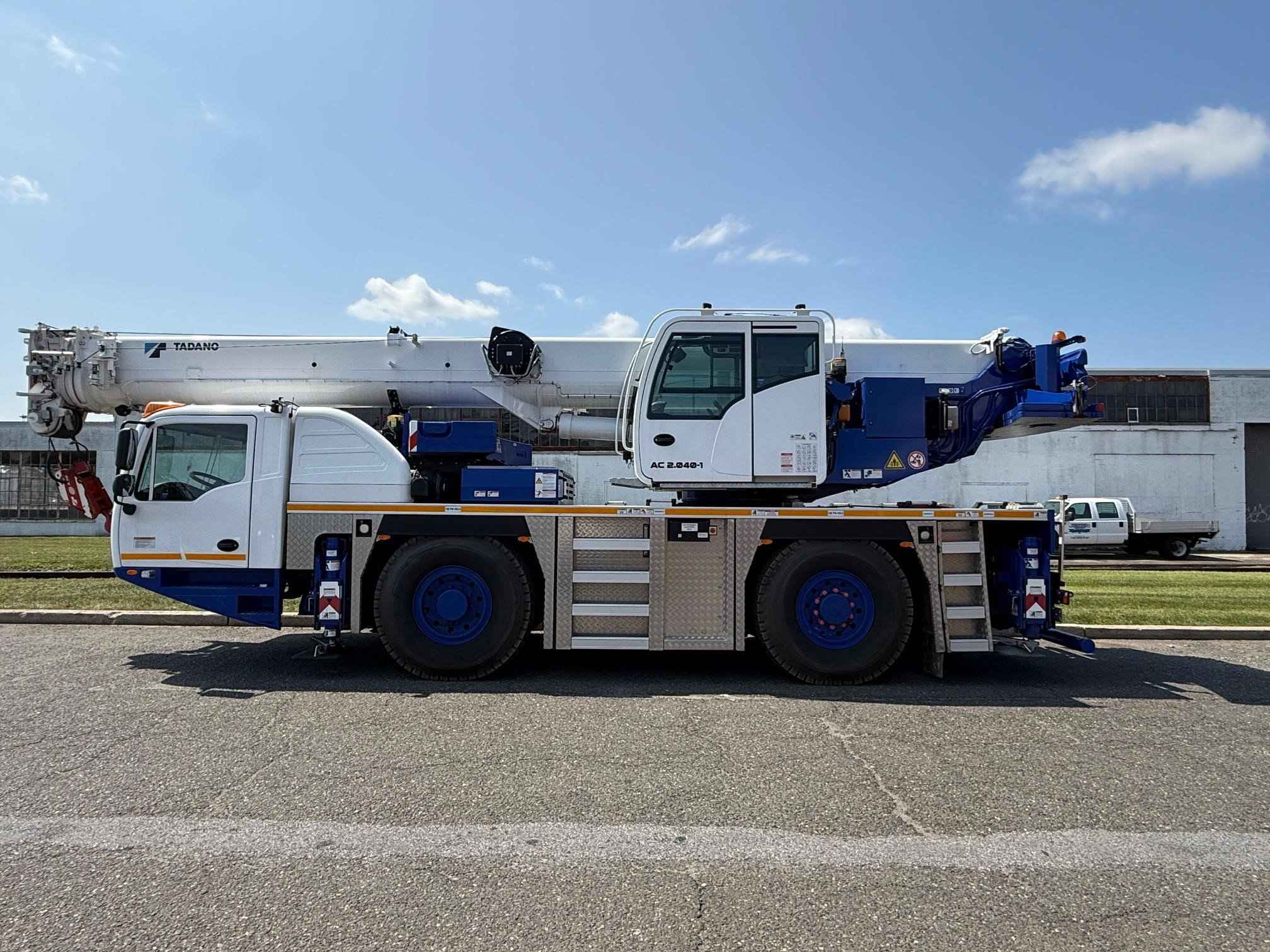 Max. Crane Capacity: 40 USt Main Boom Length: 34.3 ft – 115.5 ft Boom Extension: 29.5 ft Max. Tip Height: 154.2 ft Max. Counterweight: 14,300 lb Outrigger Bases: 21.2 ft x 19.7 ft Hoist Line Pull :7,500 lb MAX Radius: 125.0 ft Dimensions: L: 36.5 ft W: 8.4 ft H: 11.8 ft Axles: 2 Engine: Cummins Drive: 4 x 2 x 4 (4 x 4 x 4) The AC 2.040-1 features a fully hydraulic boom that can telescope under load, as well as extraordinary taxi crane capabilities ensured by a design that minimises weight. Projects such as roofing work, solar panel installations, and lifting work material at work sites are ideal for the AC 2.040-1.