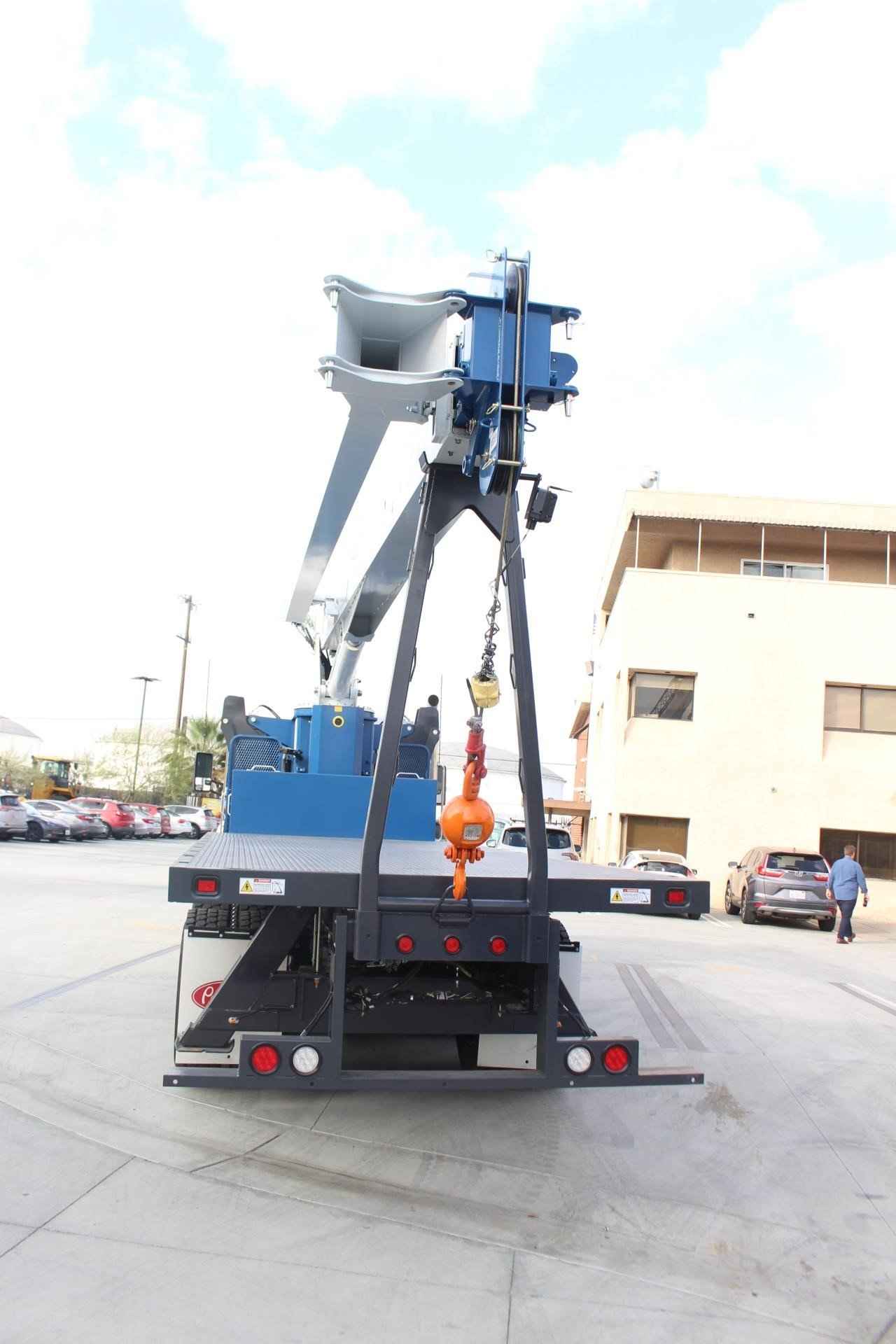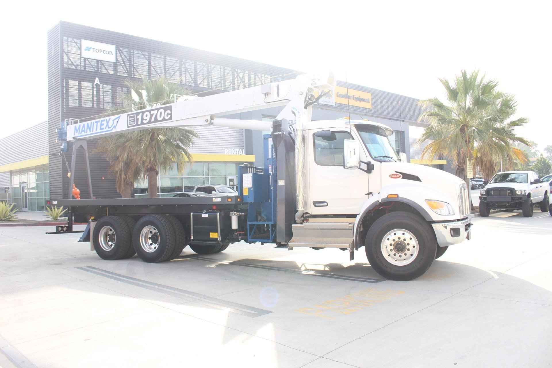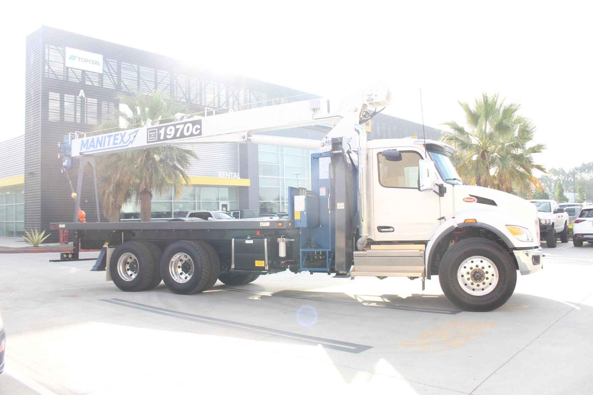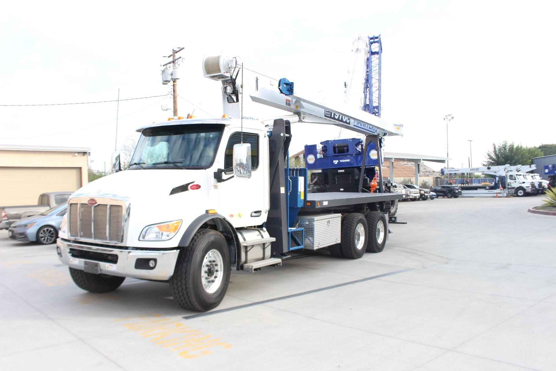 MANITEX 1970C 19 TON CRANE Standard features: 70’ Three-Section Telescopic Boom, 19 Ton base rating at 5’ radius, 2-speed Hoist w/Grooved Drum, 7 Ton Hook and Ball, 3-Load Sheave Quick Reeve Boom Head, Externally wired Anti-Two Block w/lockout, Boom Hoist Cylinder, System Pressure Gauge, 372° Non continuous Rotation, Removable Boom Rest, Engine Start/Stop, Operator’s Service/Parts Manuals, Boom Length and Angle Indicators, Foot Throttle, Electronic Throttle, Bubble Level, 300’ of 9/16” EIPS IWRC Wire Rope, 70 Gallon HD Reservoir w/Suction Strainer & Ball Valve, Pedestal, Turret, Rotation Bearing & Swing System, Dual Operator Control Stations, Load Moment Indicator – Audio/Visual Alert w/Shutoff, Audible Outrigger /Stabilizer Motion Alarm, A-Frame Outriggers (21’6” spread width), A-frame rear stabilizers, 3-Section Hydraulic Pump – CCW Rotation is Standard, Subframe for 20’ bed, Outrigger Monitoring System verification only, Signal Horn. Additional Options Included: • Radio A2B • 1 Piece 24’ Jib Radio A2B • Standard Mount Installation • 20’ Steel Bed with 1/8 thick Steel Thread Plate • 3 Section Vane Pump-Clockwise Rotation • Hotshift PTO • Drive Shaft for Pump Installation • Rotation Resistant Rope in lieu of Standard • 15 Ton 1-Sheave Quick Reeve Block for 2-3 part line 9/16” rope • Chassis Mounted Hydraulic Reservoir in Lieu of Standard • Aluminum Toolbox (48” L x 24” W x 24” H) – Chassis Mounted MOUNTED ON PETERBILT 548 Mounted on a 2026 Peterbilt 548 tractor chassis with a Paccar PX-9 370 HP diesel engine, Allison 3000 RDS-P Gen 5 Transmission, Dana Spicer D2000F 20,000 lb. front axle, Dana Spicer DSH40 40,000 lb. rear axle, Full set of Alcoa polished wheels, D-Shape Aluminum 50 gallon fuel tank, Heater and air conditioner with defrosters, full instrumentation, full power windows, interior color Gray/Black, AM/FM/WB Bluetooth Phone and audio radio, Air Horn mounted under cab, Dual heated mirrors, Stainless steel sunvisor, Unit is painted Axalta Two Stage White.