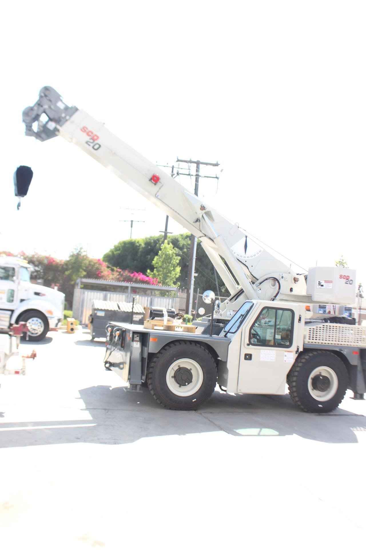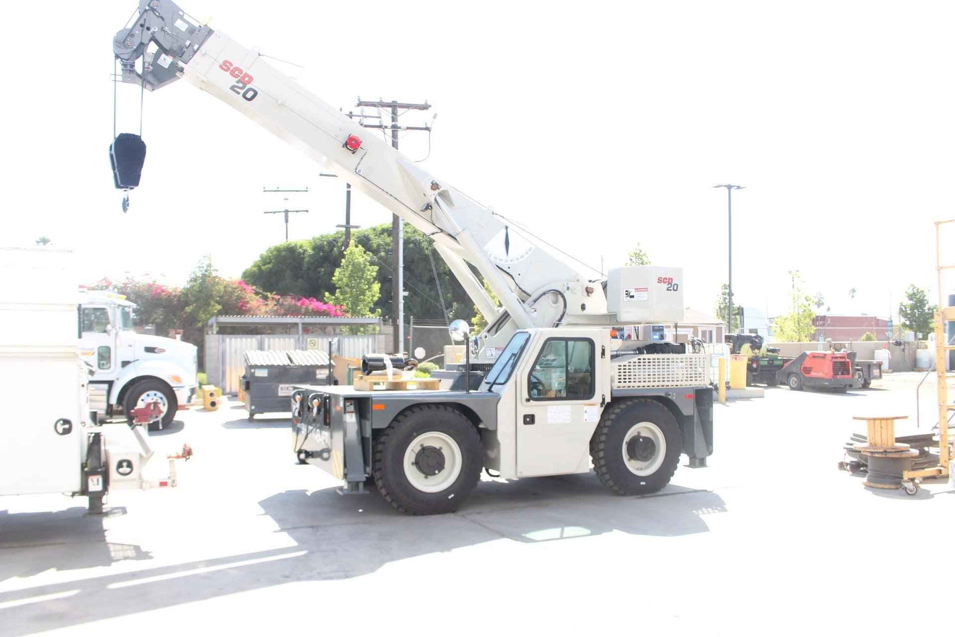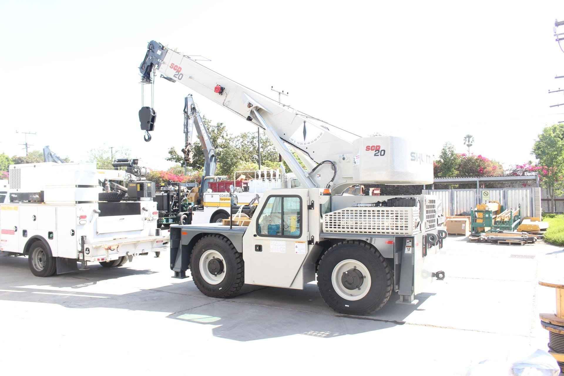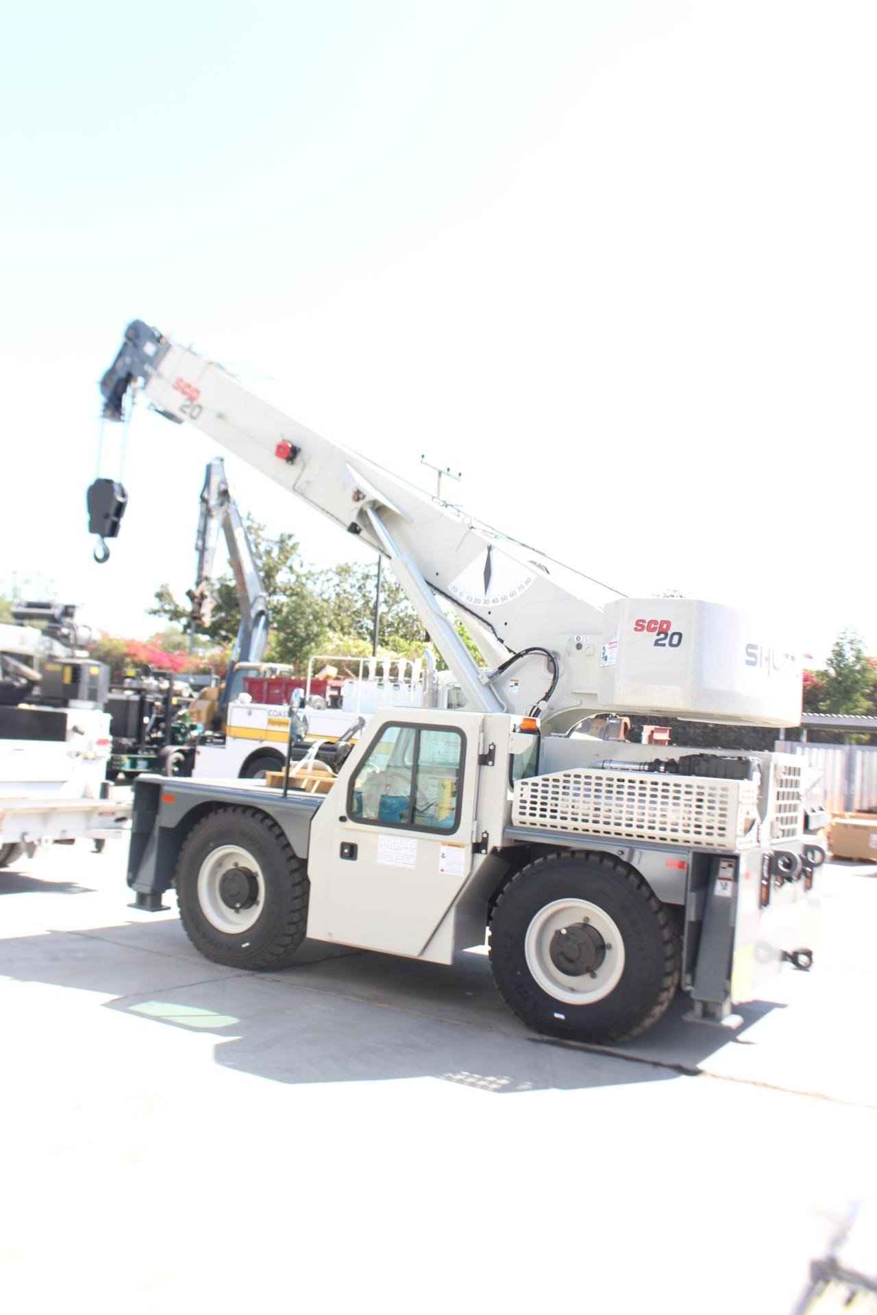 2025 SHUTTLELIFT - MANITOWOC SCD20 20 TON Standard features: BOOM: 54.5 ft. four section Full power boom with integral holding valve on telescope cylinder. Three position, pivoting boom nose. BOOM ELEVATION: Twin double acting hydraulic cylinders, 0° to 80° with integral holding valves & mechanical angle indicator RATED CAPACITY LIMITER AND ANTI-TWO BLOCK SYSTEM: Hardwired Wylie i4300 rated capacity limiting system with audio-visual (buzzer/light) warning and function cut-out. Color graphical display of boom length, load radius, boom angle, rated load, and calculated load. Hardwired A2B system is a low-profile style w/audio warning and auto control lock-out. OPERATOR’S STATION: Chassis mounted cab shell with roof safety glass, suspension seat, and dash mounted pilot operated control levers, gauges for engine functions, tilt steering wheel, electric horn, fire extinguisher, sight level bubble, seat belt, and DC electronics charging port. SWING: 360° continuous rotation, worm & gear drive on ball bearing swing circle. COUNTERWEIGHT: One piece cast type bolted to the turntable. HYDRAULIC SYSTEM: Load sensing variable displacement axial piston pump, 34.5 gallon steel reservoir with external sight level indicator. HOIST: Two speed planetary drive main hoist with automatic multi-disc brake. Includes 3rd wrap indication wight function cut out, a drum rotation indicator in the hoist joystick control, and hoist direction indicator light on dash. WIRE ROPE: 320’ of 9/16 “diameter 6 x 19 class EEIPS IWRC. HOOK BLOCK: Two sheave, “Quick Reeve” style hook block, 20 US ton capacity. OUTRIGGERS: Hydraulic box/beam style at all four corners with integral check valves and integral steel outrigger pads. Independent control of outriggers and outrigger motion alarm. ENGINE: Cummins QSF 3.8L (Tier IV Final) 4-cylinder turbo charged water cooled diesel, 130 HP @ 2500 RPM, includes Cummins catalyst and SCR device to meet EPA emissions. (Required for sale in areas with maxim 15ppm sulfur content diesel fuel or country requirement.) AXLES: Front: Drive/steer type with limited slip differential. Rear: Steer/non-drive (4x2 drive); rear axle oscillates 1.5°. Standard 2 wheel and 4 wheel coordinated and crab steering with electronic self-alignment. TRANSMISSION: Powershift, four speeds forward and four speeds reverse. BRAKES: Four wheel full hydraulic, internal multi-wet disc brake system with mechanically applied disc type parking brake on front axle input shaft. TIRES: 12.00 R20 tires. LIGHTS: Full lighting package includes front & rear chassis mounted work lights, rear taillights, turn indicators, brake and hazard. MISCELLANEOUS STANDARD EQUIPMENT: Non-skid deck surface, backup alarm, front & rear tie down lugs, dual side rear view mirrors, hook block tie down, owners USB flashdrive (includes operator’s, service/maintenance, and parts manuals, troubleshooting schematics, load charts, and safety book). Additional Options Included: • Front and Rear 15 Ton Pintle hitch, headlight, and taillight grilles. • Includes amber strobe light and boom mounted work lights. • Enclosed Compartment with front, side and rear window glass, windshield wiper and washer, two piece door with sliding and swing out window, heater, and defroster and cab dome light. • 4-Wheel drive with 1.5° rear axle oscillation • Outrigger position monitoring system • Air conditioning