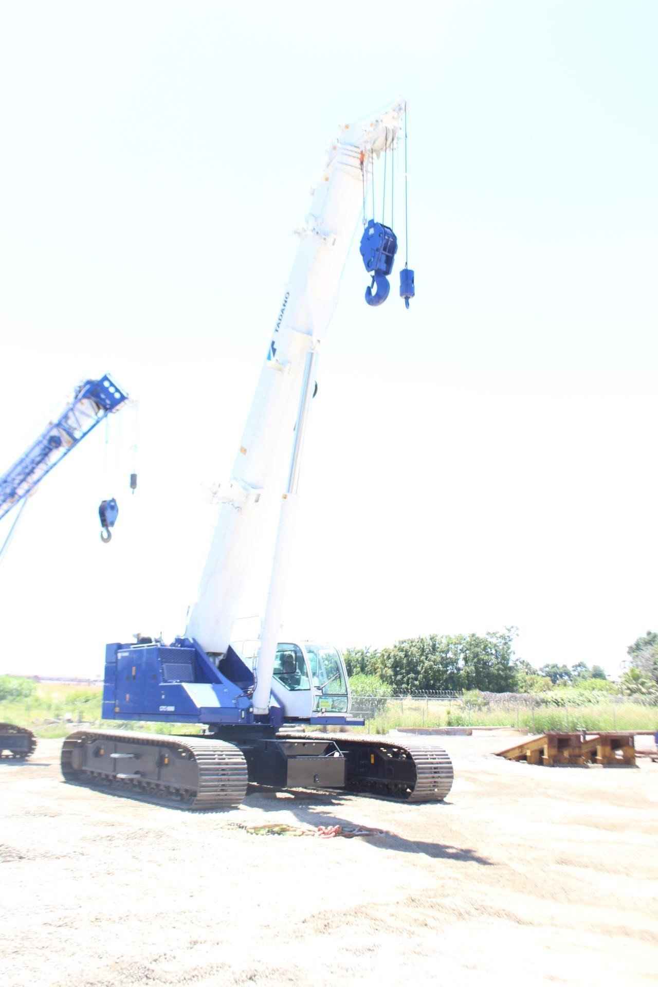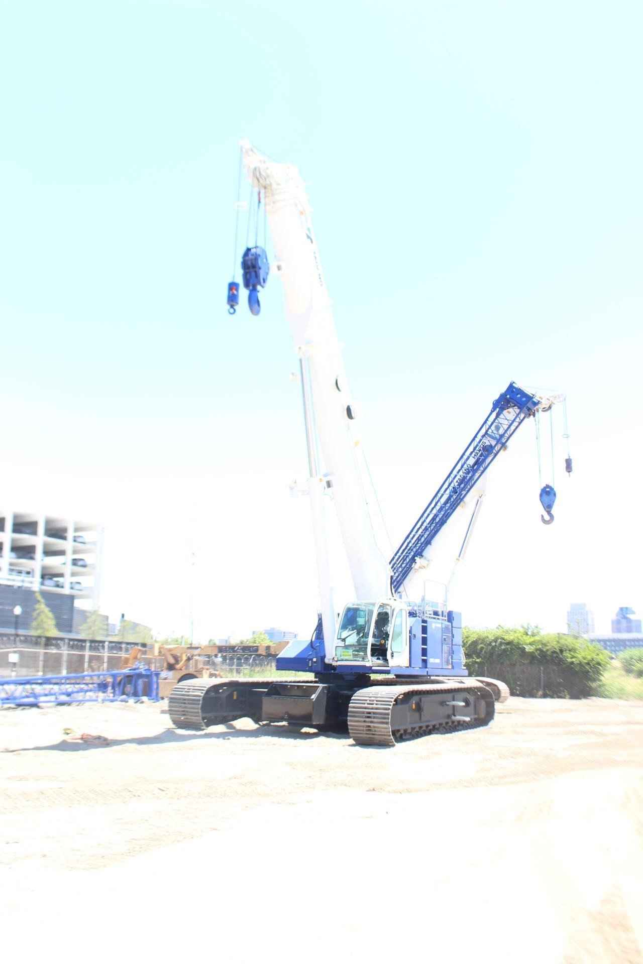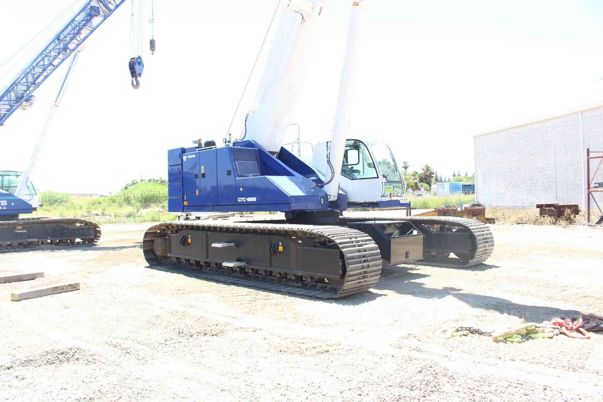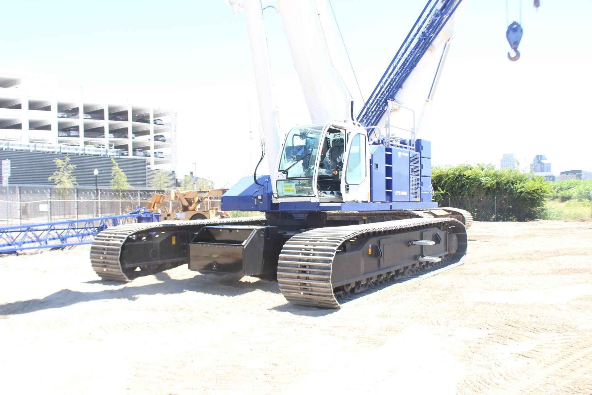 TADANO MANTIS GTC-900 Standard features: • 90 ton lift capacity • 5 section 37.7’ – 141.1’ full power telescopic boom • Cummins QSB6.7 310 HP Tier 4f/EU Stg V Diesel Engine • Standard Cab with A/C, Heat, Engine Monitoring, tilts to 20 degrees • Tadano AML-C LMI System with North American (ft.- lbs.) Load Charts, for 0.5°, 1.5°, 2.5°, and 45° slope, and 3 color light bar • Automatic & Manual Slope Selection Modes • Cab Mounted Keyed LMI Override Enable Switch • Tadano HelloNet telematics • Video Camera Monitor – 3 closed circuit cameras – winch, rear, and right side view • Work Light Package • Main Winch with grooved drum, cable follower, drum rotation & 3rd wrap indicator, 695’ of 19mm diameter rotation resistant wire rope • Auxiliary Winch with grooved drum, cable follower, drum rotation & 3rd wrap indicator, 475’ of 3/4” rotation resistant wire rope • Auxiliary Boom Head • Hydraulic Extendable Undercarriage with 3 track width zones & OPTI-WIDTH™ • 35.4 Inch 3-Bar Semigrouser track shoes • 45,000 lb. rear counterweight with radio control removal system • 20,000 lb. carbody counterweight • Storage box mounted to Carbody counterweight • Crane access walkways and folding upper handrail system • Hydraulic Oil – ISO VG32 – Mineral Based Oil • Standard Tadano Mantis Blue/White paint • 1 Hard copy of Load Charts and Operation Manuals and 1 Electronic Copy of Parts Manual Additional Options Included: • 33.1’/58.1’ bi-fold jib offsets 3.5°, 25°, and 45° • 55T Quick Reeve Hook Block • 8.8 Ton Headache Ball with swivel hook & safety latch