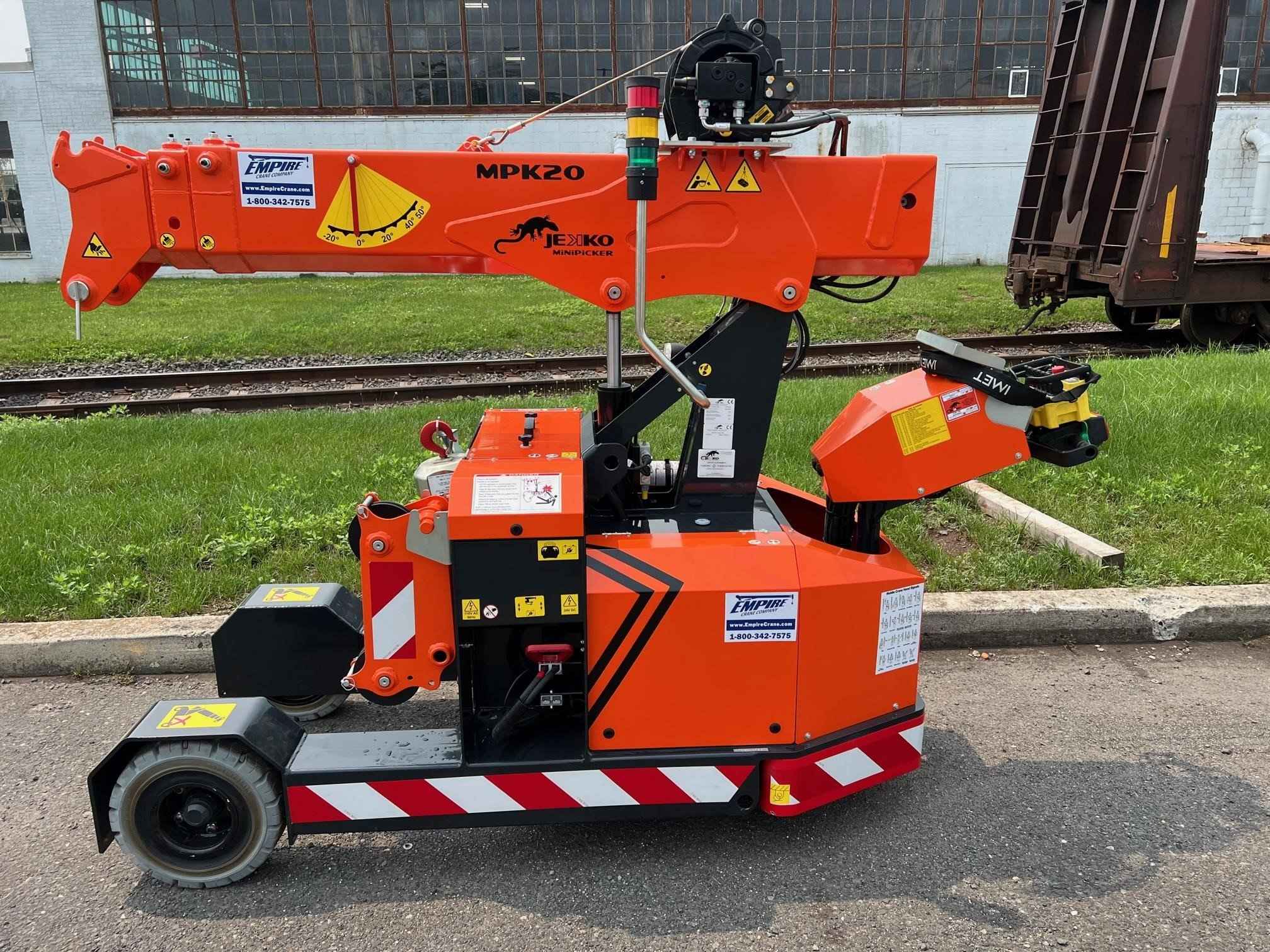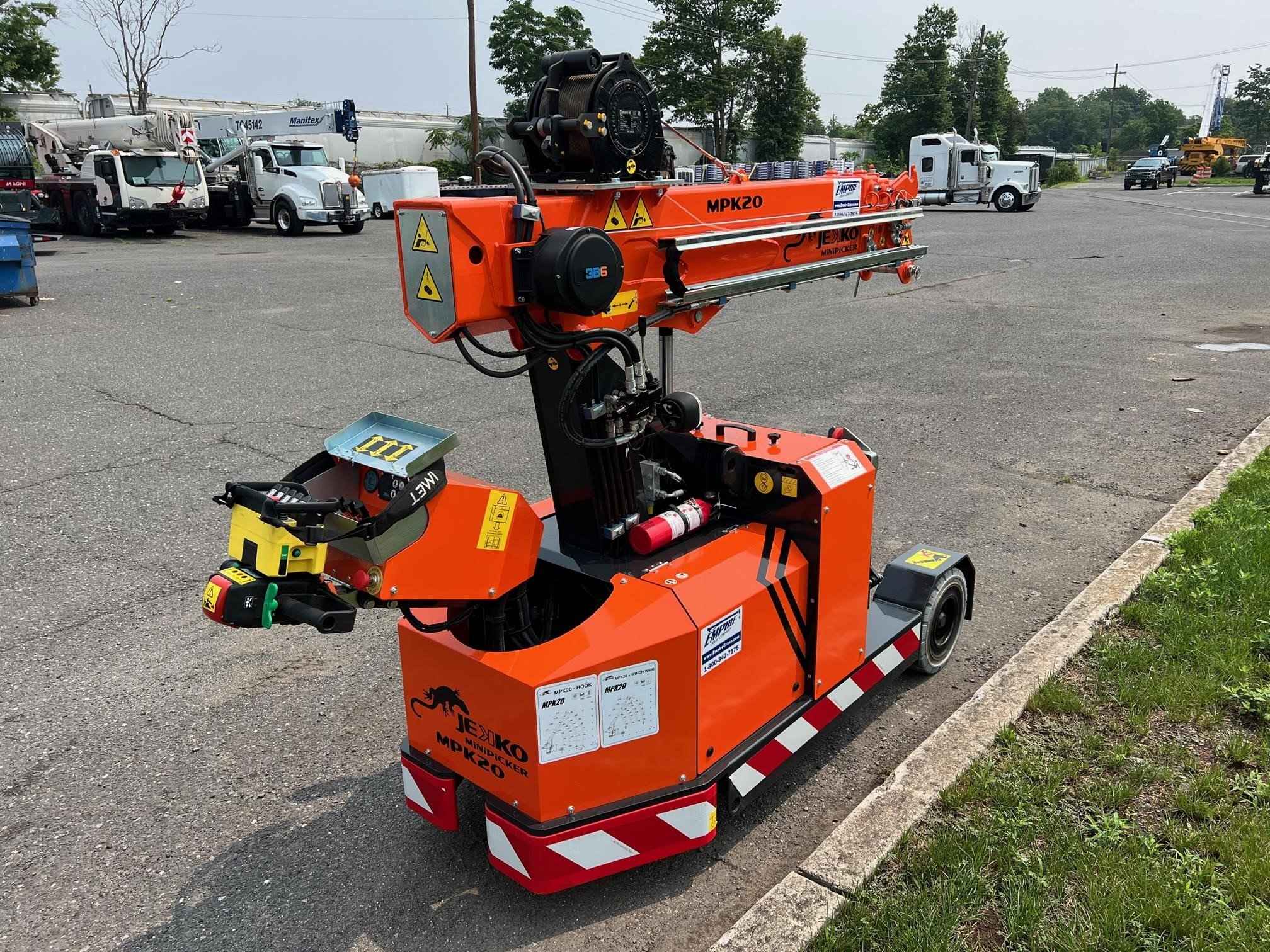 2023 Jekko MPK20W Max. Capacity: 4,400 lbs. Dimensions: 104 in. [7/8] x 37 in. [3/8] x 76 in. [5/8] Max. Vertical Reach: 16 ft. Max. Horizontal Reach: 9 ft. Battery Powered Mini Crane 2 Ton - 1 Sheave Pulley Block D7 Rope Winch 600KG 60M rope 7MM and pulley head Hydraulic extra functions Radio remote control The essential partner for industrial maintenance and glass handling. Reliable, safe and easy to use: a small crane with great potential.