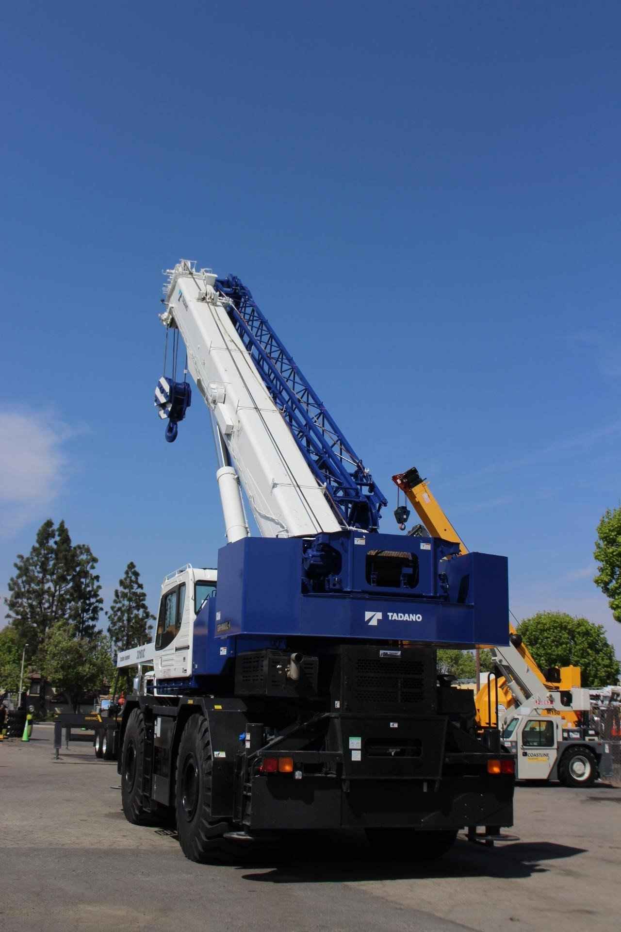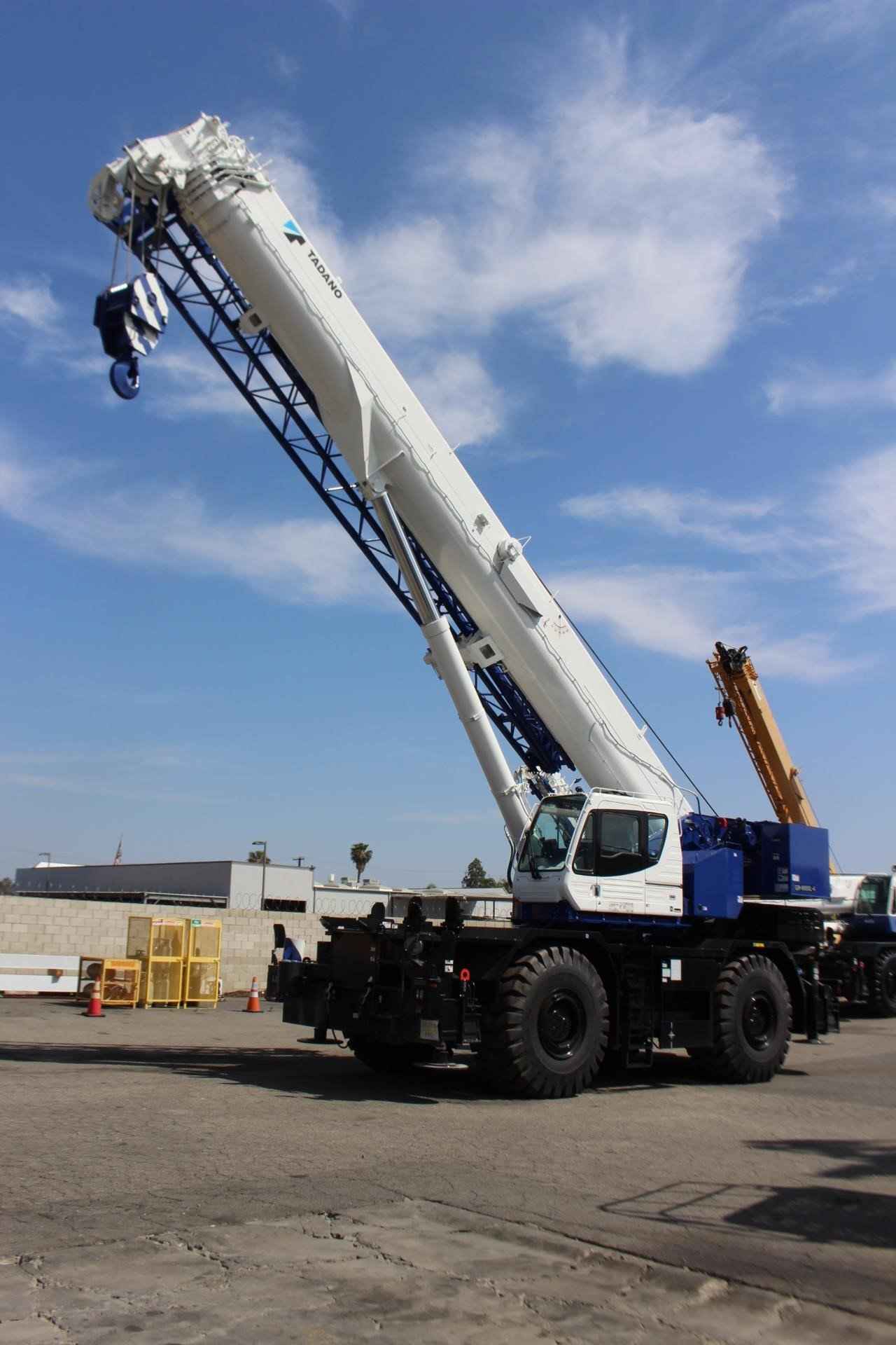 2023 TADANO GR1000XL-4 1000 TON CRANE Standard features: • Five Section full power partially synchronized boom 39.4’-154.2’ • 33.2’ or 58.1’ bi-fold lattice jib (tilt type) with 3.5°, 25° or 45° pinned offsets and self-storing pins • Quick reeving type bi-fold jib • Anti-Two block device (overwind cutout) • Winch drum camera with light • LED work lights • Variable speed main winch with grooved drum, cable follower, drum rotation indicator (audible, visible and thumper type) and 830’ of 3/4” cable • Variable speed auxiliary winch with grooved drum, cable follower, drum rotation indicator (audible, visible and thumper type) and 456’ of 3/4” cable • Auxiliary lifting sheave (single top) stowable • 2-speed Winch • 100 Ton hook block – 8 sheaves with swivel hook and safety latch for ¾” wire rope • 7.3 ton hook with swivel • Tadano twin slewing system and 360° positive slewing lock • Positive control • Hydraulic oil cooler • 3-way adjustable cloth seat with armrests, high back and seat belt • Tilt-telescoping steering wheel • Tinted safety glass and sun visor • Front windshield wiper and washer • Roof window wiper and washer • Power window (cab door) • 12V power outlet • Ashtray • Cab floor mat • Pump disconnect in operator’s cab • Air conditioner • Full Instrumentation package • Self Centering finger control levers with pilot control • Control pedals for boom elevating and boom telescoping • Low oil pressure/ high water temp warning device (visual) • Air Cleaner dust indicator • Cup holder • Battery disconnect • USB port • 20° tilt cab • Emergency steering system • Tadano electronic load moment indicator system (AML-E2) • Boom angle indicator • Outrigger extension length detector • Electronic crane monitoring system • Rear view camera • Right front view camera • Fenders • Air dryer • Complete highway light package • Towing hooks – Front and rear • Hook Block tie down (front bumper) • Weighted hook storage compartment • Halogen head lamp • Independently controlled outriggers • Four outrigger extension positions • Self -storing outrigger pads • Electronic controlled automatic transmission driven by torque converter • 4 x 4 x 4 drive/steer • Non-spin rear differential • Automatic rear axle oscillation lockout system • 29.5 -25 36 PR tires • 29.5-25 40 PR tires • Disc brakes • Water separator with filter (high filtration) • Back-up alarm • 24 volt electric system • Tool storage compartment • Tire inflation kit • Cummins B6.7 turbo charged after cooled engine (280HP) with exhaust brake • Engine over-run alarm • Lifting eyes • Telematic (machine data logging and monitoring system) with HELLO-NET via internet • Fuel consumption monitor • Eco Mode system • Self-removable counterweight • Radiator cover • Clearance sonar (rear side) • Automatic pump disconnect • Over unwinding prevention