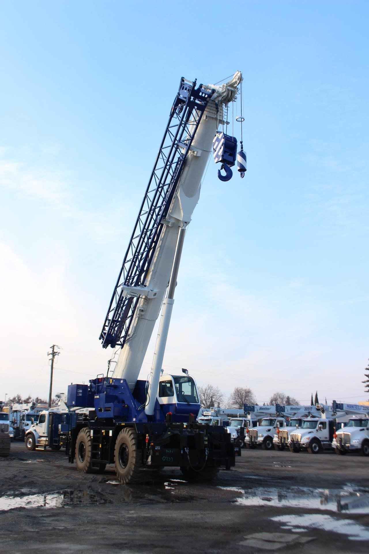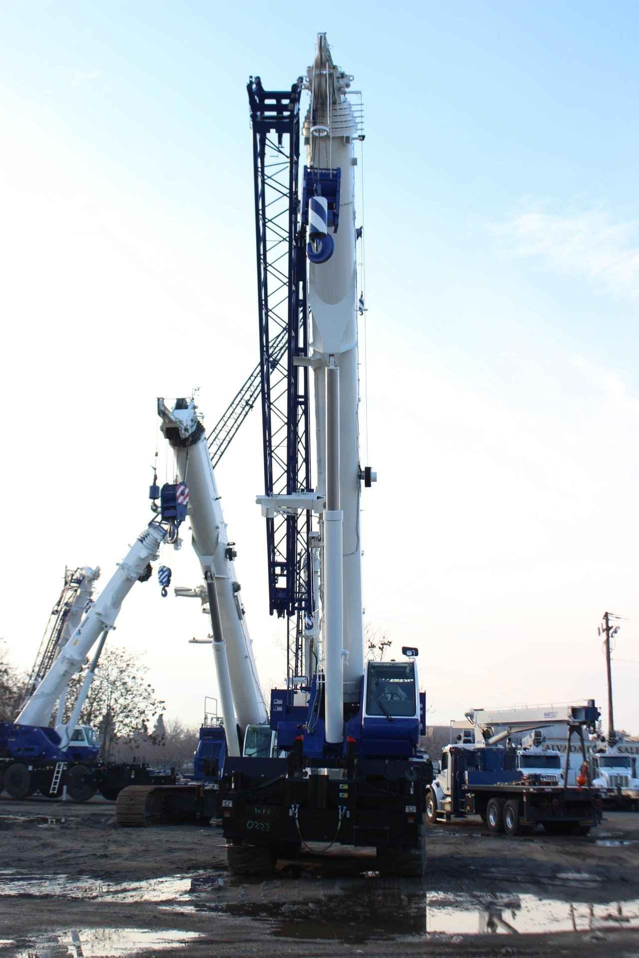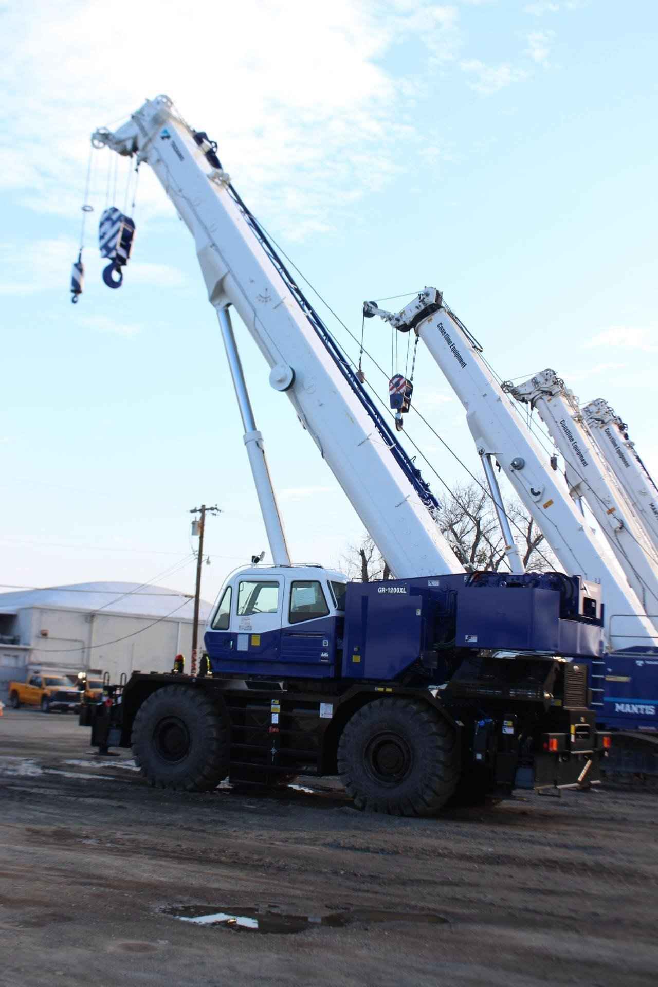 2024 TADANO GR1200XL 120 TON CRANE Standard Features: • Six section extended boom by single telescoping cylinder 39.4’ – 183.7’ • 33.2’ or 58.1’ bi-fold lattice jib with 3.5°, 25° or 45° pinned offsets and self-stowing pins • Quick Reeving type bi-fold jib • Anti-Two block device (overwind cutout) • Mirror for main and auxiliary winch • Work lights • Variable Speed Main Winch with grooved drum, cable follower and 771’ of ¾” cable • Variable speed main winch with grooved drum, cable follower and 518’ of ¾” cable • Drum Rotation indicator (audible, visible and thumper type) main and auxiliary winch • Auxiliary lifting sheave (single top) stowable • 2-speed winch • Tadano twin swing system and 360° positive swing lock • Positive control • Hydraulic oil cooler • 15° tilt cab • 3-way adjustable cloth seat with armrests, high back and seat belt • Tilt-telescoping steering wheel • Tinted safety glass and sun visor • Front windshield wiper and washer • Roof window wiper and washer • Power window (cab door) • Cigarette lighter and ashtray • Cab floor mat • Pump disconnect in operator’s cab • Air conditioner (hot water heater and cooler) • Full instrumentation package • Self-centering finger control levers with pilot control • Control pedals for boom elevating and boom telescoping • Low oil pressure/high water temp. warning device (visual) • Rear Steer centering light • Air cleaner dust indicator • Tadano electronic load moment indicator system (AML-C) • Tare function • Boom angle indicator • Outrigger extension length detector • Electronic crane monitoring system • Rear view mirrors (right and left side) • Fenders • Air dryer • Complete highway light package • Towing hooks-Front and rear • Hook block tie down (front bumper) • Weighted hook storage compartment • Halogen head lamp • Independently controlled Outriggers • Four outrigger extension positions • Self-storing outrigger pads • Electronic controlled automatic transmission driven by torque converter • 4 x 4 x 4 drive/steer • Non-spin rear deferential • Automatic rear axle oscillation lockout system • 29.5-25 34PR tires • Disc brakes • Water separator with filter (high filtration) • Back-up alarm • 24-volt electric system • Tool storage compartment • Tire inflation kit • Cummins QS 6.7 turbo charged after cooled engine 270HP with exhaust brake (TIER 4 FINAL) • Engine over-run alarm • Lifting eyes • Telematics (machine data logging and monitoring system) with HELLO-NET via internet (availability depends on countries) • Fuel consumption monitor • Eco mode system • Self-removable counterweight • Emergency steering system • 7.9 ton – Weighted hook with swivel and safety latch • Radiator cover • 120 Ton – 7 sheaves with hook block and safety latch