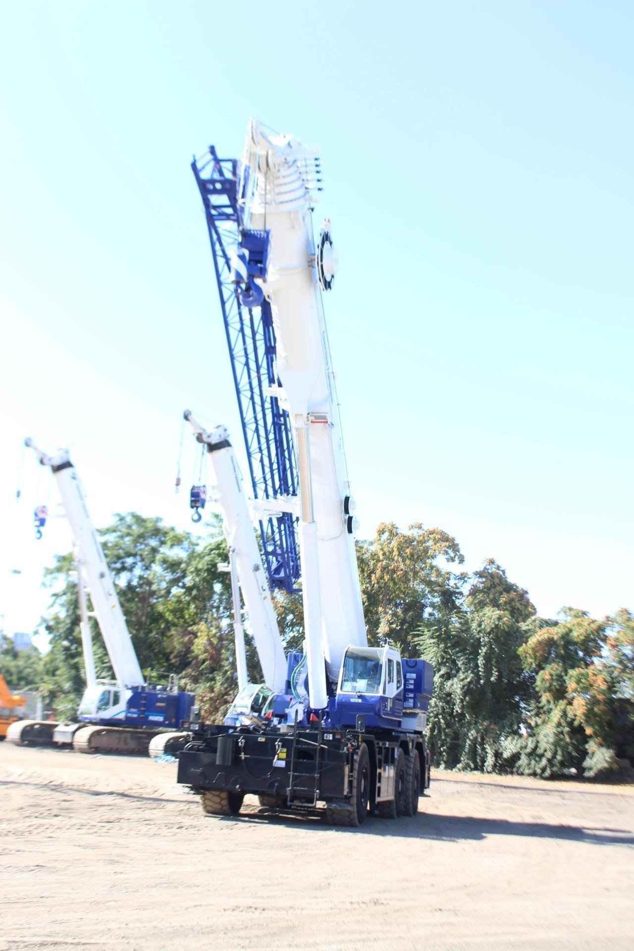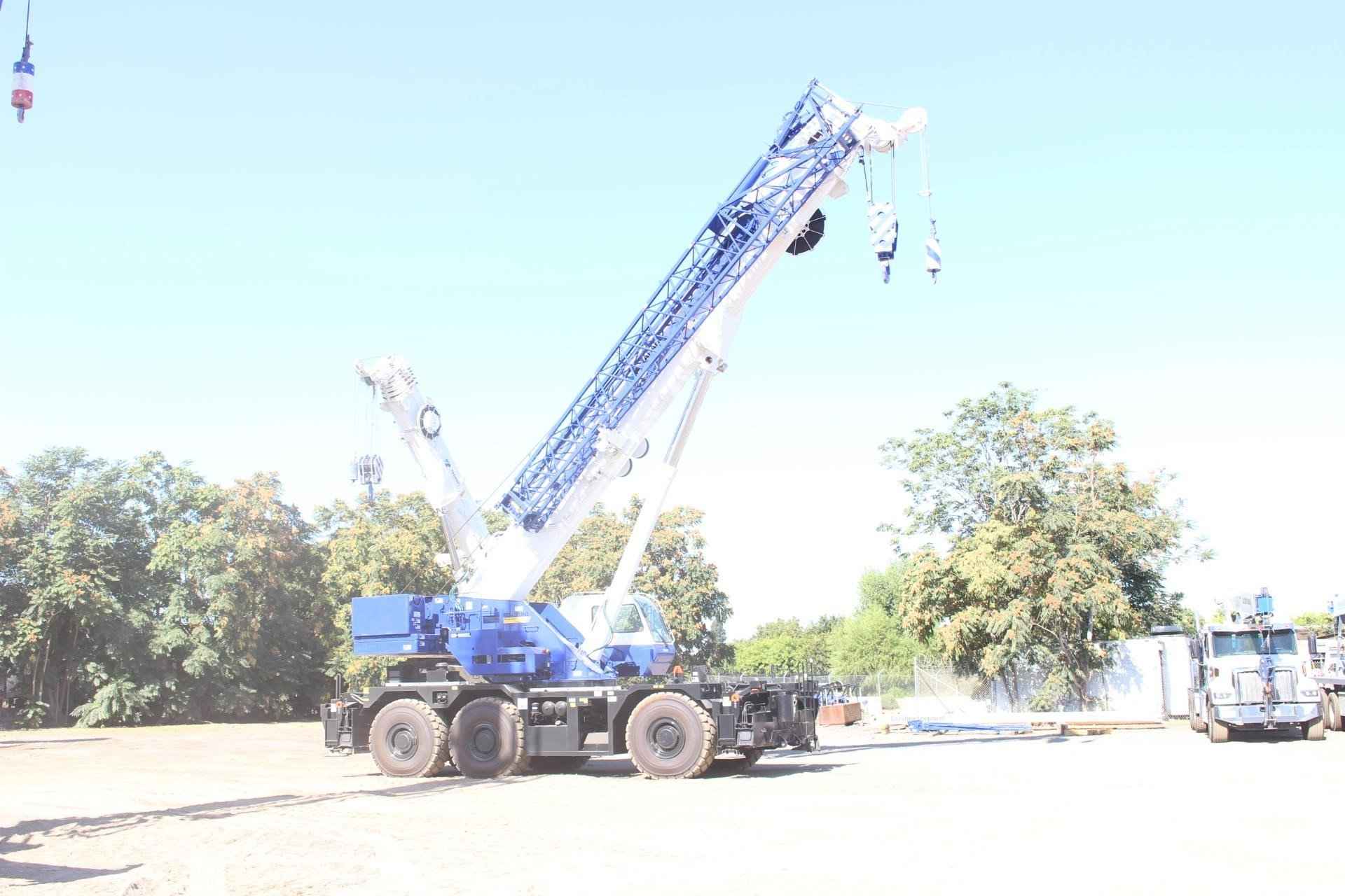 2023 TADANO GR1600XL 160 TON CRANE Standard Features: • Six-section boom, single cylinder telescoping with pinning system 42.8’-200.1’ • 33.8’ or 59.1’ bi-fold lattice jib with 0 °, 20 ° or 40 ° hydraulic offsets and self-stowing pins. • Quick reeving type bi-fold jib • Auxiliary lifting sheave (single top) storable • Variable speed main hoist with grooved drum, cable follower and 1050’ of 3/4” cable. • Variable speed auxiliary hoist with grooved drum, cable follower and 738’ of 3/4” cable • Drum rotation indicator (audible, visible and thumper type) main and auxiliary hoist • Anti-two block device (overwind cutout) and lower limit (3rd wrap) • Boom angle indicator • Tadano electronic load moment indicator system (AML-C) • Outrigger extension length detector • Tadano twin slewing system and 360 ° positive slewing lock • Tilting cab • Self-centering finger control levers with pilot control • Control pedals for boom elevation and boom telescoping • 3-way adjustable cloth seat with armrests, high back and seat belt • Tilt telescoping steering wheel • Tinted safety glass and sun visor • Front windshield wiper and washer • Roof window wiper and washer • Power window (cab door) • Rear view mirrors (right and left side) • Mirror for main and auxiliary hoists • Cigarette lighter and ashtray • Cab floor mat • Pump disconnect in operator’s cab • Hydraulic oil cooler • Air conditioner (hot water heater and cooler) • Positive control • Work lights • Independently controlled outriggers • Four outrigger extension positions • Cummins QSB6.7 turbo charged after cooled engine 270 HP with exhaust brake (TIER 4 FINAL) • Electronic controlled automatic transmission driven by torque converter • 6 X 4 X 6 drive/steer • Automatic 2nd and 3rd axle oscillation lock out system • 26.5 R25 tires • Disc brakes • Fenders • Air dryer • Water separator with filter (high filtration) • Engine over-run alarm • Back up alarm • Low oil pressure high water temp. warning device (visual) • 2nd and 3rd steer centering light • Air cleaner dust indicator • Tool storage compartment • Tire inflation kit • 24 volt electric system • 7.9 ton hook ball with swivel • 110 ton – 7 sheaves with swivel hook block and safety latch for 3/4” wire rope • Weighted hook storage compartment • Hook block tie down (front bumper) • Towing hooks - Front and rear • Lifting eyes • Halogen head lamp • Telematics (machine Data logging and monitoring system) with HELLO-NET via internet • Fuel consumption monitor • Eco mode system • Self-removable counterweight (40,100 + 24,500 = 64,600lbs) • Self-removable outrigger boxes • Emergency steering assist • Anemometer • Aircraft warning light • Boom removal assist system