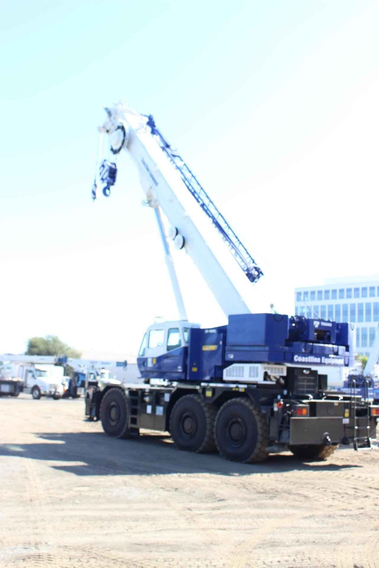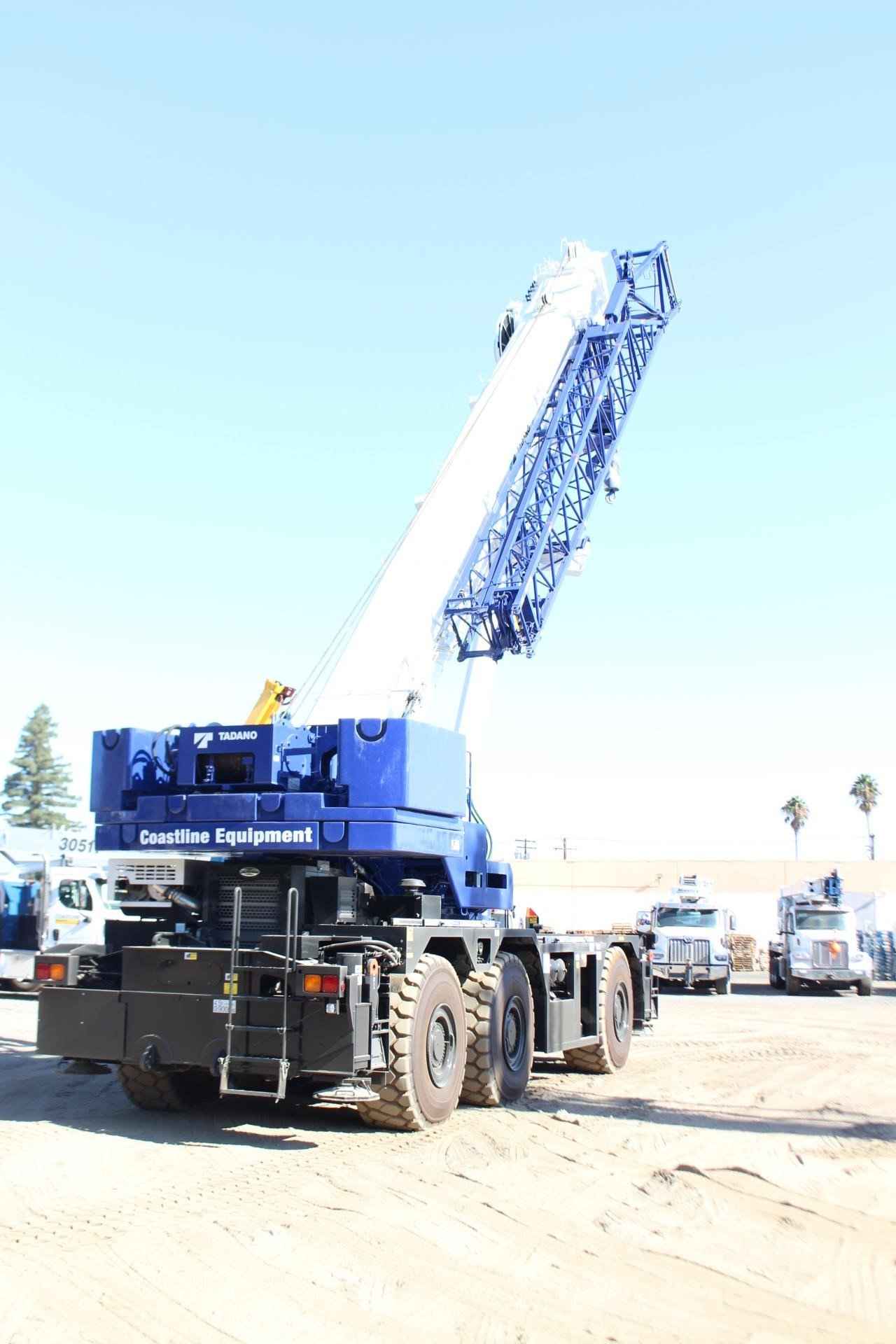 2026 TADANO GR1600XL 160 TON CRANE Standard Features: • Six-section boom, single cylinder telescoping with pinning system 42.8’-200.1’ • 33.8’ or 59.1’ bi-fold lattice jib with 0 °, 20 ° or 40 ° hydraulic offsets and self-stowing pins. • Quick reeving type bi-fold jib • Auxiliary lifting sheave (single top) storable • Variable speed main hoist with grooved drum, cable follower and 1050’ of 3/4” cable. • Variable speed auxiliary hoist with grooved drum, cable follower and 738’ of 3/4” cable • Drum rotation indicator (audible, visible and thumper type) main and auxiliary hoist • Anti-two block device (overwind cutout) and lower limit (3rd wrap) • Boom angle indicator • Tadano electronic load moment indicator system (AML-C) • Outrigger extension length detector • Tadano twin slewing system and 360 ° positive slewing lock • Tilting cab • Self-centering finger control levers with pilot control • Control pedals for boom elevation and boom telescoping • 3-way adjustable cloth seat with armrests, high back and seat belt • Tilt telescoping steering wheel • Tinted safety glass and sun visor • Front windshield wiper and washer • Roof window wiper and washer • Power window (cab door) • Rear view mirrors (right and left side) • Mirror for main and auxiliary hoists • Cigarette lighter and ashtray • Cab floor mat • Pump disconnect in operator’s cab • Hydraulic oil cooler • Air conditioner (hot water heater and cooler) • Positive control • Work lights • Independently controlled outriggers • Four outrigger extension positions • Cummins QSB6.7 turbo charged after cooled engine 270 HP with exhaust brake (TIER 4 FINAL) • Electronic controlled automatic transmission driven by torque converter • 6 X 4 X 6 drive/steer • Automatic 2nd and 3rd axle oscillation lock out system • 26.5 R25 tires • Disc brakes • Fenders • Air dryer • Water separator with filter (high filtration) • Engine over-run alarm • Back up alarm • Low oil pressure high water temp. warning device (visual) • 2nd and 3rd steer centering light • Air cleaner dust indicator • Tool storage compartment • Tire inflation kit • 24 volt electric system • 7.9 ton hook ball with swivel • 110 ton – 7 sheaves with swivel hook block and safety latch for 3/4” wire rope • Weighted hook storage compartment • Hook block tie down (front bumper) • Towing hooks - Front and rear • Lifting eyes • Halogen head lamp • Telematics (machine Data logging and monitoring system) with HELLO-NET via internet • Fuel consumption monitor • Eco mode system • Self-removable counterweight (40,100 + 24,500 = 64,600lbs) • Self-removable outrigger boxes • Emergency steering assist • Anemometer • Aircraft warning light • Boom removal assist system