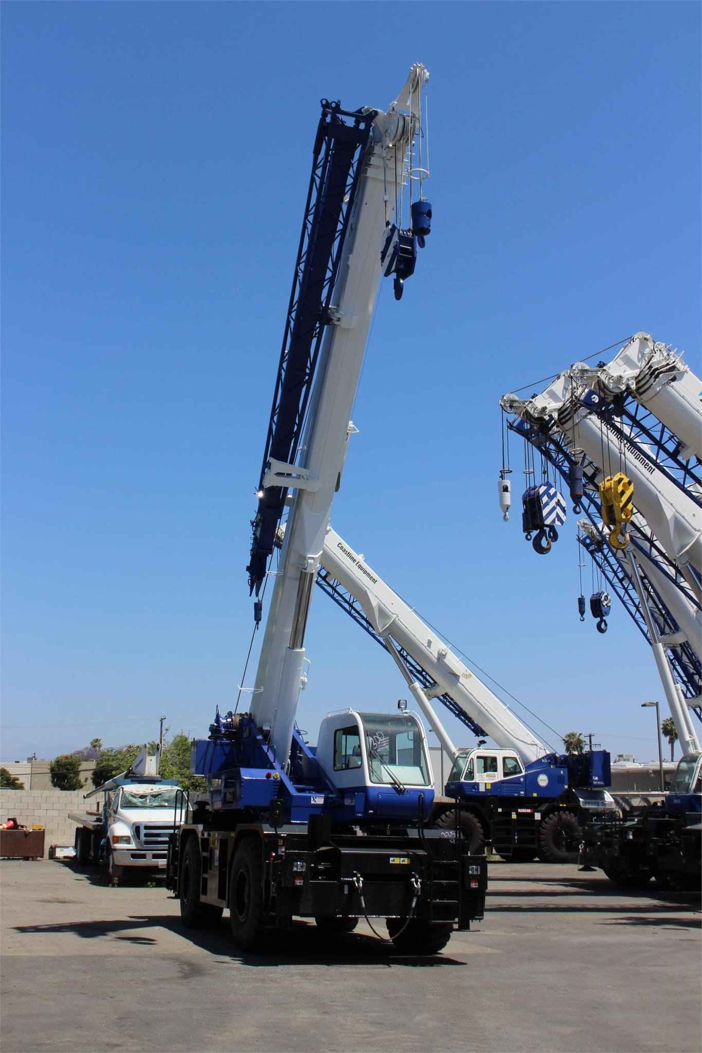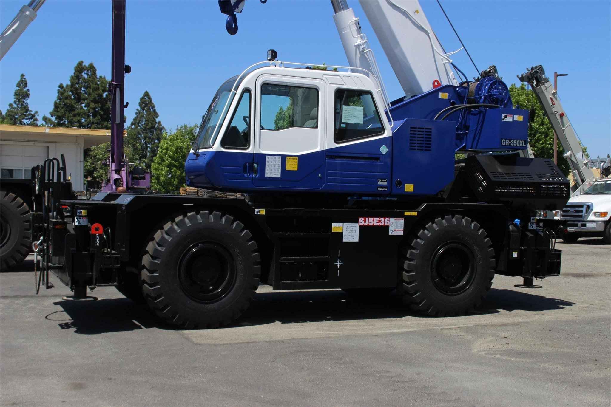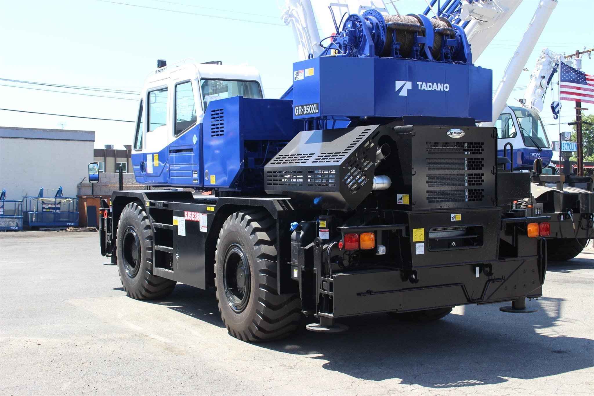 2023 TADANO GR350XL-3 35 TON CRANE Standard features: • Four Section full power partially synchronized boom 31.8’-101.7’ • 23.6’ or 42’ lattice jib (tilt type) with 5°, 25° or 45° pinned offsets and self-storing pins • Auxiliary lifting sheave (single top) stowable • Variable speed main hoist with grooved drum, cable follower and 558’ of 5/8” cable • Variable speed auxiliary hoist with grooved drum, cable follower and 322’ of 5/8” cable • Drum rotation indicator (audible, visible and thumper type) main and auxiliary hoist • Anti-Two block device (overwind cutout) • Boom angle indicator • Tadano electronic load moment indicator system (AML-C) • Outrigger extension length detector • Electronic crane monitoring system • Tadano twin slewing system and 360° positive slewing lock • Self-centering finger control levers with pilot control • Control pedals for boom elevating and boom telescoping • 3-way adjustable cloth seat with armrests, high back and seat belt • Tilt-telescoping steering wheel • Tinted safety glass and sun visor • Front windshield wiper and washer • Roof window wiper and washer • Power window (cab door) • Rear view mirrors (right and left side) • Cigarette lighter and ashtray • Cab floor mat • Pump disconnect in operator’s cab • Hydraulic oil cooler • Hot water cab heater and air conditioner • Positive control • Work lights • Independently controlled outriggers • Four outrigger extension positions • Self-storing outrigger pads • Cummins QSB6.7 TIER IV final turbo charged after cooled engine 235 HP with exhaust brake • Electronic controlled automatic transmission driven by torque converter • 4 X 4 X 4 drive/steer • Non-spin rear differential • Semi-elliptic leaf springs suspension with hydraulic lockout device (front and rear) • 20.5-25(OR) tires • Disc brakes • Fenders • Air dryer • Water separator with filter (high filtration) • Engine over-run alarm • Back-up alarm • Low oil pressure/high water temp. warning device (visual) • Rear steer centering light • Air cleaner dust indicator • Full instrumentation package • Complete highway light package • Tool storage compartment • Tire inflation kit • 24 volt electric system • 4.4 ton hook ball with swivel • 35 ton – 4 sheaves with swivel hook block and safety latch for 5/8” wire rope • Towing hooks - Front and rear • Lifting eyes • Hook block tie down (front bumper) • Weighted hook storage compartment • Halogen head lamp • Telematics (machine data logging and monitoring system) with HELLO-NET via internet • Fuel consumption monitor • Eco mode System