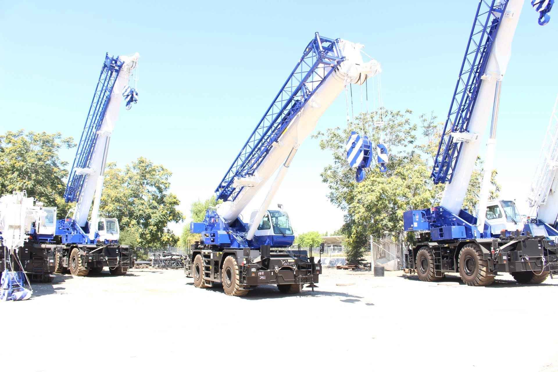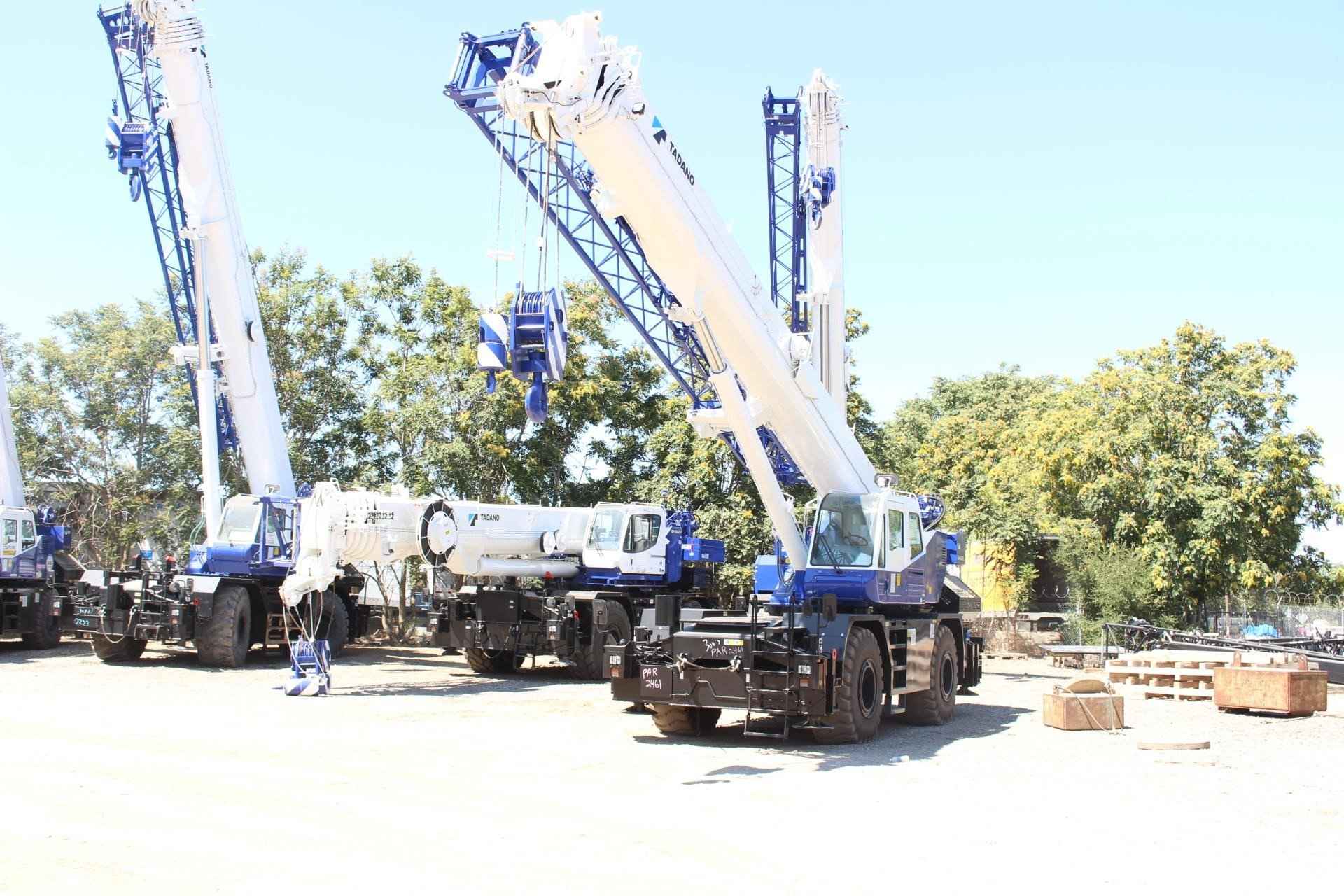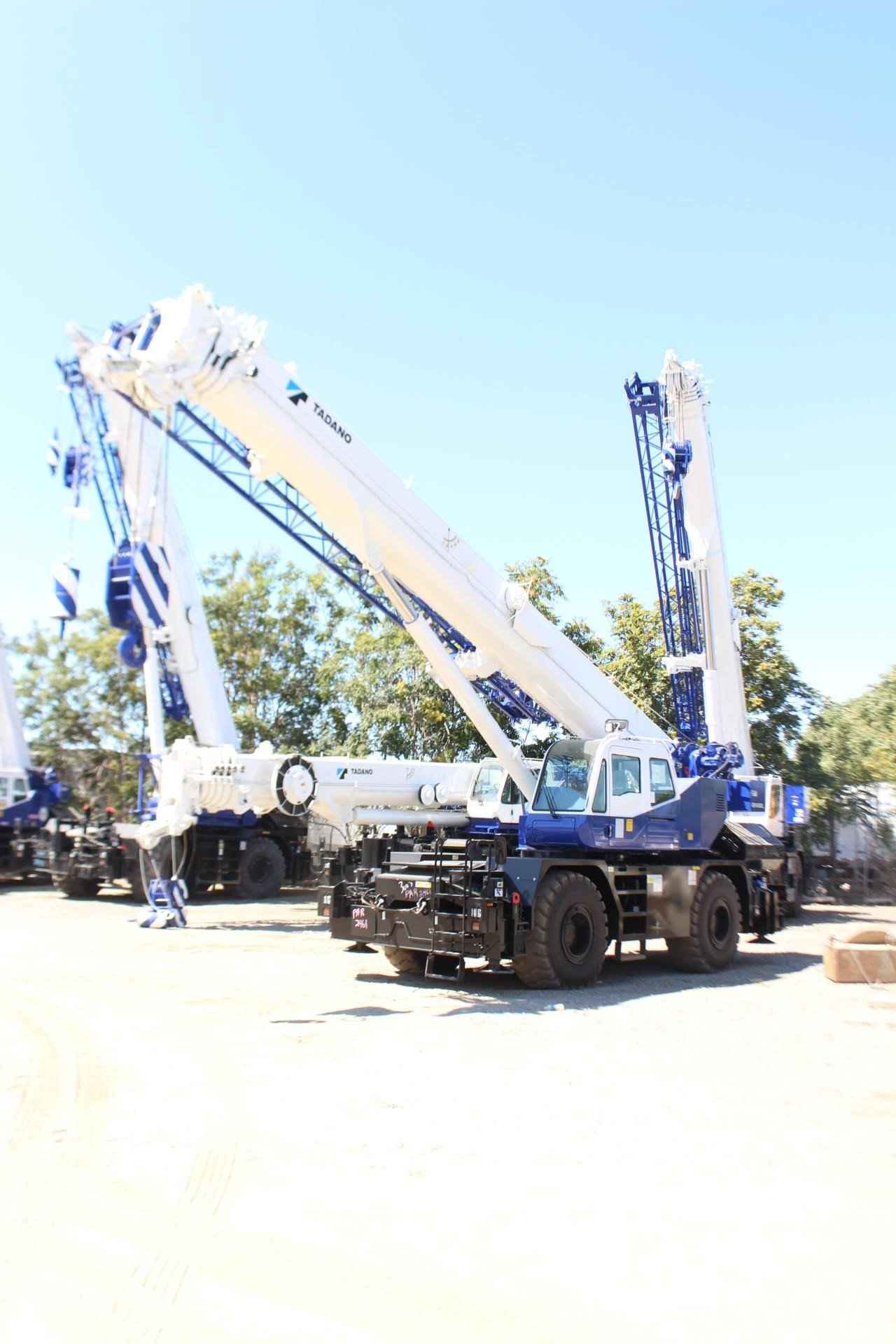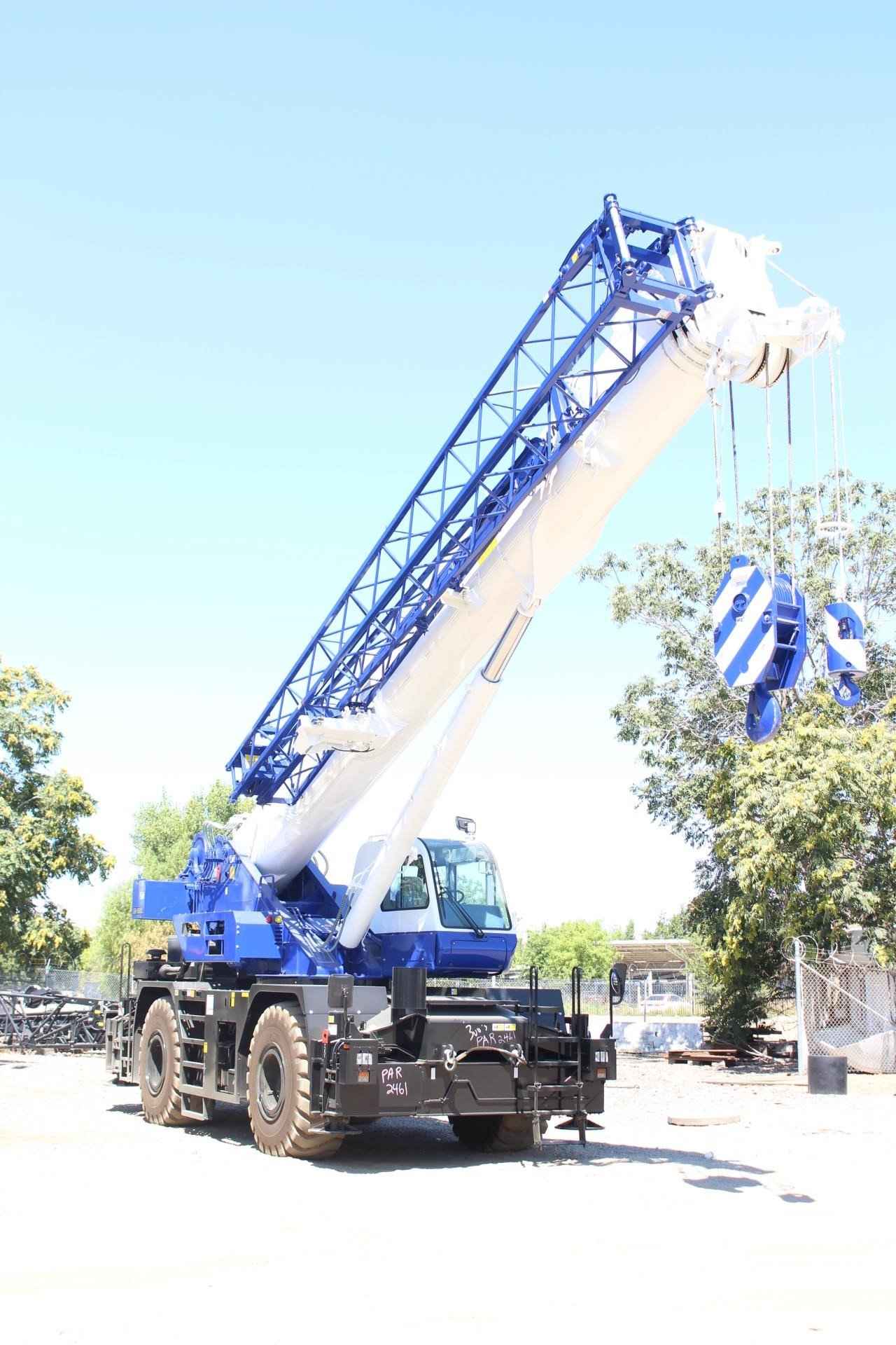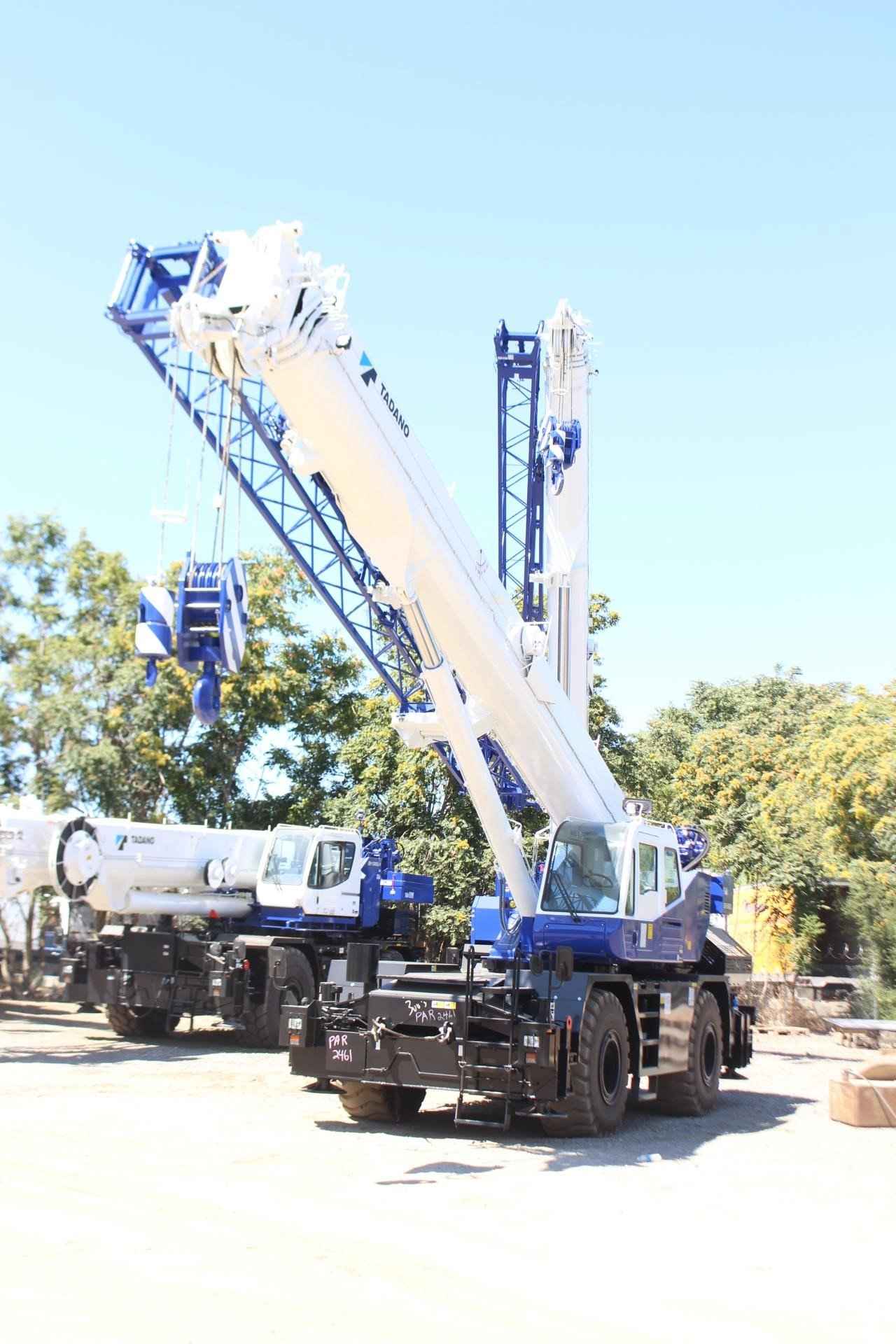 TADANO GR550XL 55 TON CRANE Standard Features: • Four section full power synchronized boom 35.1’- 113.9’ • 28.9’ or 50’ bi fold lattice jib (tilt type) with 5°, 25°, or 45° pinned offsets and self-storing pins. • Auxiliary lifting sheave (single top) storable • Variable speed main hoist with grooved drum, cable follower and 633’ of ¾” cable. • Variable speed auxiliary hoist with grooved drum, cable follower and 361’ of 3/4 “cable. • Drum rotation indicator (audible, visible and thumper type) main and auxiliary hoist • Anti-two block device (overwind cutout) • Boom angle indicator • Tadano electronic load moment indicator system (AML-C) • Outrigger extension length detector • Electronic crane monitoring system • Tadano twin slewing system and 360° positive slewing lock • Self-centering finger control levers with pilot control • Control pedals for boom elevating and boom telescoping • 3-way adjustable cloth seat with armrests, high back and seat belt • Tilt telescoping steering wheel • Tinted safety glass and sun visor • Front windshield wiper and washer • Roof window wiper and washer • Power window (cab door) • Rear view mirrors (right and left side) • Mirror for main and auxiliary hoists • Cigarette lighter and ashtray • Cab floor mat • Pump disconnect in operator’s cab • Hydraulic oil cooler • Hot water cab heater and air conditioner • Positive control • Quick reeving type bi-fold jib • Work lights • Independent controlled outriggers • Four outrigger extension positions • Self-storing outrigger pads • Cummins QSB6.7 turbo charged after cooled engine 270HP with exhaust brake • Electronic controlled automatic transmission driven by torque converter • 4 X 4 X 4 drive/steer • Non-spin rear differential • Semi-elliptic leaf springs suspension with hydraulic lockout device (front and rear) • 23.5-25(OR) tires • Disc brakes • Fenders • Air dryer • Water separator with filter (high filtration) • Engine over run alarm • Back up alarm • Low oil pressure/high water temp warning device (visual) • Rear steer centering light • Air cleaner dust indicator • Full instrumentation package • Complete highway light package • Tool storage compartment • Tire inflation kit • 24 volt electric system • 6.2 ton hook ball with swivel • 55 ton - 5 sheave with swivel hook block and safety latch for ¾” wire rope • Towing hooks front and rear • Lifting eyes • Hook block tie down (front bumper) • Weighted hook storage compartment • Halogen head lamp • Telematics (machine data logging and monitoring system) with HELLO-NET via Internet • Fuel consumption monitor • Eco mode system