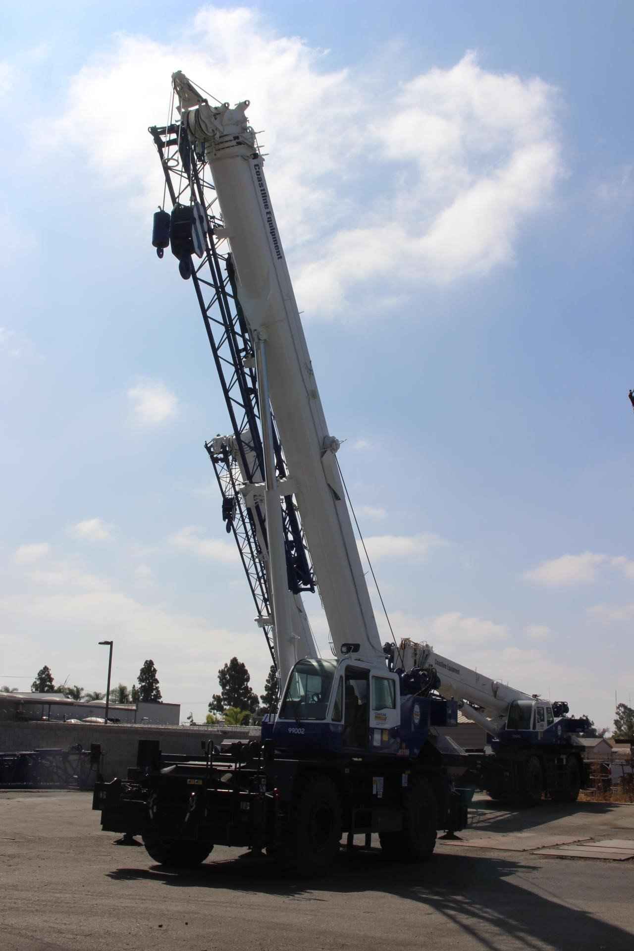 2023 TADANO GR550XL 55 TON CRANE Standard Features: • Four section full power synchronized boom 35.1’- 113.9’ • 28.9’ or 50’ bi fold lattice jib (tilt type) with 5°, 25°, or 45° pinned offsets and self-storing pins. • Auxiliary lifting sheave (single top) storable • Variable speed main hoist with grooved drum, cable follower and 633’ of ¾” cable. • Variable speed auxiliary hoist with grooved drum, cable follower and 361’ of 3/4 “cable. • Drum rotation indicator (audible, visible and thumper type) main and auxiliary hoist • Anti-two block device (overwind cutout) • Boom angle indicator • Tadano electronic load moment indicator system (AML-C) • Outrigger extension length detector • Electronic crane monitoring system • Tadano twin slewing system and 360° positive slewing lock • Self-centering finger control levers with pilot control • Control pedals for boom elevating and boom telescoping • 3-way adjustable cloth seat with armrests, high back and seat belt • Tilt telescoping steering wheel • Tinted safety glass and sun visor • Front windshield wiper and washer • Roof window wiper and washer • Power window (cab door) • Rear view mirrors (right and left side) • Mirror for main and auxiliary hoists • Cigarette lighter and ashtray • Cab floor mat • Pump disconnect in operator’s cab • Hydraulic oil cooler • Hot water cab heater and air conditioner • Positive control • Quick reeving type bi-fold jib • Work lights • Independent controlled outriggers • Four outrigger extension positions • Self-storing outrigger pads • Cummins QSB6.7 turbo charged after cooled engine 270HP with exhaust brake • Electronic controlled automatic transmission driven by torque converter • 4 X 4 X 4 drive/steer • Non-spin rear differential • Semi-elliptic leaf springs suspension with hydraulic lockout device (front and rear) • 23.5-25(OR) tires • Disc brakes • Fenders • Air dryer • Water separator with filter (high filtration) • Engine over run alarm • Back up alarm • Low oil pressure/high water temp warning device (visual) • Rear steer centering light • Air cleaner dust indicator • Full instrumentation package • Complete highway light package • Tool storage compartment • Tire inflation kit • 24 volt electric system • 6.2 ton hook ball with swivel • 55 ton - 5 sheave with swivel hook block and safety latch for ¾” wire rope • Towing hooks front and rear • Lifting eyes • Hook block tie down (front bumper) • Weighted hook storage compartment • Halogen head lamp • Telematics (machine data logging and monitoring system) with HELLO-NET via Internet • Fuel consumption monitor • Eco mode system