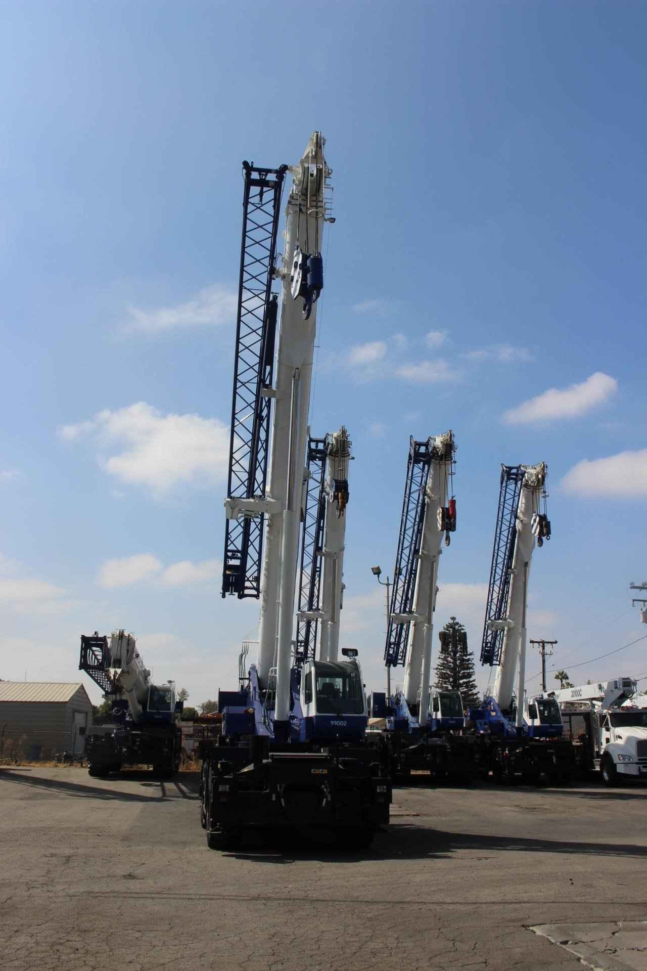 2023 TADANO GR550XL 55 TON CRANE Standard Features: • Four section full power synchronized boom 35.1’- 113.9’ • 28.9’ or 50’ bi fold lattice jib (tilt type) with 5°, 25°, or 45° pinned offsets and self-storing pins. • Auxiliary lifting sheave (single top) storable • Variable speed main hoist with grooved drum, cable follower and 633’ of ¾” cable. • Variable speed auxiliary hoist with grooved drum, cable follower and 361’ of 3/4 “cable. • Drum rotation indicator (audible, visible and thumper type) main and auxiliary hoist • Anti-two block device (overwind cutout) • Boom angle indicator • Tadano electronic load moment indicator system (AML-C) • Outrigger extension length detector • Electronic crane monitoring system • Tadano twin slewing system and 360° positive slewing lock • Self-centering finger control levers with pilot control • Control pedals for boom elevating and boom telescoping • 3-way adjustable cloth seat with armrests, high back and seat belt • Tilt telescoping steering wheel • Tinted safety glass and sun visor • Front windshield wiper and washer • Roof window wiper and washer • Power window (cab door) • Rear view mirrors (right and left side) • Mirror for main and auxiliary hoists • Cigarette lighter and ashtray • Cab floor mat • Pump disconnect in operator’s cab • Hydraulic oil cooler • Hot water cab heater and air conditioner • Positive control • Quick reeving type bi-fold jib • Work lights • Independent controlled outriggers • Four outrigger extension positions • Self-storing outrigger pads • Cummins QSB6.7 turbo charged after cooled engine 270HP with exhaust brake • Electronic controlled automatic transmission driven by torque converter • 4 X 4 X 4 drive/steer • Non-spin rear differential • Semi-elliptic leaf springs suspension with hydraulic lockout device (front and rear) • 23.5-25(OR) tires • Disc brakes • Fenders • Air dryer • Water separator with filter (high filtration) • Engine over run alarm • Back up alarm • Low oil pressure/high water temp warning device (visual) • Rear steer centering light • Air cleaner dust indicator • Full instrumentation package • Complete highway light package • Tool storage compartment • Tire inflation kit • 24 volt electric system • 6.2 ton hook ball with swivel • 55 ton - 5 sheave with swivel hook block and safety latch for ¾” wire rope • Towing hooks front and rear • Lifting eyes • Hook block tie down (front bumper) • Weighted hook storage compartment • Halogen head lamp • Telematics (machine data logging and monitoring system) with HELLO-NET via Internet • Fuel consumption monitor • Eco mode system