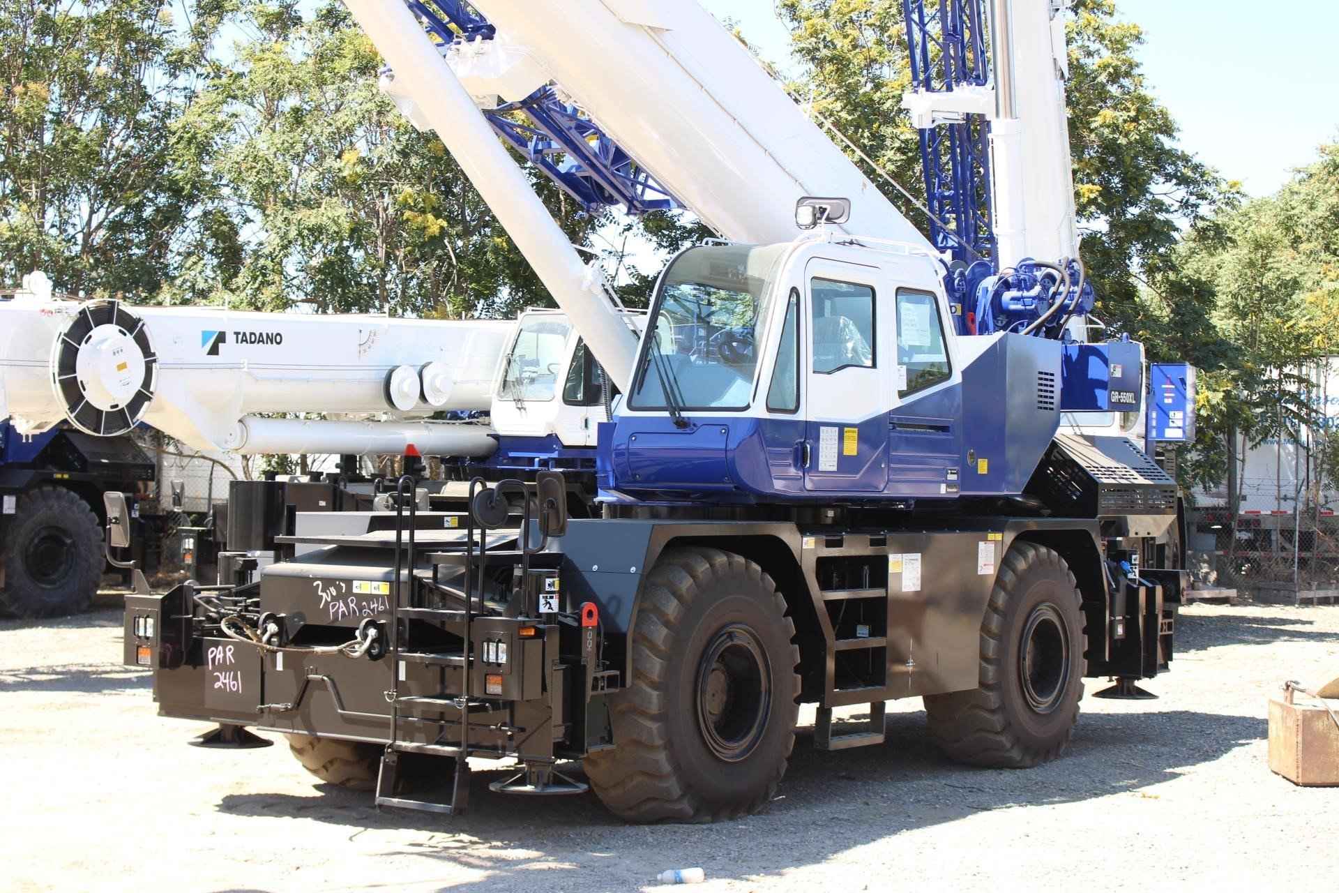 TADANO GR550XL 55 TON CRANE Standard Features: • Four section full power synchronized boom 35.1’- 113.9’ • 28.9’ or 50’ bi fold lattice jib (tilt type) with 5°, 25°, or 45° pinned offsets and self-storing pins. • Auxiliary lifting sheave (single top) storable • Variable speed main hoist with grooved drum, cable follower and 633’ of ¾” cable. • Variable speed auxiliary hoist with grooved drum, cable follower and 361’ of 3/4 “cable. • Drum rotation indicator (audible, visible and thumper type) main and auxiliary hoist • Anti-two block device (overwind cutout) • Boom angle indicator • Tadano electronic load moment indicator system (AML-C) • Outrigger extension length detector • Electronic crane monitoring system • Tadano twin slewing system and 360° positive slewing lock • Self-centering finger control levers with pilot control • Control pedals for boom elevating and boom telescoping • 3-way adjustable cloth seat with armrests, high back and seat belt • Tilt telescoping steering wheel • Tinted safety glass and sun visor • Front windshield wiper and washer • Roof window wiper and washer • Power window (cab door) • Rear view mirrors (right and left side) • Mirror for main and auxiliary hoists • Cigarette lighter and ashtray • Cab floor mat • Pump disconnect in operator’s cab • Hydraulic oil cooler • Hot water cab heater and air conditioner • Positive control • Quick reeving type bi-fold jib • Work lights • Independent controlled outriggers • Four outrigger extension positions • Self-storing outrigger pads • Cummins QSB6.7 turbo charged after cooled engine 270HP with exhaust brake • Electronic controlled automatic transmission driven by torque converter • 4 X 4 X 4 drive/steer • Non-spin rear differential • Semi-elliptic leaf springs suspension with hydraulic lockout device (front and rear) • 23.5-25(OR) tires • Disc brakes • Fenders • Air dryer • Water separator with filter (high filtration) • Engine over run alarm • Back up alarm • Low oil pressure/high water temp warning device (visual) • Rear steer centering light • Air cleaner dust indicator • Full instrumentation package • Complete highway light package • Tool storage compartment • Tire inflation kit • 24 volt electric system • 6.2 ton hook ball with swivel • 55 ton - 5 sheave with swivel hook block and safety latch for ¾” wire rope • Towing hooks front and rear • Lifting eyes • Hook block tie down (front bumper) • Weighted hook storage compartment • Halogen head lamp • Telematics (machine data logging and monitoring system) with HELLO-NET via Internet • Fuel consumption monitor • Eco mode system