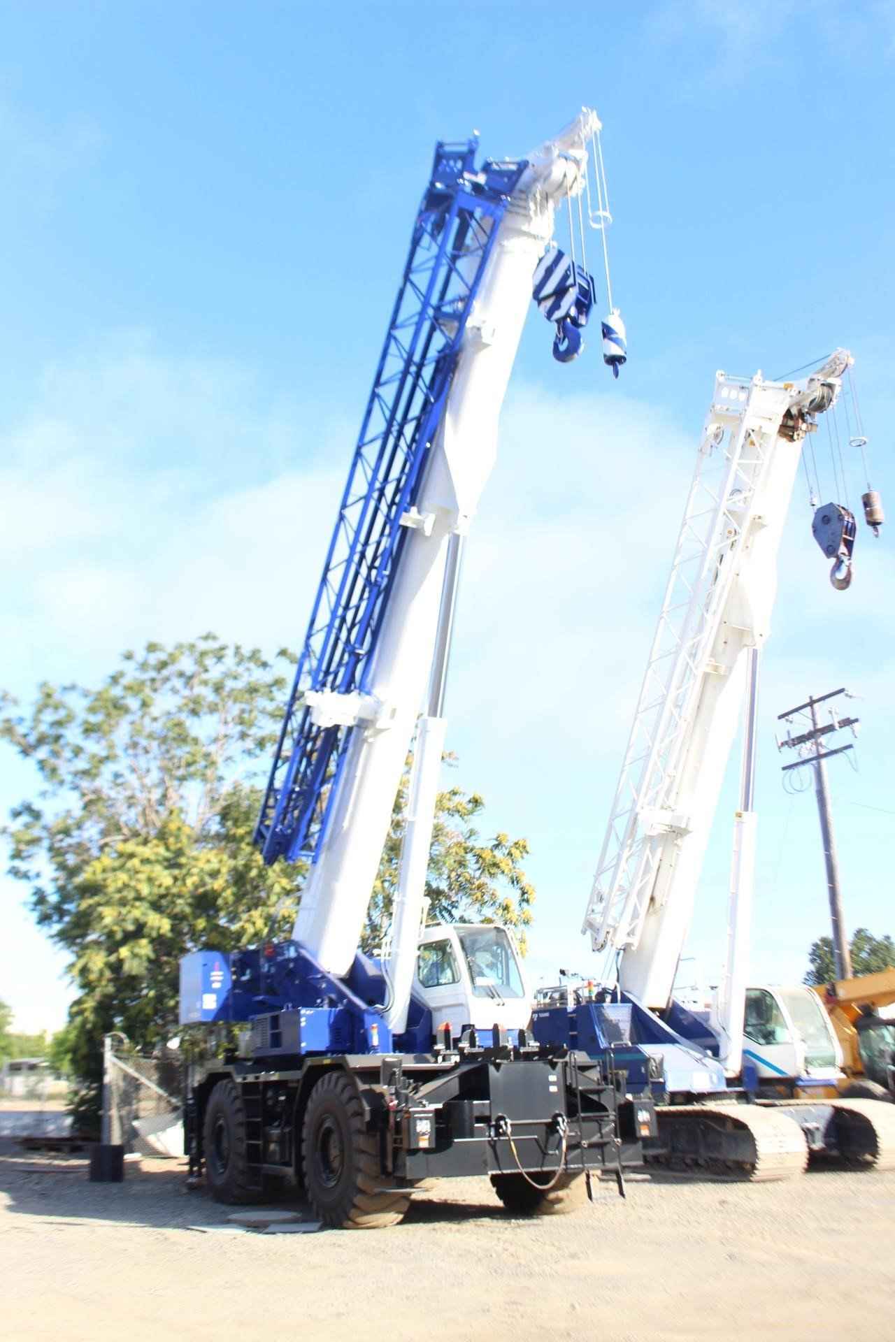TADANO GR900XL 90 TON CRANE Standard features: • Five Section full power partially synchronized boom 39.4’-154.2’ • 33.2’ or 58.1’ bi-fold lattice jib (tilt type) with 3.5°, 25° or 45° pinned offsets and self-storing pins • Quick reeving type bi-fold jib • Anti-Two block device (overwind cutout) • Winch drum camera with light • LED work lights • Variable speed main winch with grooved drum, cable follower, drum rotation indicator (audible, visible and thumper type) and 830’ of 3/4” cable • Variable speed auxiliary winch with grooved drum, cable follower, drum rotation indicator (audible, visible and thumper type) and 456’ of 3/4” cable • Auxiliary lifting sheave (single top) stowable • 2-speed Winch • 100 Ton hook block – 8 sheaves with swivel hook and safety latch for ¾” wire rope • 7.3 ton hook with swivel • Tadano twin slewing system and 360° positive slewing lock • Positive control • Hydraulic oil cooler • 3-way adjustable cloth seat with armrests, high back and seat belt • Tilt-telescoping steering wheel • Tinted safety glass and sun visor • Front windshield wiper and washer • Roof window wiper and washer • Power window (cab door) • 12V power outlet • Ashtray • Cab floor mat • Pump disconnect in operator’s cab • Air conditioner • Full Instrumentation package • Self Centering finger control levers with pilot control • Control pedals for boom elevating and boom telescoping • Low oil pressure/ high water temp warning device (visual) • Air Cleaner dust indicator • Cup holder • Battery disconnect • USB port • 20° tilt cab • Emergency steering system • Tadano electronic load moment indicator system (AML-E2) • Boom angle indicator • Outrigger extension length detector • Electronic crane monitoring system • Rear view camera • Right front view camera • Fenders • Air dryer • Complete highway light package • Towing hooks – Front and rear • Hook Block tie down (front bumper) • Weighted hook storage compartment • Halogen head lamp • Independently controlled outriggers • Four outrigger extension positions • Self -storing outrigger pads • Electronic controlled automatic transmission driven by torque converter • 4 x 4 x 4 drive/steer • Non-spin rear differential • Automatic rear axle oscillation lockout system • 29.5 -25 36 PR tires • 29.5-25 40 PR tires • Disc brakes • Water separator with filter (high filtration) • Back-up alarm • 24 volt electric system • Tool storage compartment • Tire inflation kit • Cummins B6.7 turbo charged after cooled engine (280HP) with exhaust brake • Engine over-run alarm • Lifting eyes • Telematic (machine data logging and monitoring system) with HELLO-NET via internet • Fuel consumption monitor • Eco Mode system • Self-removable counterweight • Radiator cover • Clearance sonar (rear side) • Automatic pump disconnect • Over unwinding prevention • Wind speed indicator