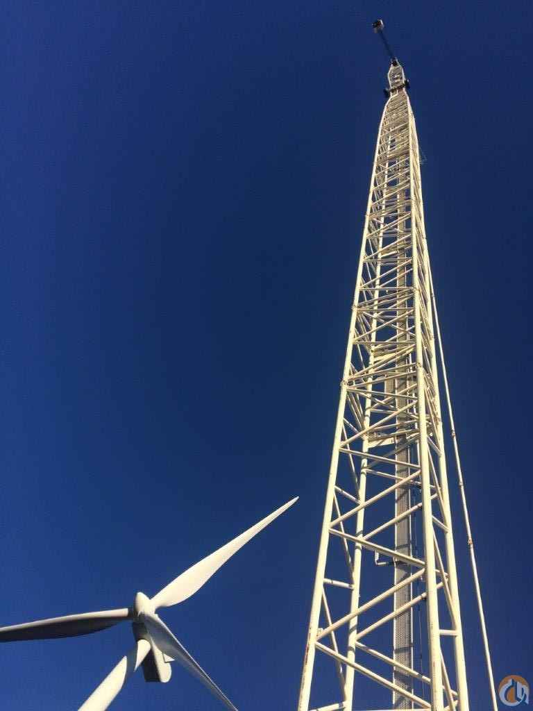 Used for Wind Farm Construction & Maintenance. Qudro-Drive tracks in-lieu-of standard Duo-Drive, 2000mm (79”) wide track shoes. Factory preparation for future Narrow Track (NT) option and for future Luffer option. Boom SSL/LSL 114m (374’), 12m (39.4’) LF2 Fixed Jib, S7 Kit option, Super Lift Mast 30m (98.4’), with Tray and weights, 1 x 160t 5-sheave Ramshorn hook, 1 x 100t 3-sheave Ramshorn hook, 180t crane 60t central ballast counterweight, cast vs steel counterweights, 3 hoist drums, (1 drum in boom butt), Lifting tackle (sling chains) for winch drum removal/installation and handling of crawler track frames, Hydraulic cylinder on A-frame, 2-jacks pin connected to crawler side frames, Hydraulic Quick Connect for Carrier/Super-Structure, Jack-up system for Super Structure Very Good Condition. Hours 9,432 Location: Midwest USA